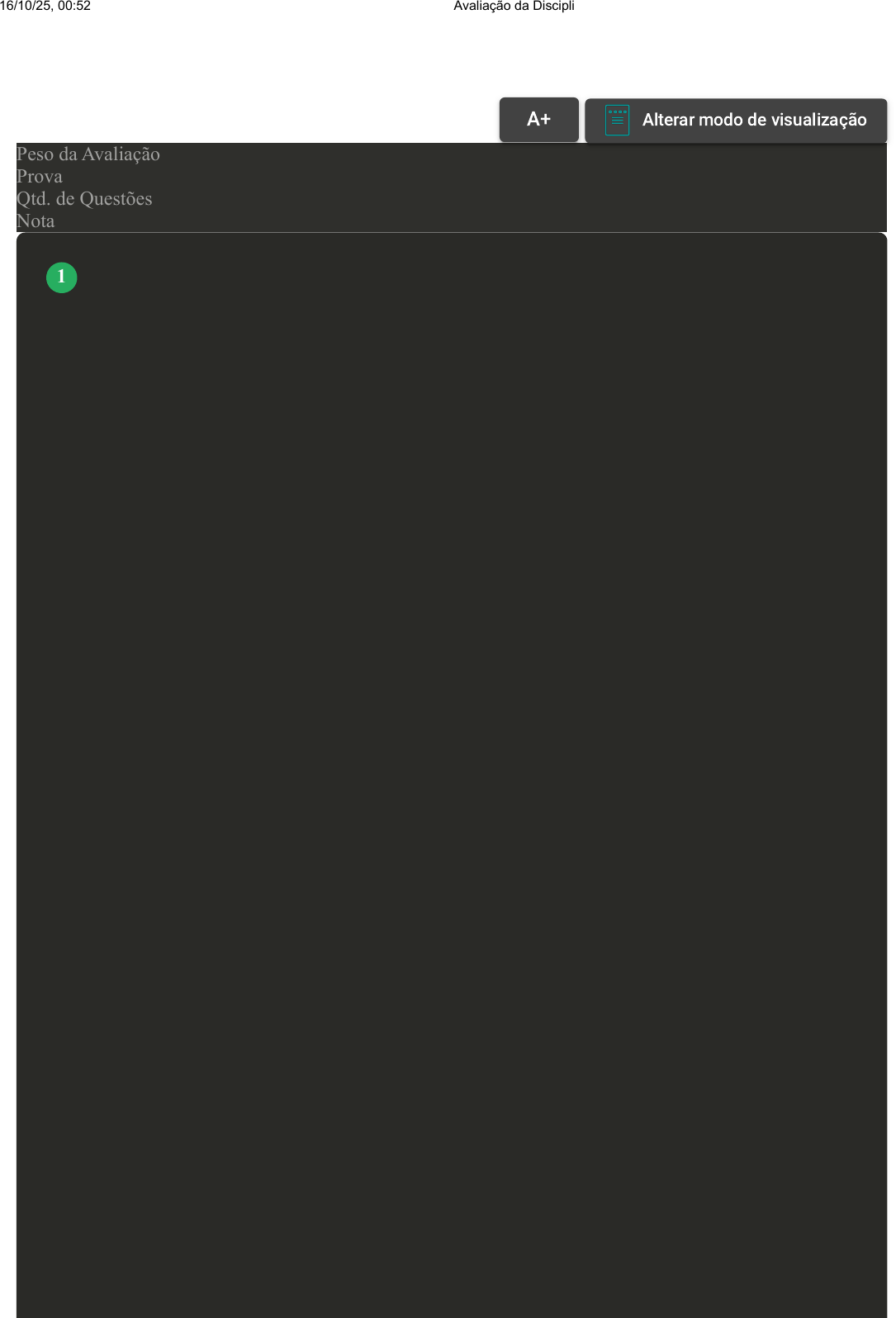 Prova Impressa GABARITO | Avaliação da Disciplina (Cod.:678074) Peso da Avaliação 10,00 Prova 67843824 Qtd. de Questões 20 Nota 9,00 Segundo a perspectiva histórico-cultural, a vivência em sociedade torna-se essencial para a transformação do homem biológico em ser humano, ou seja, o ser humano só adquire as características humanas quando convive em sociedade (VYGOTSKY, 2008). Nesse contexto, o autor destaca que o processo de desenvolvimento do pensamento humano resulta do movimento entre as funções psicológicas elementares e as funções psicológicas superiores. FONTE: VYGOTSKY, L. S. Pensamento e linguagem. São Paulo: Martins Fontes, 2008. Enunciado Com base nessa afirmação de Vygotsky (2008), associe. I- Funções Psicológicas Superiores. II- Funções Psicológicas Elementares. ( ) A memória involuntária, o pensamento não verbal e os aspectos mais primitivos da atenção e do desejo estão relacionados às características inatas da espécie humana. ( ) Desenvolvem-se por meio das mediações. ( ) Referem-se a mecanismos de ação, como a capacidade de planejamento, a criatividade, a memória voluntária, a imaginação e a deliberação sobre si e sobre os outros. ( ) É composta pelos reflexos, a atenção involuntária e as associações simples. Assinale a sequência CORRETA: A II – II – I - I. VOLTAR A+ Alterar modo de visualização 1 16/10/25, 00:52 Avaliação da Disciplina about:blank 1/16 B I – I – II - I. C I – II – I - II. D II – I – I - II. O Transtorno do Espectro Autista (TEA) é uma nova categoria do DSM-5, tendo sido introduzido o conceito de “espectro” para reforçar a dimensão que o envolve. O conceito “espectro” (spectrum), segundo Machado et al. (2015), advém da validade e da confiabilidade frente aos novos critérios para diagnóstico. Critérios esses que são potencialmente capazes de diferenciar o TEA do desenvolvimento normal e de outros transtornos psiquiátricos. FONTE: MACHADO J, D;CAYE A; FRICK P, J; ROHDE L, A. DSM-5. Principais Mudanças nos Transtornos de Crianças e Adolescentes. In Rey JM (ed), IACAPAP e-Textbook of Child and Adolescent Mental Health (edição em Português; Dias Silva F, ed). Genebra: International Association for Child and Adolescent Psychiatry and Allied Professions 2015. Com base nessa afirmação, associe os novos critérios de diagnóstico para o TEA: I- Déficits de comunicação social e interação social. II- Comportamento, interesses e atividades restritos e repetitivos. ( ) Déficits na reciprocidade socioemocional, variando, por exemplo, de abordagem social anormal e dificuldade para estabelecer uma conversa normal a compartilhamento reduzido de interesses, emoções ou afeto, até dificuldade para iniciar ou responder a interações sociais. ( ) Movimentos motores, uso de objetos ou fala estereotipados ou repetitivos (p. ex., estereotipias motoras simples, alinhar brinquedos ou girar objetos, ecolalia, frases idiossincráticas). ( ) Déficits nos comportamentos comunicativos não verbais usados para interação social, variando, por exemplo, de comunicação verbal e não verbal pouco integrada a anormalidade no contato visual e linguagem corporal ou déficits na compreensão e uso de gestos, até ausência total de expressões faciais e comunicação não verbal. Assinale a alternativa que apresenta a sequência CORRETA: 2 16/10/25, 00:52 Avaliação da Disciplina about:blank 2/16 A II – I - I B I – I - II C I – II - I D II – II - I O diagnóstico torna-se fundamental para a identificação das causas dos transtornos do neurodesenvolvimento, possibilitando uma possível intervenção, pois ele avalia a situação do aluno no contexto escolar, considerando a influência de fatores internos e externos sobre a aprendizagem, permitindo assim que a dificuldade seja identificada (CIASCA, 2008). FONTE: CIASCA, S. M. Distúrbios de aprendizagem: proposta de avaliação interdisciplinar. 3. ed. São Paulo: Casa do Psicólogo, 2008. Sobre o diagnóstico, podemos destacar que ele deve ser realizado: A por uma equipe multidisciplinar. B pelo diretor e pelo professor. C pelo diretor da escola. D pelo professor de sala de aula. A inclusão escolar pressupõe que sejam criadas condições desafiadoras em sala de aula que contemplem a diversidade, para que cada aluno possa explorar a aprendizagem e as suas possibilidades. Ao refletirmos sobre o enunciado, podemos inferir que inclusão é: 3 4 16/10/25, 00:52 Avaliação da Disciplina about:blank 3/16 I- Promover a aprendizagem e o desenvolvimento a partir da diversidade. II- Ignorar as necessidades individuais dos alunos mediante decisões baseadas em seus tipos de deficiência/transtornos. III- Limitar oportunidades integradas para alunos com deficiência a atividades "especiais" (como aula de artes e música). Assinale a alternativa CORRETA de acordo com o que é inclusão: A As afirmativas II e III são verdadeiras. B Apenas a afirmativa II é verdadeira. C Apenas a afirmativa I é verdadeira D Apenas a afirmativa III é verdadeira. Lara tem dez anos e apresenta dificuldade específica da escrita: disortografia. A disortografia é uma dificuldade de aprendizagem específica que afeta as habilidades da escrita, traduzida em dificuldades persistentes na capacidade da criança compor textos escritos. A criança apresenta dificuldades que se centram na organização, estruturação e composição de textos escritos (RODRIGUES, 2017). FONTE: RODRIGUES., G. J. Dificuldades de Aprendizagem na Leitura e na Escrita e a Intervenção Educativa com o Recurso às Tecnologias de Informação e Comunicação, Dissertação de Mestrado, 2017. Frente à descrição da disortografia, surge a pergunta: em quais habilidades Lara poderá apresentar dificuldades? A Nas habilidades que envolvem a escrita correta da palavra. 5 16/10/25, 00:52 Avaliação da Disciplina about:blank 4/16 B Nas habilidades que envolvem a fluência da leitura de palavra
