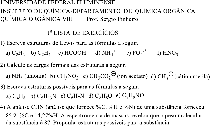 1a Lista de Exercícios Química Orgânica Teórica II 2017.2