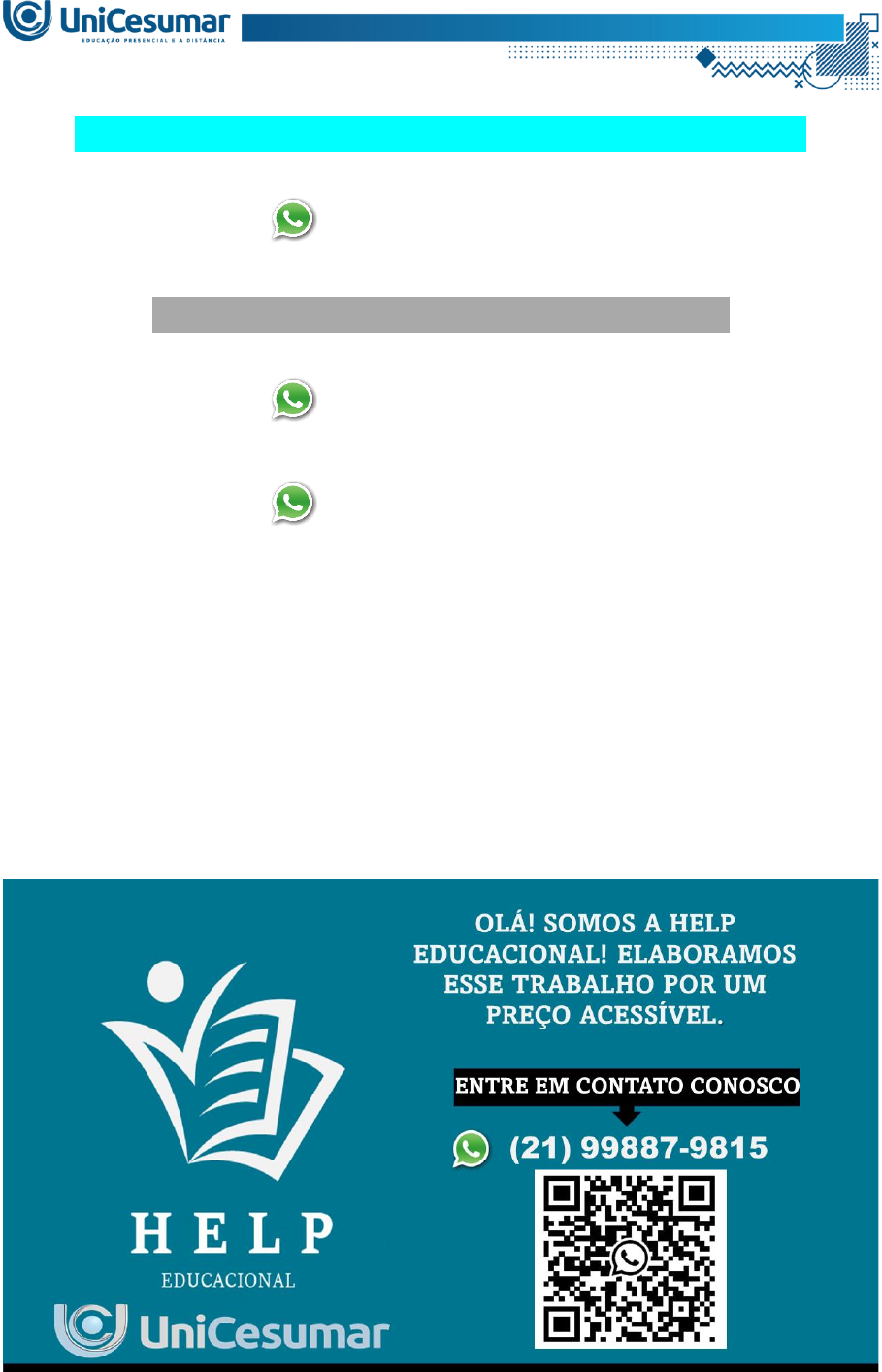 ATIVIDADE 1 – ENF – PARASITOLOGIA - 54_2025 (21) 99887-9815 ASSESSORIA NOS SEUS TRABALHOS (21) 99887-9815 (21) 99887-9815 Olá, estudante! Hoje, trazemos uma proposta diferente para esta atividade de estudo. Leia o trecho da reportagem a seguir: “Ao estudarem fezes fossilizadas descobertas em latrinas de assentamentos vikings na Dinamarca, pesquisadores mapearam geneticamente um dos parasitas humanos mais antigos — o tricurídeo (Trichuris trichiura). Os resultados foram publicados em julho na revista Nature Communications" (Galileu, 2022, on-line) Fonte: https://revistagalileu.globo.com/Ciencia/Arqueologia/noticia/2022/09/ovos-em- fezes-de-25-mil-anos-revelam-parasita-que-infectou-vikings.html. Acesso em: 23 set. 2024 Considerando o parasito apresentado na reportagem exposta, Trichuris trichiura, responda: 1. Aponte as características morfológicas do parasito 2. Descreva o ciclo biológico e forma de transmissão. 3. Descreva o nome da patologia causada e os aspectos Clínicos envolvidos. 4. Aponte o diagnóstico e tratamento. 5. Descreva as medidas de prevenção. Instruções: - Utilize o material da disciplina para elaborar suas respostas. Bom trabalho! OLÁ! SOMOS A HELP EDUCACIONAL! ELABORAMOS ESSE TRABALHO POR UM PREÇO ACESSÍVEL. ENTRE EM CONTATO CONOSCO (21) 99887-9815