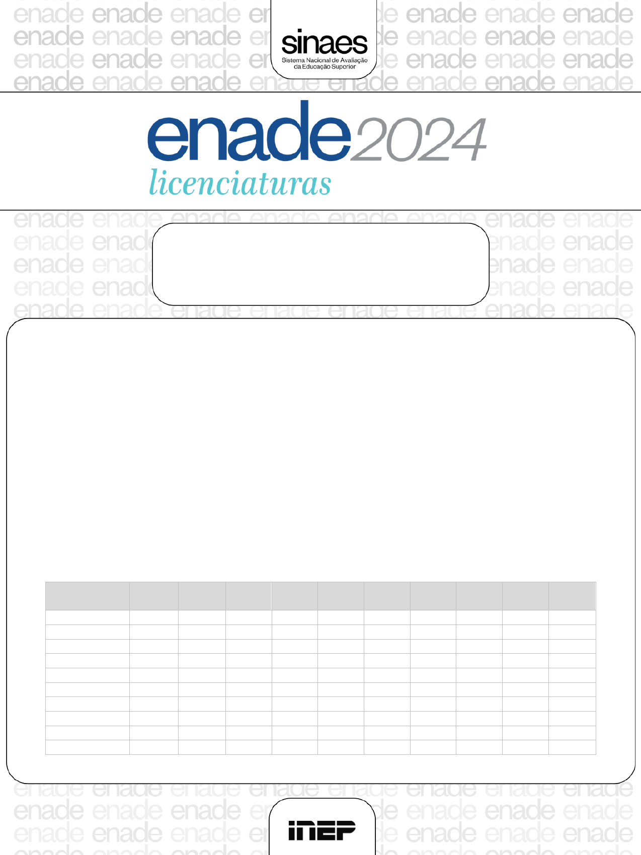 Posição no caderno divulgado Posição no caderno 1 Posição no caderno 2 Posição no caderno 3 Posição no caderno 4 Posição no caderno 5 Posição no caderno 6 Posição no caderno 7 Posição no caderno 8 Posição no caderno 9 Posição no caderno 10 1 6 6 --- 24 --- 24 15 --- 15 --- 2 10 19 1 1 19 --- --- --- --- 10 3 7 7 --- 25 --- 25 16 --- 16 --- 4 --- --- --- 18 18 --- 27 27 9 9 5 27 --- 18 --- 9 9 --- 18 27 --- 6 --- 18 27 --- --- 18 9 9 --- 27 7 --- 10 19 --- --- 10 1 1 --- 19 8 26 --- 17 --- 8 8 --- 17 26 --- 9 17 26 8 8 26 --- --- --- --- 17 10 3 3 --- 21 --- 21 12 --- 12 --- FORMAÇÃO GERAL DOCENTE Licenciatura Conforme o item 3.7.4 do Edital nº 124/2024 do INEP, "a adoção da metodologia ensejará a divulgação dos cadernos de prova e gabaritos (itens públicos) somente após a conclusão das análises dos resultados, omitidos os itens selecionados para edições futuras". Para montar os cadernos de prova do Enade Licenciaturas 2024, o Inep utilizou a metodologia denominada Blocos Incompletos Balanceados – BIB, que permite que um grande número de itens seja aplicado ao conjunto de estudantes avaliados, sem que cada estudante precise responder a todos eles. Nessa técnica, o total de itens avaliados é distribuídos em blocos e esses são combinados entre si para a elaboração de cadernos de prova que possuem, ao menos um bloco de itens distintos. No Enade Licenciaturas a combinação de blocos gerou 10 tipos de caderno de prova. Essa metodologia possibilita a mensuração de uma mesma habilidade da Matriz de Referência por mais de um item, cada qual aplicado em diferentes posições do Caderno de Prova, para diferentes respondentes de uma mesma turma ou instituição, de modo a tornar a informação produzida mais confiável. Dessa forma, determinados itens aparecem o mesmo número de vezes no conjunto dos cadernos, conforme mapa de prova divulgados. A seguir, estão listados os respectivos itens deste caderno e suas posições em cada uma das 10 variações de cadernos existentes da prova referida: 1 FORMAÇÃO GERAL DOCENTE QUESTÃO 01 TEXTO 1 A interseccionalidade é uma conceituação do problema que busca capturar as consequências estruturais e dinâmicas da interação entre dois ou mais eixos da subordinação. Ela trata especificamente da forma pela qual o racismo, o patriarcado, a opressão de classe e outros sistemas discriminatórios criam desigualdades básicas que estruturam as posições relativas ao gênero, à raça, às etnias, às classes e outras. Além disso, a interseccionalidade trata da forma como ações e políticas específicas geram opressões que fluem ao longo de tais eixos, constituindo aspectos dinâmicos ou ativos do desempoderamento. CRENSHAW, K. Documento para o encontro de especialistas em aspectos da discriminação racial relativos ao gênero. In: Estudos feministas, p. 171-188, Ano 10, 2002 (adaptado). TEXTO 2 Disponível em: https://partidanet.wordpress.com/2017/05/19/dororidade-o-que-e-ou-o-que-pretende-ser/. Acesso em: 26 set. 2024. Considerando a situação apresentada na figura e a aplicação do conceito de interseccionalidade na comunidade escolar, assinale a opção que indica uma proposta capaz de promover o direito à identidade de gênero, classe e raça, entre os integrantes de uma escola. A Realizar, periodicamente, rodas de conversa que envolvam a comunidade escolar, a fim de estimular ações de enfrentamento das múltiplas opressões que levam à invisibilização dos sujeitos. B Reproduzir na escola campanhas elaboradas por organismos internacionais sobre questões de gênero e raça, com o intuito de sensibilizar estudantes e professores sobre a importância da temática. C Estabelecer parcerias com centros de referência de atendimento à mulher, com vistas a ampliar os recursos e as orientações para enfrentar situações que geram opressões relacionadas a fatores culturais, institucionais e sociais. D Convidar especialistas renomados para realizar palestras na escola, destacando a importância da diversidade racial e de gênero para superar situações que geram opressões relacionadas a fatores culturais, institucionais e sociais. 2 FORMAÇÃO GERAL DOCENTE QUESTÃO 02 O Programa Nacional do Livro e do Material Didático (PNLD) é uma política pública longeva que conta com investimento de recursos públicos para garantir um direito social: o acesso, de forma sistemática, regular e gratuita, a materiais pedagógicos que sirvam de apoio didático no processo de ensino e de aprendizagem. Os gráficos a seguir demonstram a relação entre o investimento feito pelo Ministério da Educação e o quantitativo de beneficiários do PNLD, no período de 2014 a 2019. Gráfico 1: comparativo do investimento entre as diferentes etapas e modalidade 2014-2019. Gráfico 2: comparativo entre beneficiários das diferentes etapas e modalidades 2014-2019. SILVEIRA, D. F.; TEIXEIRA, M. do R. F. Quanto custa o livro didático? Uma análise a partir do portal da transparência do FNDE/MEC. RBPG, Brasília, v. 16, n. 35, p. 1-21, 2020 (adaptado). 3 FORMAÇÃO GERAL DOCENTE A partir dos dados apresentados nos gráficos e considerando a importância do PNLD, assinale a opção correta. A O investimento em livros didáticos para a Educação de Jovens e Adultos (EJA), assim como o número de estudantes beneficiados, é o menor em todos os anos indicados na série, o que justifica a descontinuidade dessa política para essa modalidade de ensino. B A relação inversa entre o investimento público e o número de estudantes atendidos no Ensino Médio, nos anos de 2015 e 2018, é justificada, entre outros fatores, pelo ciclo de atendimento do PNLD e pela quantidade de componentes curriculares presentes nessa etapa de ensino. C O ciclo de atendimento do PNLD para o Ensino Fundamental II ocorreu nos anos de 2014 e 2017, o que representou uma significativa elevação no número de estudantes beneficiados nesses anos, sendo o 