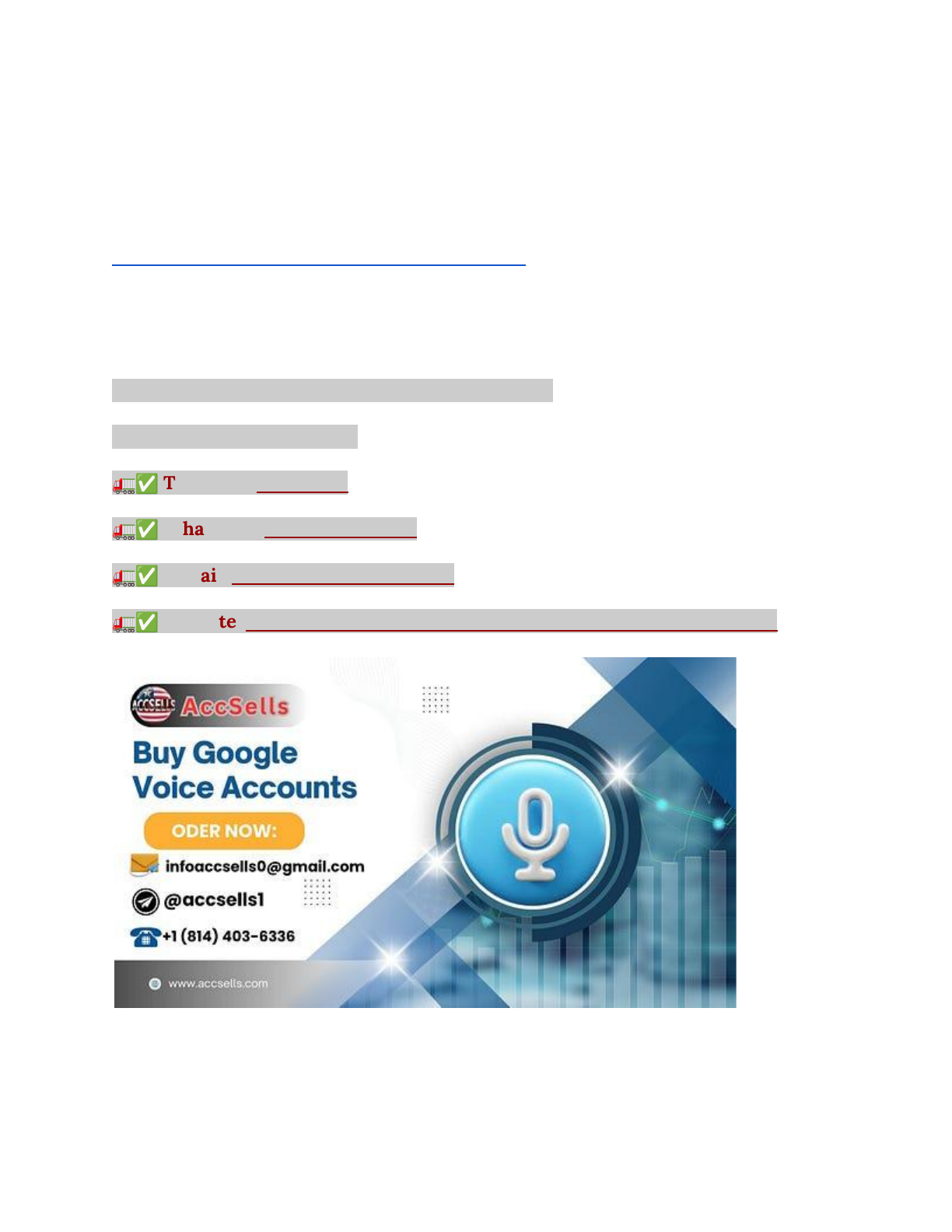 A Complete Guide to Buy Google Voice Accounts Complete 2025 Guide You Need to Read Are you thinking about buying Google Voice accounts? Maybe you need extra phone numbers for your business, or you want to keep your personal number private. Before you spend money on purchased accounts, you need to understand the whole truth. This complete guide reveals everything about Google Voice accounts — what they are, why people want them, the serious risks involved, and the legitimate alternatives that actually work for your needs. If You want to more information just contact now 24 Hours Reply/ Contact : – 🚛✅ Telegram: @accsells1 🚛✅ WhatsApp: +1 (814) 403–6336 🚛✅ E-mail: infoaccsells0@gmail.com 🚛✅ WebSite: https://accsells.com/product/buy-google-voice-accounts/ Let’s dive into this step by step so you can make the smartest decision. What is Google Voice? https://accsells.com/product/buy-google-voice-accounts/ https://t.me/accsells1 https://api.whatsapp.com/send?phone=18144036336 mailto:infoaccsells0@gmail.com https://accsells.com/product/buy-google-voice-accounts/ Google Voice is a free online phone service that gives you a special phone number you can use for calls, texts, and voicemail. Think of it as a virtual phone number that lives in the cloud rather than being tied to a physical phone or SIM card. Understanding Google Voice Basics Google Voice lets you make and receive phone calls, send text messages, and get voicemail — all through the internet. The service works on your computer, smartphone, or tablet as long as you have an internet connection. Here’s what makes it special: your Google Voice number can ring multiple devices at once. When someone calls your Google Voice number, your home phone, work phone, and cell phone can all ring simultaneously. You pick up whichever one is most convenient. The service is completely free for calls within the United States and Canada. International calls cost money, but usually less than traditional phone plans. Key Features and Functions Google Voice comes packed with useful features that make communication easier: Voicemail transcription — Google automatically converts your voice messages into text so you can read them instead of listening. Call forwarding — Route calls to any phone number you choose. Call screening — See who’s calling before you answer and decide whether to pick up. Spam filtering — Google blocks robocalls and spam automatically. Number portability — You can transfer your Google Voice number to different Google accounts you own. Personal vs Business Accounts Google Voice offers two main account types. Personal accounts are free and perfect for individual use. You get one Google Voice number that you can use for personal calls and texts. Business accounts through Google Workspace provide advanced features like automated attendants, ring groups, call recording, and integration with Google Calendar and Meet. These cost $10 to $30 per user per month, plus the cost of a Google Workspace subscription. Why People Want to Buy Google Voice Accounts Understanding why people search for Google Voice accounts helps explain the market for them. Business Communication Needs Businesses often need multiple phone numbers for different purposes. They might want separate numbers for sales, customer service, different locations, or various team members. Setting up individual accounts for each need takes time and requires phone number verification for each one. Some business owners think buying pre-made accounts will save them this setup time. They want to hit the ground running with multiple numbers ready to use immediately. Privacy and Anonymity Many people want to keep their real phone number private when posting online ads, signing up for services, or meeting new people. A Google Voice number acts as a buffer — you can give it out freely, and if spam or unwanted calls start coming in, you can simply get a new Google Voice number without changing your actual phone number. This privacy benefit makes Google Voice numbers valuable, especially for people who sell items online, date through apps, or engage in activities where sharing a phone number is necessary but potentially risky. Multiple Number Requirements Some users need several phone numbers for legitimate reasons like managing different businesses, testing apps, or handling various projects. Creating and verifying multiple Google Voice accounts requires multiple phone numbers for verification, which many people don’t have access to. The appeal of buying accounts is getting multiple verified numbers without needing to provide your own phone numbers for each verification. Bypassing Verification Challenges Google requires phone verification to create Google Voice accounts. This prevents spam and abuse, but it also limits how many accounts one person can easily create. Some people hit verification barriers and look to purchase accounts as a workaround. However, this shortcut creates serious problems we’ll discuss shortly. The Serious Dangers of Buying Google Voice Accounts If You want to more information just contact now 24 Hours Reply/ Contact : – https://accsells.com/product/buy-google-voice-accounts/ https://accsells.com/product/buy-google-voice-accounts/ 🚛✅ Telegram: @accsells1 🚛✅ WhatsApp: +1 (814) 403–6336 🚛✅ E-mail: infoaccsells0@gmail.com 🚛✅ WebSite: https://accsells.com/product/buy-google-voice-accounts/ Buying Google Voice accounts carries significant risks that sellers won’t tell you about. These dangers can harm your business, compromise your security, and create legal problems. Google’s Terms of Service Violations Google’s policies explicitly prohibit selling, trading, reselling, or transferring Google Voice accounts. These accounts are meant to be personal and cannot be bought or sold. This isn’t just a minor technicality buried in fine print. It’s a fundamental policy that Google actively enforces. When y
