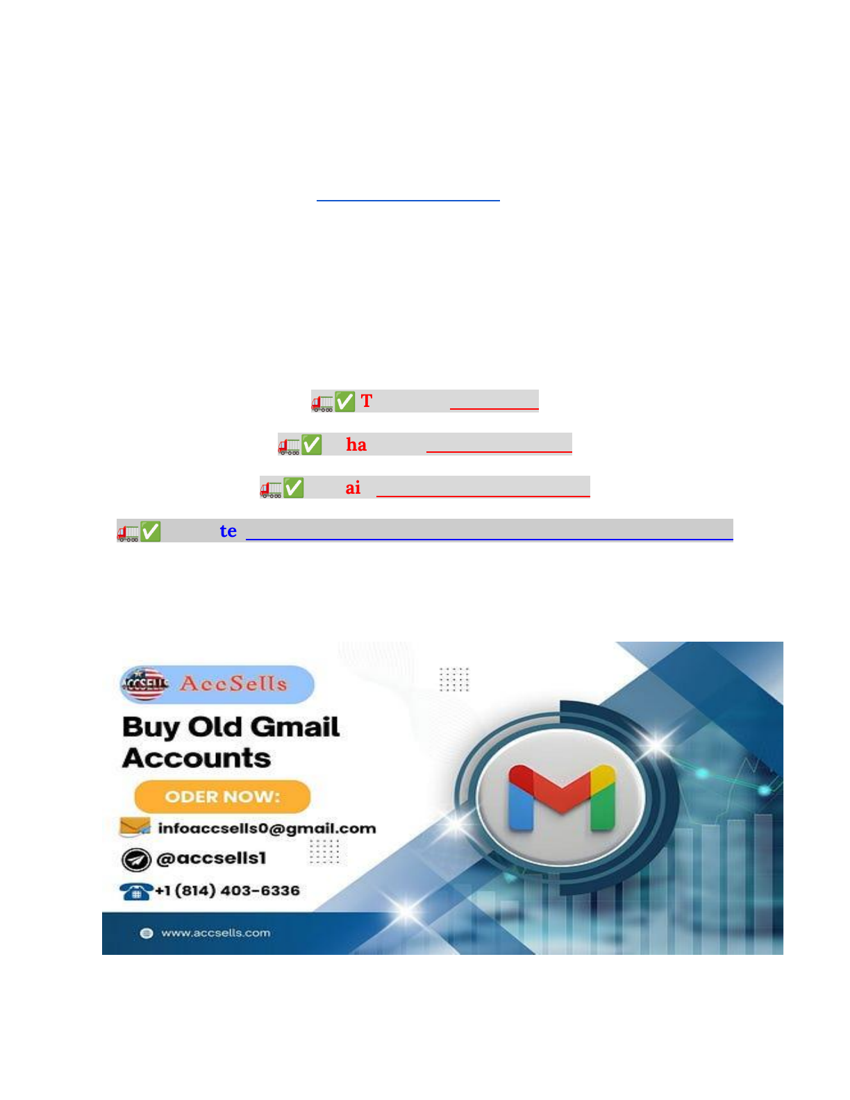 Top 8 Website to Buy Old Gmail Accounts Have you ever wondered about buying old Gmail accounts for your business or personal projects? Many people search for aged Gmail accounts, believing they offer advantages that new accounts can’t provide. Before you make any decisions, you need to understand the complete truth about old Gmail accounts, including the serious risks involved and the safer alternatives available. If You want to more information just contact now 24 Hours Reply/ Contact : – 🚛✅ Telegram: @accsells1 🚛✅ WhatsApp: +1 (814) 403–6336 🚛✅ E-mail: infoaccsells0@gmail.com 🚛✅ WebSite: https://accsells.com/product/buy-old-gmail-accounts/ This comprehensive guide explores everything about old Gmail accounts, why people want them, the dangers of purchasing them, and the legitimate ways to build trusted email accounts that actually work for your needs. https://accsells.com/product/buy-old-gmail-accounts/ https://t.me/accsells1 https://api.whatsapp.com/send?phone=18144036336 mailto:infoaccsells0@gmail.com https://accsells.com/product/buy-old-gmail-accounts/ Understanding Old Gmail Accounts Old Gmail accounts are email accounts that were created months or years ago. These accounts have been around long enough to develop what people call “digital history” or “account age.” Think of it like the difference between a brand-new car and one that’s been driven reliably for years — both work, but they have different levels of proven reliability. What Makes a Gmail Account “Old” An old Gmail account typically means the account was created at least six months to several years ago. The older the account, the more “aged” it’s considered to be. Some accounts for sale claim to be 3, 5, or even 10 years old. These accounts usually have some activity history, meaning they’ve sent and received emails, connected to various services, and established patterns that Google’s systems recognize as legitimate user behavior. This history is what makes them different from accounts created yesterday. How Account Age Affects Trust Google uses complex systems to determine how much to trust an email account. Just like how you might trust a friend you’ve known for years more than someone you just met, Google’s algorithms give more trust to accounts that have been around longer and have established normal usage patterns. This trust affects many things, including how likely your emails are to reach someone’s inbox instead of their spam folder, how many emails you can send per day, and whether certain security checks get triggered when you log in from new places. The Appeal of Aged Gmail Accounts Why do aged accounts seem attractive? The main reason is that they often face fewer restrictions than brand-new accounts. New Gmail accounts have daily sending limits, stricter spam filters, and more frequent security checks. Older accounts that have been used normally over time typically don’t face these same limitations. For businesses doing email marketing or people managing multiple online projects, these differences can seem significant. That’s why some people look for shortcuts by trying to buy accounts instead of building them up themselves. Why People Want to Buy Old Gmail Accounts Understanding why people search for old Gmail accounts helps explain the appeal and why so many sellers offer them online. https://accsells.com/product/buy-old-gmail-accounts/ https://accsells.com/product/buy-old-gmail-accounts/ Business and Marketing Needs Businesses often need multiple email accounts for different purposes. They might want separate accounts for customer service, marketing campaigns, different product lines, or various team members. Building up the reputation and trust of multiple new accounts takes time that busy business owners feel they don’t have. Some marketers believe that using aged accounts will help their outreach campaigns perform better because these accounts are less likely to be flagged as spam. They think this will lead to more successful connections with potential customers. Email Deliverability Advantages Email deliverability means whether your emails actually reach people’s inboxes or get caught in spam filters. This is a huge concern for anyone sending business emails, newsletters, or marketing messages. Aged Gmail accounts generally have better deliverability rates than brand-new accounts. When you send an email from an account that’s been around for years, Gmail’s systems are more likely to trust that it’s a legitimate message. New accounts, especially ones that immediately start sending lots of emails, often get flagged as potential spam sources. Think of it like this: if a stranger walks up to you on the street and starts talking, you’re probably more cautious than if a long-time neighbor approaches you. Email systems work similarly — they’re more cautious with new, unknown accounts. Bypassing New Account Limitations Google puts restrictions on new Gmail accounts to prevent spam and abuse. These limitations include caps on how many emails you can send per day, restrictions on API access for developers, and extra security verifications when logging in from different locations. New accounts typically can send around 500 emails per day for regular Gmail accounts or 2,000 per day for Google Workspace accounts. Aged accounts that have established good sending patterns often don’t face these same tight restrictions. Multiple Account Management Some people need many Gmail accounts for legitimate reasons, like managing different business ventures, testing software applications, or handling various client projects. Creating and warming up multiple new accounts takes significant time and effort. The appeal of buying aged accounts is that they supposedly come ready to use without the waiting period. However, this convenience comes with serious risks that often aren’t worth it. https://accsells.com/product/buy-old-gmail-accounts/ The Hid