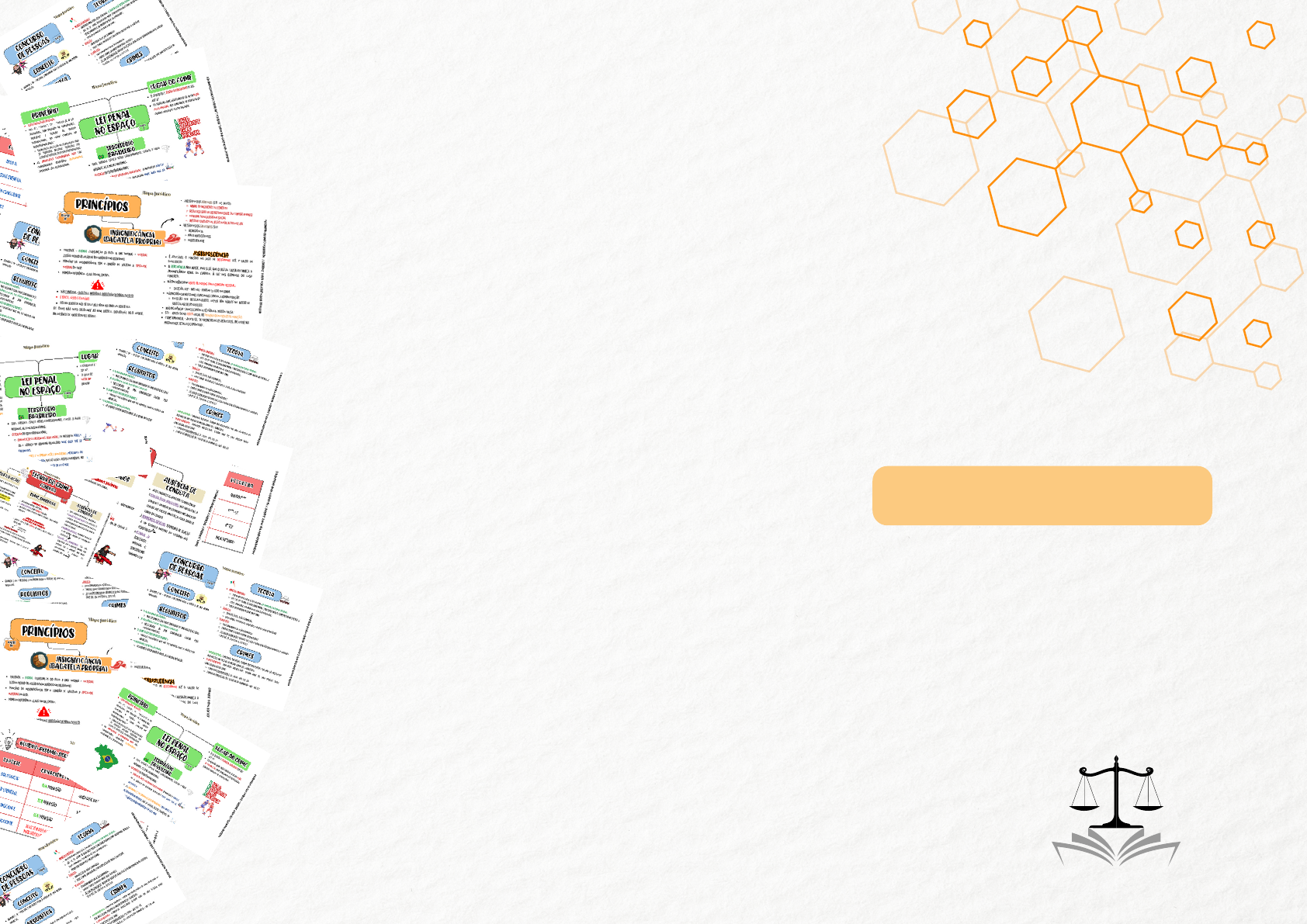 Legislação Penal M apa Jurídico MAPAS MENTAIS Licenciado para - P edro H enryque A lm eida M endes - 62346432300 - P rotegido por E duzz.com Somos dois servidores públicos federais que ainda vivem a saga de um concurseiro e somos criadores da página MAPAJURIDICO. Todos os materiais são elaborados por nós, aprovados NOS seguintes cargos policiais; Tiago: aprovado na PCSP (2013), PCSC (2014) e PF (2014); Sara: aprovada na PCDF (2019) e PF (2021); EXPERIÊNCIA E CREDIBILIDADE APRESENTAÇÃO Parabéns pela sua conquista e por encontrar um método de estudo que funciona bem para você! A revisão é, de fato, uma parte crucial do processo de aprendizado e muitas vezes é subestimada. Tenho certeza que você não irá se arrepender! BONS ESTUDOS! O Mapa Jurídico é uma ferramenta valiosa para o estudo de concursos públicos, pois oferece uma visão abrangente e organizada dos temas a serem estudados. Através dele, candidatos podem ser ajudados a compreender e memorizar informações de forma mais eficiente, facilitando a revisão e a associação de conceitos. Além disso, o estudo por meio DOS MAPAS PODE SER ASSOCIADO À RESOLUÇÃO DE QUESTÕES, SENDO UMa estratégia eficaz PARA REVISAR LOGO APÓS UM SIMULADO. ESSa combinação dos Mapas Jurídicos e questões de treinamento pode ser uma abordagem poderosa para a preparação para concursos públicos. Licenciado para - P edro H enryque A lm eida M endes - 62346432300 - P rotegido por E duzz.com M ap a Jurídico RECOMENDAÇÕES Não se limite apenas ao que será abordado neste material, busque conhecimento através de outros meios fontes também. O conteúdo desse e-book servirá como um GUIA a você nas horas dos estudos. Não compartilhe este material com outras pessoas! você O adquiriu, esse material é de uso pessoal. compartilhar com terceiros é crime de violação de direito autoral, e quem o faz está sujeito às punições do Código Penal. Seu material está em alta qualidade para impressão. Estou à disposição para dicas, dúvidas e feedbacks, no contato: - E-mail: mapajuridicOO gmail.com Não se esqueça de me seguir no Instagram: mapajuridico Quando os mapas podem ser utilizados? - Quando estiver no início de um conteúdo e quiser ter uma visão geral do conteúdo; - Quando estiver assistindo uma aula, eles podem ser usados como apoio para você fazer anotações; - Para finalizar um assunto, pode ser usado para uma revisão imediata; - Quando for fazer uma revisão depois de alguns dias de estudo, para relembrar o conteúdo estudado. -QUANDO FOR RESPONDER QUESTÕES, COMO UM GUIA DE CORREÇÃO RÁPIDA. @ @ Licenciado para - P edro H enryque A lm eida M endes - 62346432300 - P rotegido por E duzz.com Lei nº 11.343/2006 - Lei de Drogas. . . . . . . . . . . . . . . . . . . . . . . . . . . . . . . . . . . . . . . . . . . . . 1 Lei nº 10.826/2003 - Estatuto do Desarmamento. . . . . . . . . . . . . . . . . . . . . . . . . . . . 14 Lei nº 12.850/2013 - Lei das Organizações Criminosas. . . . . . . . . . . . . . . . . . . . . . . .19 Lei nº 13.869/2019 - Lei de Abuso de Autoridade. . . . . . . . . . . . . . . . . . . . . . . . . . . . 26 Lei nº 8.0721990 - Lei dos Crimes de Hediondos. . . . . . . . . . . . . . . . . . . . . . . . . . . . 35 Lei nº 9.455/1997 - Lei da Tortura. . . . . . . . . . . . . . . . . . . . . . . . . . . . . . . . . . . . . . . . . . . 44 Lei nº 9.099/1995 - Juizados Especiais Criminais. . . . . . . . . . . . . . . . . . . . . . . . . . . 46 Lei nº 6.938/1981 - Lei dos Crimes Ambientais . . . . . . . . . . . . . . . . . . . . . . . . . . . . . . 50 Lei nº 7.716/1989 - Lei do Racismo . . . . . . . . . . . . . . . . . . . . . . . . . . . . . . . . . . . . . . . . . . .53 Lei nº 9.613/1998 - Lei de Lavagem . . . . . . . . . . . . . . . . . . . . . . . . . . . . . . . . . . . . . . . . . .57 PÁG LEGISLAÇÃO PENAL - ATUALIZADA ATÉ 14/08/2024LEGISLAÇÃO PENAL - ATUALIZADA ATÉ 14/08/2024 SumárioSumário Licenciado para - P edro H enryque A lm eida M endes - 62346432300 - P rotegido por E duzz.com LEI DE DROGAS LEI 11.343/2006 LEI DE DROGAS LEI 11.343/2006 Portaria SVS/MS nº 344/1998 Portaria SVS/MS nº 344/1998 ART. 1º, §ÚNICO: substâncias ou os produtos capazes de causar dependência, assim especificados em lei ou relacionados em listas atualizadas periodicamente pelo Poder Executivo da União; MA TE RI AL P RO DU ZI DO P OR M AP A JU RÍ DI CO / P RO IB ID O O CO MP AR TI LH ME NT O CONCEITO DE DROGAS CONCEITO DE DROGAS PR I NC Í P I O BÁS I CO PR I NC Í P I O BÁS I CO Mapa JurídicoMapa Jurídico NORMAL PENAL EM BRANCO HETEROGÊNEA (NORMA CRIADA PELO LEGISLATIVO, MAS COMPLEMENTADA PELO EXECUTIVO) dispor de tratamento jurídico distinto entre o traficante e o usuário de drogas; baseada no preceito de que o uso ilícito de drogas é um problema de saúde pública, não de polícia; USO PARA FINS RELIGIOSOS USO PARA FINS RELIGIOSOS é permitido; deriva da adesão do brasil a Convenção sobre Substâncias Psicotrópicas (Convenção de viena - 1971); ex: santo daime - é servido um chá que contém substância alucinógena proibida no brasil; SISNADSISNAD Siste ma Nacional de Políticas Públicas sobre Drogas; definição: conjunto ordenado de princípios, regras, critérios e recursos materiais e humanos que envolvem as políticas, planos, programas, ações e projetos sobre drogas, incluindo- -se nele, por adesão, os Sistemas de Políticas Públicas sobre Drogas dos Estados, Distrito Federal e Municípios - art. 3º, §1º; Plano Nacional de Políticas sobre Drogas: duração de 5 anos a contar da aprovação; PARTE IPARTE I 1 Licenciado para - P edro H enryque A lm eida M endes - 62346432300 - P rotegido por E duzz.com LEI DE DROGAS INTERNAÇÃO LEI DE DROGAS INTERNAÇÃO sem consentimento do dependente de drogas; prazo máximo de 90 dias; familiar ou representante legal pode requerer a interrupção antes do prazo; quem pode solicitar: (1) familiares; (2) responsável legal; n