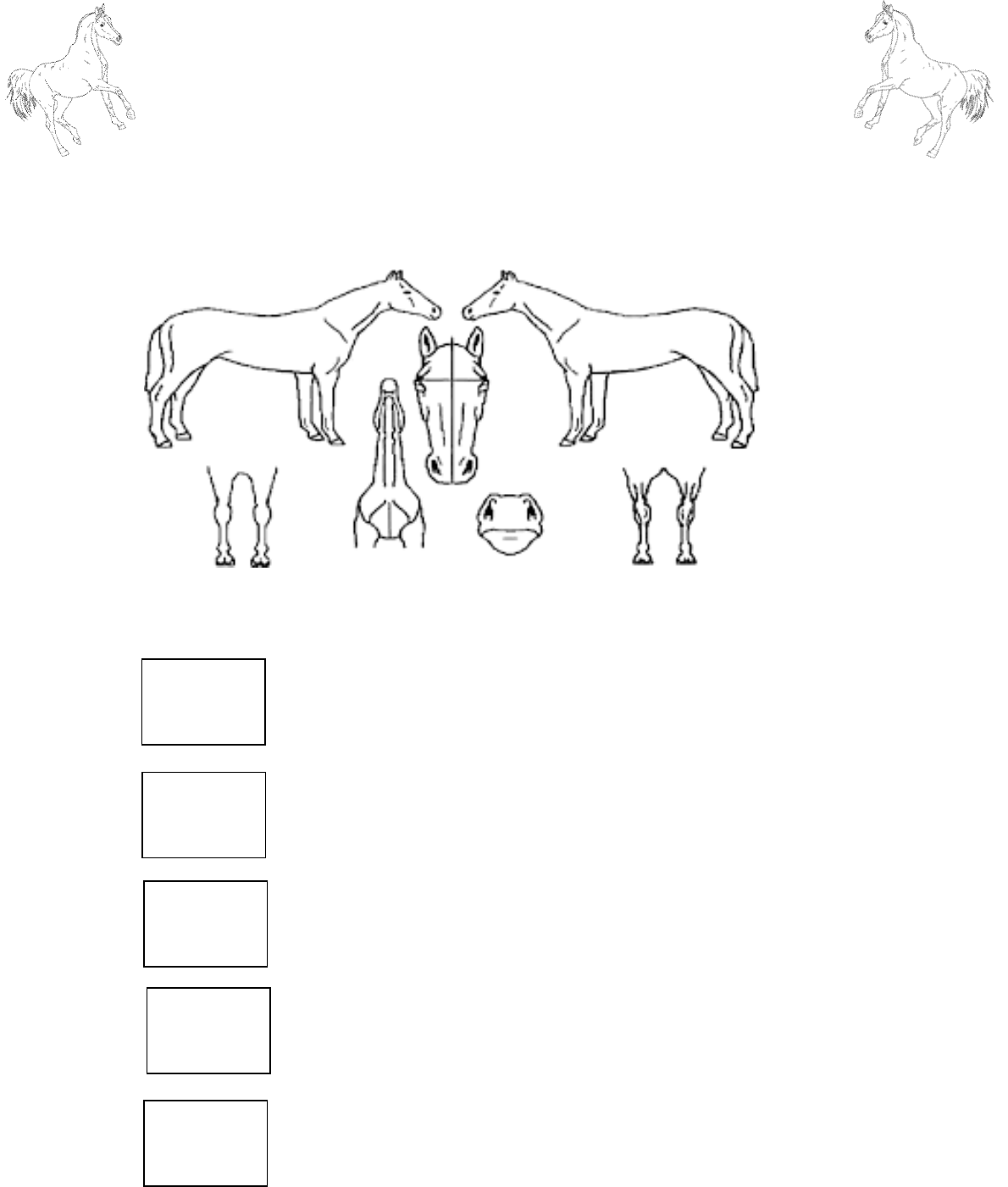 RESENHA O QUE É RESENHA DE CAVALO? É A DESCRIÇÃO E MARCAÇÃO DE CARACTERISFICAS FISICAS DO CAVALO. E ELA DEVE SER CLARA E LIMPA PARA FACILITAR IDENTIFICAÇÃO RÁPIDA DO CAVALO, EVITANDO INFORMAÇÕES DESNECESSÁRIAS. PASSO A PASSO: V ESPIGA CICATRIZ REDEMOINHO CASCO BRANCO PINTAR OU ***RISCO*** MARCAÇÃO DE CALÇADO (PELAGEM DOS MENBROS ANTERIORES E POSTERIORES) TERMOS ZOOTÉCNICOS CONTENÇÃO MÉTODOS E EQUIPAMENTOS DE CONTENÇÃO DE EQUINOS CONTENÇÕES MANUAIS E SIMPLES 1- CABRESTO: EQUIPAMENTO BÁSICO, SEMELHANTE A UMA COLEIRA PARA A CABEÇA, USADO NO MANEJO DIÁRIO E CONDUÇÃO. o ⚠️ AJUSTAR BEM PARA NÃO FERIR; EVITAR DEIXAR O ANIMAL PRESO SOZINHO. 2- NÓ DE SOLTURA FÁCIL: TÉCNICA DE AMARRAÇÃO QUE PERMITE LIBERAÇÃO RÁPIDA EM EMERGÊNCIAS. o ⚠️ ESSENCIAL PARA SEGURANÇA EM MANEJOS DE ROTINA. 3- MÃO DE AMIGO: SUSPENSÃO DE UMA PATA DIANTEIRA PARA REDUZIR RESISTÊNCIA DO CAVALO. o ⚠️ USO BREVE PARA EVITAR DOR OU FADIGA. 4- PÉ DE AMIGO: ELEVAÇÃO DE UMA PATA TRASEIRA, USADO NO EXAME DE CASCOS E FERRAGEAMENTO. o ⚠️ REQUER EXPERIÊNCIA, POIS HÁ RISCO DE COICES. TÉCNICAS DE DISTRAÇÃO/DESCONFORTO CONTROLADO 5- CACHIMBO (TWITCH): PRESSÃO NO LÁBIO SUPERIOR (MANUAL OU COM BASTÃO/CORDA). ⚠️ MÁX. 10–15 MIN; EVITAR LESÕES. 6- TORÇÃO DE ORELHA: COMPRESSÃO LEVE DA ORELHA. ⚠️ RISCO DE TRAUMA AURICULAR. 7- PREGA DE PELE: TORÇÃO LEVE DE UMA DOBRA DE PELE NO PESCOÇO. ⚠️ EVITAR EXCESSO DE PRESSÃO PARA NÃO CAUSAR HEMATOMAS. APOIOS E AUXÍLIOS MECÂNICOS 8- TRAVÃO: CINTA OU CORDA QUE MANTÉM A PATA SUSPENSA DURANTE A “MÃO DE AMIGO”. ⚠️ NÃO APERTAR EXCESSIVAMENTE PARA NÃO PREJUDICAR CIRCULAÇÃO. 9- PEITEIRA: PEITORAL USADO EM ÉGUAS DURANTE MONTA OU COLETA DE SÊMEN. ⚠️ AJUSTAR PARA NÃO COMPRIMIR A TRAQUEIA. CONTENÇÃO ESTRUTURAL 10- TRONCO DE CONTENÇÃO: ESTRUTURA FIXA (MADEIRA OU METAL) PARA IMOBILIZAÇÃO COMPLETA. IDEAL PARA EXAMES RETAIS, COLETA DE SANGUE EM GRANDES VOLUMES, ODONTOLOGIA, ETC. ⚠️ NECESSÁRIO PISO ANTIDERRAPANTE E CHECAGEM DAS TRAVAS. EXAME CLÍNICO EM CAVALOS EXAME CLÍNICO EM CAVALOS 1. ANAMNESE • IDENTIFICAÇÃO DO ANIMAL (NOME, IDADE, SEXO, RAÇA, PELAGEM). • HISTÓRICO (USO DO ANIMAL – ESPORTE, LAZER, REPRODUÇÃO; ALIMENTAÇÃO; VACINAÇÃO; VERMIFUGAÇÃO). • QUEIXA PRINCIPAL E EVOLUÇÃO DO PROBLEMA. 2. EXAME FÍSICO GERAL • AVALIAÇÃO À DISTÂNCIA: POSTURA, COMPORTAMENTO, LOCOMOÇÃO, CONDIÇÃO CORPORAL, PRESENÇA DE FERIDAS OU SECREÇÕES. • ESTADO DE CONSCIÊNCIA: ALERTA, APÁTICO, DEPRIMIDO. • MUCOSAS: COR (ROSADA NORMAL), TEMPO DE PREENCHIMENTO CAPILAR (≤ 2 S), UMIDADE. • SISTEMA TEGUMENTAR: PELE, PELOS, CASCOS, LINFONODOS SUPERFICIAIS. 3. SINAIS VITAIS • FREQUÊNCIA CARDÍACA: 28–44 BPM EM ADULTOS. • FREQUÊNCIA RESPIRATÓRIA: 8–16 MOVIMENTOS POR MINUTO. • TEMPERATURA RETAL: 37,5–38,5 °C. • MOTILIDADE INTESTINAL: AUSCULTAR OS 4 QUADRANTES DO ABDÔMEN (SONS DE 1–3/MINUTO). • PULSO ARTERIAL: AVALIADO NA ARTÉRIA FACIAL, DIGITAL OU COCCÍGEA. 4. EXAME POR SISTEMAS • APARELHO CARDIOVASCULAR: AUSCULTA DOS FOCOS CARDÍACOS, RITMO, SOPROS. • APARELHO RESPIRATÓRIO: INSPEÇÃO, PALPAÇÃO DE FOSSAS NASAIS, AUSCULTA TRAQUEAL E PULMONAR. • APARELHO DIGESTÓRIO: EXAME DE CAVIDADE ORAL, AUSCULTAÇÃO INTESTINAL, PALPAÇÃO RETAL. • APARELHO URINÁRIO: MICÇÃO, PALPAÇÃO RETAL DE RINS E BEXIGA (QUANDO POSSÍVEL). • SISTEMA LOCOMOTOR: INSPEÇÃO DE APRUMOS, PALPAÇÃO DE MEMBROS, CASCOS. • SISTEMA NERVOSO: REFLEXOS, MARCHA, SENSIBILIDADE. • SISTEMA REPRODUTOR: EXAME DE VULVA, PÊNIS, TESTÍCULOS, PALPAÇÃO RETAL DE ÚTERO/OVÁRIOS EM FÊMEAS. 5. EXAMES COMPLEMENTARES (QUANDO NECESSÁRIOS) • HEMOGRAMA, BIOQUÍMICA SÉRICA. • ULTRASSONOGRAFIA, RADIOGRAFIA, ENDOSCOPIA. • EXAME PARASITOLÓGICO DE FEZES. • ELETROCARDIOGRAMA, ECOCARDIOGRAMA. AVALIAÇÕES 🫁 PULMONAR • LADO: ESQUERDO - ESPAÇO INTERCOSTAL: 3º • POSIÇÃO: REGIÃO CRANIOVENTRAL, BEM PRÓXIMO AO COTOVELO (LINHA DO OLÉCRANO). • DICA: FICA MAIS ALTA E UM POUCO MAIS CRANIAL QUE AS OUTRAS. AÓRTICA • LADO: ESQUERDO - ESPAÇO INTERCOSTAL: 4º • POSIÇÃO: UM POUCO MAIS DORSAL QUE A PULMONAR, LOGO ATRÁS DA ESCÁPULA, PRÓXIMO À LINHA DO OMBRO. • DICA: É A MAIS “ALTA” DA AUSCULTA ESQUERDA. MITRAL (BICÚSPIDE) • LADO: ESQUERDO - ESPAÇO INTERCOSTAL: 5º • POSIÇÃO: CAUDAL À AÓRTICA, BEM PRÓXIMO À PONTA DO COTOVELO, REGIÃO MAIS VENTRAL. • DICA: É A MAIS “BAIXA” E CAUDAL DA AUSCULTA ESQUERDA. TRICÚSPIDE (PARA COMPLETAR) • LADO: DIREITO - ESPAÇO INTERCOSTAL: 4º • POSIÇÃO: BEM PRÓXIMO AO COTOVELO, LIGEIRAMENTE DORSAL. NOS EQUINOS, OS 4 QUADRANTES ABDOMINAIS SÃO USADOS NA AUSCULTAÇÃO DO TRATO GASTROINTESTINAL. CADA LADO DO ABDÔMEN É DIVIDIDO EM CRANIAL E CAUDAL, FORMANDO 4 REGIÕES PRINCIPAIS: LADO DIREITO • QUADRANTE CRANIAL DIREITO → CECO (SONS DE GORGOLEJO, MAIS INTENSOS). • QUADRANTE CAUDAL DIREITO → CÓLON VENTRAL DIREITO. LADO ESQUERDO • QUADRANTE CRANIAL ESQUERDO → CÓLON DORSAL E CÓLON VENTRAL ESQUERDOS. • QUADRANTE CAUDAL ESQUERDO → CÓLON DESCENDENTE E PEQUENAS ALÇAS DE INTESTINO DELGADO. AVALIAÇÕES Flanco direito corresponde ao quadrante inferior direito que é possível auscultar cólon ventral direito e corpo do ceco . Descendo um pouco mais, em quadros de sablose ( acúmulo de areia ) é possível auscultar, sons que lembram ondas do mar.Animais em períodos prolongados de jejum (acima de 24 horas) terão diminuição significativa de ruídos intestinais. Paralombar esquerda para flanco médio é a região do quadrante superior esquerdo , e é onde auscultamos os sons de intestino delgado . Esse quadrante tende ser mais silencioso que os demais, uma vez que ele possui uma menor quantidade de fluidos e gás. Será diminuído mas nunca ausente. Paralombar esquerda para flanco médio é a região do quadrante superior esquerdo, e é onde auscultamos os sons de intestino delgado. Esse quadrante tende ser ma