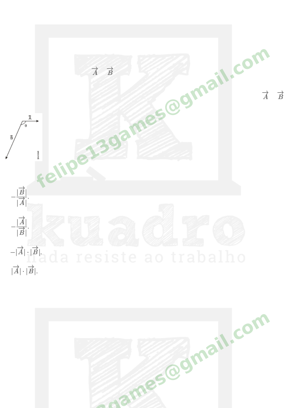 ITA18 - Física LF1B1-2 - Vetores Questão 1 (Epcar (Afa) 2012) Os vetores e , na figura abaixo, representam, respectivamente, a velocidade do vento e a velocidade de um avião em pleno voo, ambas medidas em relação ao solo. Sabendo-se que o movimento resultante do avião acontece em uma direção perpendicular à direção da velocidade do vento, tem-se que o cosseno do ângulo θ entre os vetores velocidades e , vale a) b) c) d) e) não sei. felipe13games@gmail.c om Questão 2 Seja v1 a velocidade de um barco em relação às águas de um rio de margens paralelas e v2 a velocidade das águas em relação às margens. Sabendo que v1 = 40 km/h e que v2 = 20 km/h, determine o ângulo entre v1 e v2 para que o barco atravesse o rio perpendicularmente às margens. Admita que v2 seja paralela às margens. a) 90° b) 120° felipe13games@gmail.c om http://www.codecogs.com/eqnedit.php?latex=%5Coverrightarrow%7BA%7D http://www.codecogs.com/eqnedit.php?latex=%5Coverrightarrow%7BB%7D http://www.codecogs.com/eqnedit.php?latex=%5Coverrightarrow%7BA%7D http://www.codecogs.com/eqnedit.php?latex=%5Coverrightarrow%7BB%7D http://www.codecogs.com/eqnedit.php?latex=-%5Cfrac%7B%7C%5Coverrightarrow%7BB%7D%7C%7D%7B%7C%5Coverrightarrow%7BA%7D%7C%7D. http://www.codecogs.com/eqnedit.php?latex=-%5Cfrac%7B%7C%5Coverrightarrow%7BA%7D%7C%7D%7B%7C%5Coverrightarrow%7BB%7D%7C%7D. http://www.codecogs.com/eqnedit.php?latex=-%7C%5Coverrightarrow%7BA%7D%7C%5Ccdot&space;%7C%5Coverrightarrow%7BB%7D%7C. http://www.codecogs.com/eqnedit.php?latex=%7C%5Coverrightarrow%7BA%7D%7C%5Ccdot&space;%7C%5Coverrightarrow%7BB%7D%7C. c) 150° d) 135º e) 75° f) Não sei felipe13games@gmail.c om Questão 3 Seis vetores fecham um hexágono regular, dando resultante nula. Se trocarmos o sentido de três deles, alternadamente, a resultante terá módulo: a) igual ao de um vetor componente; b) 2 vezes o módulo de um vetor componente; c) vezes o módulo de um vetor componente; d) vezes o módulo de um vetor componente; e) nulo f) Não sei felipe13games@gmail.c om Questão 4 Na figura, estão representadas quatro forças, F1, F2, F3 e F4, de intensidades iguais a N, superpostas às diagonais dos quadrados em que estão inseridas. A intensidade da resultante dessas quatro forças é igual a: a) 0 N b) 1 N felipe13games@gmail.c om c) 2 N d) 4 N e) 8 N f) Não sei Questão 5 Considere dois vetores A e B de módulos iguais a x, com origens coincidentes no ponto O, conforme representa a figura. O vetor A é fixo e o vetor B pode girar no plano da figura, porém mantendo sempre sua origem em O. Sendo R o vetor resultante de A + B , o gráfico que melhor representa a variação do módulo de R em função do ângulo θ formado entre A e B é: a) b) c) felipe13games@gmail.c om d) e) f) Não sei Questão 6 Considere três vetores X, Y e Z de módulos respectivamente iguais a x, y e z. Determine os módulos máximo e mínimo da soma X + Y + Z nos seguintes casos: I) x = 5, y = 8 e z = 10; II) x = 3, y = 7 e z = 15. a) I) 23 e zero; II) 25 e 5 b) I) 23 e 10; II) 20 e 5 c) I) 23 e 10; II) 25 e 5 d) I) 15 e 10; II) 20 e 5 e) I) 15 e zero; II) 20 e 5 f) Não sei felipe13games@gmail.c om Questão 7 (Desc) Num jogo de rugby, um jogador pode passar a bola legalmente para seu companheiro de equipe, contanto que o passe não seja para a frente (não pode existir componente do vetor velocidade da bola, paralelo à lateral do campo, no sentido do gol adversário). Suponha que um jogador corra paralelo à lateral do campo com uma velocidade de 4 m/s, quando passa a bola com uma velocidade de 6 m/s em relação a si próprio. Qual o menor ângulo possível com a direção do felipe13games@gmail.c om gol adversário, para que o lançamento seja considerado legal? a) arcsen 2/3 b) arccos 2/3 c) arccos(2√5/6) d) 30° e) 60° f) não sei felipe13games@gmail.c om Questão 8 (Pucmg 2006) ASSINALE A OPÇÃO CORRETA. a) Um escalar pode ser negativo. b) A componente de um vetor não pode ser negativa. c) O módulo de um vetor pode ser negativo. d) A componente de um vetor é sempre diferente de zero. e) Não sei. felipe13games@gmail.c om Questão 9 (Ufc 2006) Analisando a disposição dos vetores BA, EA, CB, CD e DE, conforme figura a seguir, assinale a alternativa que contém a relação vetorial correta. felipe13games@gmail.c om a) CB + CD + DE = BA + EA b) BA + EA + CB = DE + CD c) EA - DE + CB = BA + CD d) EA - CB + DE = BA - CD e) BA - DE - CB = EA + CD f) Não sei felipe13games@gmail.c om Questão 10 (Ufc 2003) A figura adiante mostra o mapa de uma cidade em que as ruas reti l íneas se cruzam perpendicularmente e cada quarteirão mede 100 m. Você caminha pelas ruas a partir de sua casa, na esquina A, até a casa de sua avó, na esquina B. Dali segue até sua escola, situada na esquina C. A menor distância que você caminha e a distância em linha reta entre sua casa e a escola são, respectivamente: a) 1800 m e 1400 m. b) 1600 m e 1200 m. c) 1400 m e 1000 m. d) 1200 m e 800 m. e) 1000 m e 600 m. f) Não sei. felipe13games@gmail.c om felipe13games@gmail.c om Questão 11 (Unifesp 2002) Na figura, são dados os vetores , e . Sendo u a unidade de medida do módulo desses vetores, pode-se afirmar que o vetor = - + .tem módulo a) 2u, e sua orientação é vertical, para cima. b) 2u, e sua orientação é vertical, para baixo. c) 4u, e sua orientação é horizontal, para a direita. d) u, e sua orientação forma 45° com a horizontal, no sentido horário. e) u, e sua orientação forma 45° com a horizontal, no sentido anti-horário. f) Não sei. felipe13games@gmail.c om Questão 12 (Fatec 1996) Dados os vetores A, B e C, representados na figura em que cada quadrícula apresenta lado correspondente a uma unidade de medida, é correto afirmar que a resultante dos vetores tem módulo: felipe13games@gmail.c om https://www.codecogs.com/eqnedit.php?latex=%5Cvec%7Bw%7D https://www.codecogs.com/eqnedit.php?latex=%5Cvec%7Bw%7D a) 1 b) 2 c) 3 d) 4 e) 5 f) 6 g) Não sei felipe13g