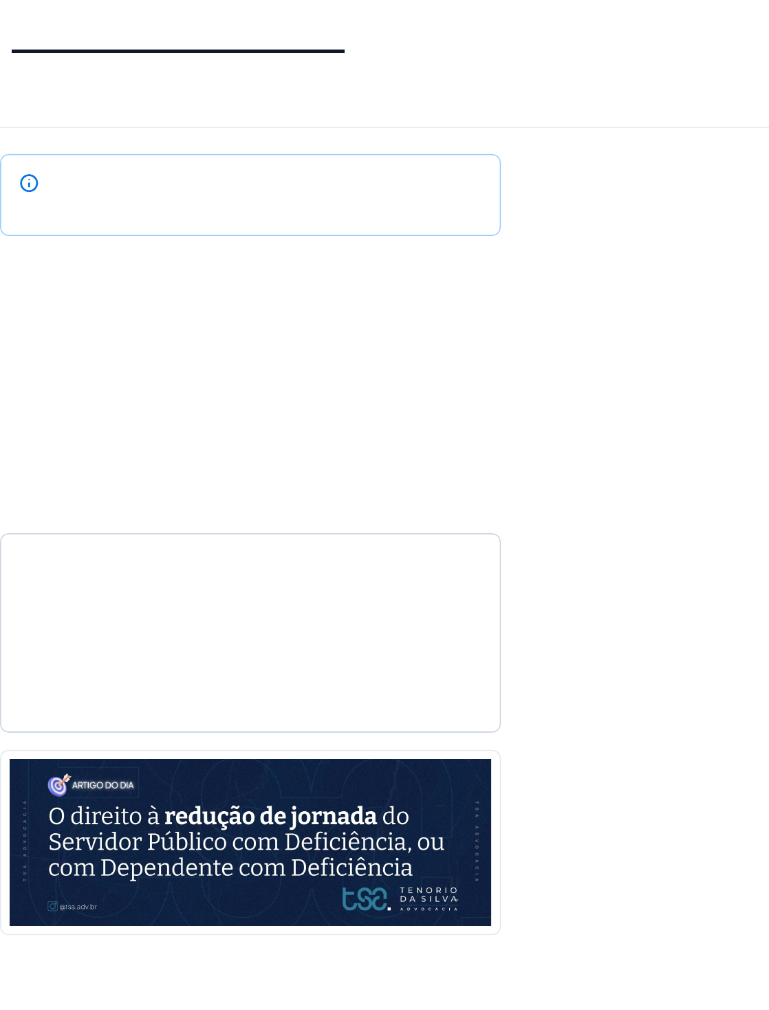 27/09/2025, 09:45O direito à redução de jornada do servidor público com deficiência, ou com dependente com deficiência | Jusbrasil Página 1 de 11https://www.jusbrasil.com.br/artigos/o-direito-a-reducao-de-jorn…ico-com-deficiencia-ou-com-dependente-com-deficiencia/4558473285 jusbrasil.com.br 27 de setembro de 2025 Entre no Jusbrasil para imprimir o conteúdo. Acesse: https://www.jusbrasil.com.br/cadastro O direito à redução de jornada do servidor público com deficiência, ou com dependente com deficiência Descubra como servidores públicos com deficiência ou com dependente nessa condição têm direito à redução de jornada sem desconto salarial — fundamento legal, jurisprudência e orientações práticas • • • Este conteúdo foi criado com auxílio de Inteligência Artificial. Resumo do artigo O artigo aborda o direito de servidores públicos com deficiência ou com dependentes nessa condição à redução da jornada sem prejuízo da remuneração e sem compensação. Fundamentado na Lei 8.112/90, na Lei Brasileira de Inclusão e na tese do STF (Tema 1097), destaca a aplicação a todas as esferas, inclusive em estágio probatório, garantindo inclusão e dignidade. 27/09/2025, 09:45O direito à redução de jornada do servidor público com deficiência, ou com dependente com deficiência | Jusbrasil Página 2 de 11https://www.jusbrasil.com.br/artigos/o-direito-a-reducao-de-jorn…co-com-deficiencia-ou-com-dependente-com-deficiencia/4558473285 Introdução No cenário jurídico brasileiro, a inclusão e a proteção dos direitos das pessoas com deficiência têm ganhado cada vez mais destaque. Um tema de grande relevância para os servidores públi- cos diz respeito à possibilidade de redução da jornada de trabalho, sem prejuízo da remuneração, quando o próprio servidor é portador de deficiência ou possui dependente nessa condição. Este artigo visa explorar os fundamentos legais e a ju- risprudência que garantem esse direito, oferecendo um panorama completo para servidores e profissionais do direito. • • • Fundamentação legal: a lei 8.112/90 O direito à jornada especial para servidores públicos federais encontra amparo na Lei nº 8.112/90, que dis- põe sobre o regime jurídico dos servidores publicos ci- vis da União, das autarquias e das fundações públicas federais. Especificamente, o Art. 98 e seus parágrafos são cruci- ais para a compreensão desse benefício: Art. 98. Será concedido horário especial ao servi- dor estudante, quando comprovada a incompati- bilidade entre o horário escolar e o da repartição, https://www.jusbrasil.com.br/legislacao/97937/regime-juridico-dos-servidores-publicos-civis-da-uniao-lei-8112-90 https://www.jusbrasil.com.br/legislacao/97937/regime-juridico-dos-servidores-publicos-civis-da-uniao-lei-8112-90 https://www.jusbrasil.com.br/legislacao/97937/regime-juridico-dos-servidores-publicos-civis-da-uniao-lei-8112-90 27/09/2025, 09:45O direito à redução de jornada do servidor público com deficiência, ou com dependente com deficiência | Jusbrasil Página 3 de 11https://www.jusbrasil.com.br/artigos/o-direito-a-reducao-de-jorn…co-com-deficiencia-ou-com-dependente-com-deficiencia/4558473285 sem prejuízo do exercício do cargo. § 2o Também será concedido horário especial ao servidor portador de deficiência, quando compro- vada a necessidade por junta médica oficial, inde- pendentemente de compensação de horário. § 3o As disposições constantes do § 2o são exten- sivas ao servidor que tenha cônjuge, filho ou de- pendente com deficiência. É fundamental notar que a Lei 8.112/90 estabelece a concessão do horário especial independentemente de compensação de horário, o que significa que a redução da jornada não implica em necessidade de trabalhar horas extras para compensar o tempo reduzido, nem em redução salarial. Este é um ponto vital para a garan- tia da dignidade do servidor e de sua família. Ou seja: a Lei 8.112/1990, art. 98, §§ 2º e 3º, assegura horário especial ao servidor com deficiência e ao servi- dor com dependente com deficiência, independente- mente de compensação de horário — expressão que, por si, afasta qualquer redução proporcional de vencimen- tos: se não há compensação, a Administração não pode exigir “banco de horas” nem cortar salário. • • • Fundamentação legal: a lei brasi- leira de inclusão Para a correta aplicação desses dispositivos citados aci- https://www.jusbrasil.com.br/legislacao/97937/regime-juridico-dos-servidores-publicos-civis-da-uniao-lei-8112-90 https://www.jusbrasil.com.br/legislacao/97937/regime-juridico-dos-servidores-publicos-civis-da-uniao-lei-8112-90 https://www.jusbrasil.com.br/topicos/10993753/artigo-98-da-lei-n-8112-de-11-de-dezembro-de-1990 https://www.jusbrasil.com.br/topicos/10993663/paragrafo-2-artigo-98-da-lei-n-8112-de-11-de-dezembro-de-1990 https://www.jusbrasil.com.br/topicos/10993629/paragrafo-3-artigo-98-da-lei-n-8112-de-11-de-dezembro-de-1990 27/09/2025, 09:45O direito à redução de jornada do servidor público com deficiência, ou com dependente com deficiência | Jusbrasil Página 4 de 11https://www.jusbrasil.com.br/artigos/o-direito-a-reducao-de-jorn…co-com-deficiencia-ou-com-dependente-com-deficiencia/4558473285 ma, é imprescindível entender o conceito de pessoa com deficiência. A Lei nº 13.146/2016, conhecida como Lei Brasileira de Inclusão da Pessoa com Deficiência ( Estatuto da Pes- soa com Deficiencia), traz uma definição abrangente em seu Art. 2º: Art. 2º Considera-se pessoa com deficiência aque- la que tem impedimento de longo prazo de natu- reza física, mental, intelectual ou sensorial, o qual, em interação com uma ou mais barreiras, pode obstruir sua participação plena e efetiva na sociedade em igualdade de condições com as de- mais pessoas. •§ 1º A avaliação da deficiência, quando necessá- ria, será biopsicossocial, realizada por equipe mul