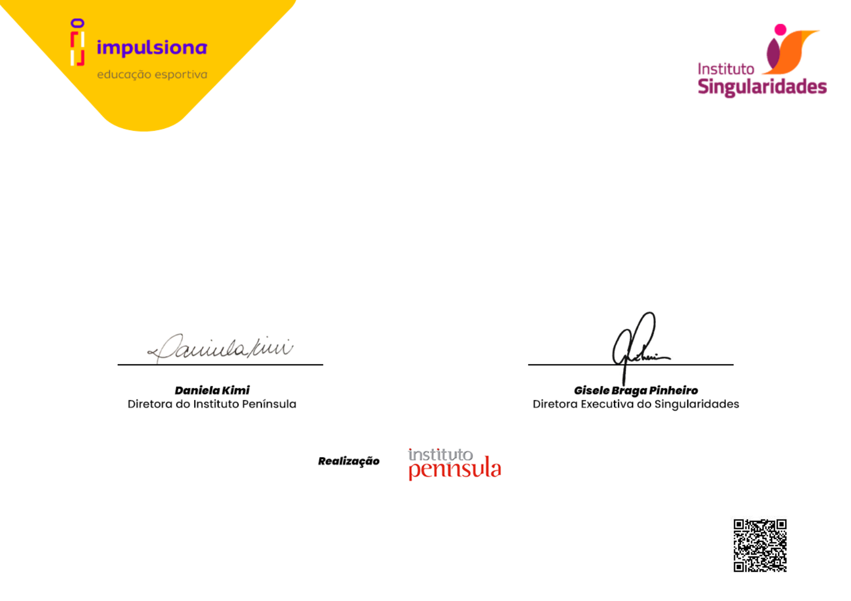 CERTIFICADO DE CONCLUSÃO Certificamos que Audrey Faria Aldrovani , inscrito no CPF sob o nº 44622032830, concluiu com sucesso o curso na modalidade EAD Olimpíadas Paris 2024 na sua Escola, ministrado pelo Impulsiona, programa de educação esportiva do Instituto Península, CNPJ nº 44.063.136/0001-16, no período de 29 de agosto de 2024 a 28 de outubro de 2024 com carga horária de 4 horas. Autenticidade do documento: avamec.mec.gov.br/#/curso/verificar-autenticidade-documento-conclusao Registro: 0d8vxJ62 Documento emitido pelo ambiente virtual de aprendizagem do Ministério da Educação - AVAMEC https://avamec.mec.gov.br/#/curso/verificar-autenticidade-documento-conclusao?registro=0d8vxJ62