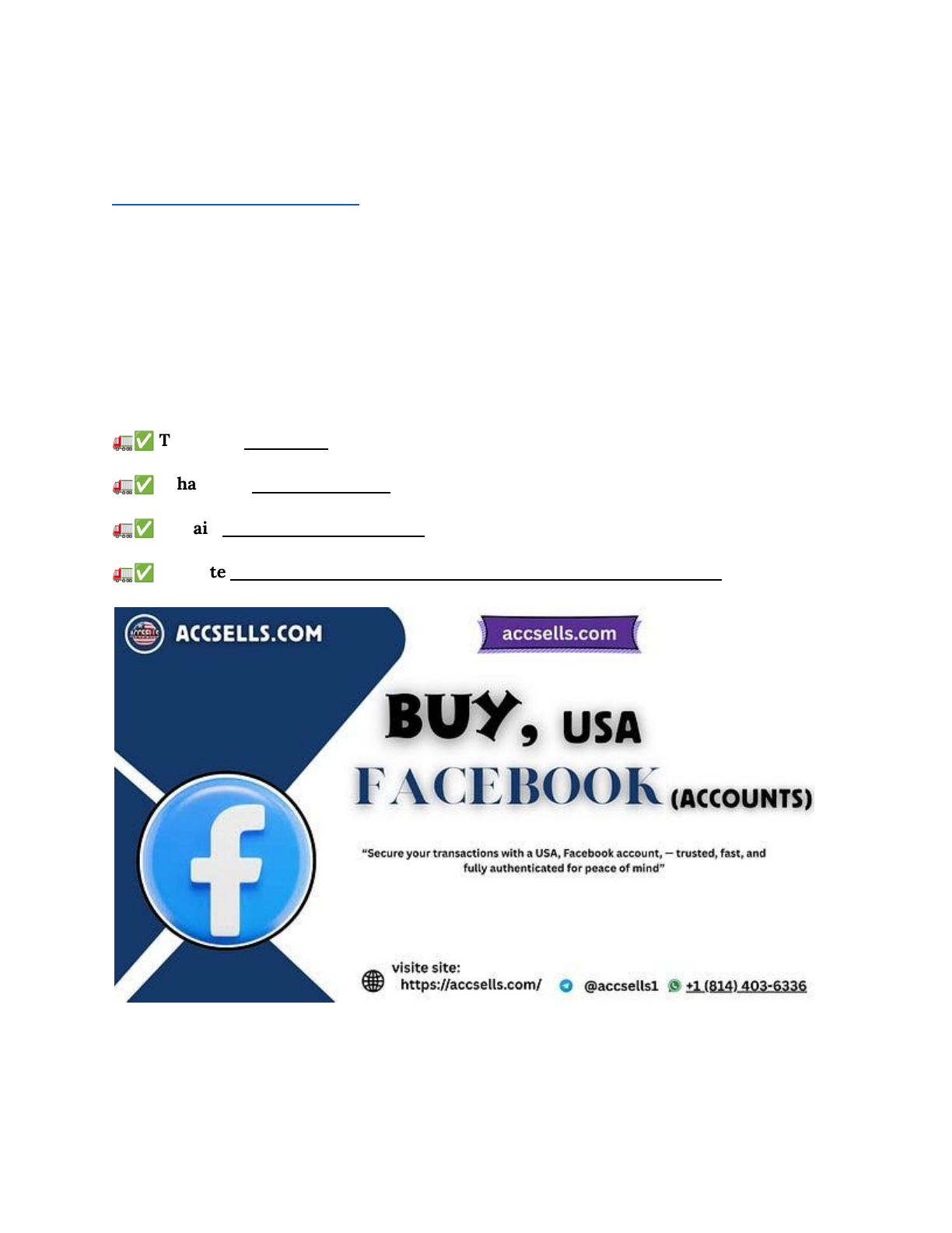 Best 5 Key Tips Before Buying Used Facebook Accounts Online Buying used Facebook accounts for sale has become a go-to strategy for marketers, affiliate professionals, and growth hackers. These pre-established profiles — some with years of activity — offer better ad stability, faster approval rates, and a way to bypass Facebook’s ever-tightening security filters. Whether you’re managing multiple brands, running paid traffic, or scaling your social media presence across niches, used Facebook accounts for sale can help you skip the warm-up phase and get right to action. If You want to more information just contact now 24 Hours Reply/ Contact : – 🚛✅ Telegram: @accsells1 🚛✅ WhatsApp: +1 (814) 403–6336 🚛✅ E-mail: infoaccsells0@gmail.com 🚛✅ WebSite:https://accsells.com/product/buy-usa-facebook-accounts/ But buying used Facebook accounts for sale isn’t as simple as placing an order and logging in. You need to know what kind of account you’re getting, how to handle it safely, and most importantly — how to avoid bans that can kill your campaign overnight. In this guide, we’ll walk https://accsells.com/product/buy-usa-facebook-accounts/ https://t.me/accsells1 https://api.whatsapp.com/send?phone=18144036336 mailto:infoaccsells0@gmail.com https://accsells.com/product/buy-usa-facebook-accounts/ you through exactly what aged accounts are, why they’re valuable, where to buy them safely, and how to use them smartly in 2025’s stricter platform environment. Buying aged or used Facebook accounts for sale can give marketers an edge — especially used Facebook accounts for sale. These accounts are already seasoned, have activity history, and may be trusted more by Facebook’s system. However, there are risks involved: from platform bans to security breaches. What Are Facebook Aged Accounts? Aged Facebook accounts are user profiles that were created months or even years ago and have a history of activity. Unlike freshly registered accounts — which often raise red flags when used for business purposes — used Facebook accounts for sale appear more trustworthy to Facebook’s algorithms. They typically come with older creation dates, profile pictures, basic interactions (likes, friends, groups), and sometimes even verified email or phone credentials. When it comes to purchasing used Facebook accounts for sale, it’s critical to use reliable sources, especially those listed as used Facebook accounts for sale. Buyers must avoid stolen or low-quality accounts, which can result in immediate bans or wasted ad spend. Aged accounts benefit from this trust, making them far less likely to get restricted or banned when you start running ads or managing pages. That’s why marketers often buy aged Facebook accounts for sale for ad campaigns, fan page growth, or cross-platform automation. You’ll often find these accounts bundled by age (e.g., 1 year old, 3+ years old), region (US, UK, mixed), or verification status. Depending on your needs — like Facebook Ads Manager access or profile warmth — different types of used Facebook accounts for sale offer different advantages. Why Buy Aged Facebook Accounts for Ads or Business? Running ads on Facebook has never been more competitive — or more regulated. Facebook’s automated systems closely monitor new accounts for suspicious behavior, especially when they try to launch ad campaigns or manage multiple assets too quickly. That’s where used Facebook accounts for sale come in. Used Facebook accounts for sale are already “warmed up.” They’ve passed Facebook’s initial trust barriers, making them less likely to trigger identity verification, ad disapprovals, or account bans. Many marketers pair used Facebook accounts for sale with residential proxies and warm-up periods to mimic natural behavior. This approach increases account longevity and ad deliverability. This gives advertisers and digital entrepreneurs a major head start when launching: ● Facebook Ads: Used Facebook accounts for sale can access Ads Manager more smoothly, helping you create and run ad sets without long delays or disabled assets. https://accsells.com/product/buy-usa-facebook-accounts/ ● Business Manager Setup: You can use used Facebook accounts for sale to create or join a Business Manager without the same risk as fresh accounts. ● Multi-niche Page Management: If you’re managing different niche pages, used Facebook accounts for sale offer flexibility and lower risk of shadow bans. ● Dropshipping, lead gen, affiliate offers: These models often rely on stable ad accounts to scale profitably. Used Facebook accounts for sale reduce friction from Facebook’s compliance systems. In short, used Facebook accounts for sale aren’t just a shortcut — they’re a risk buffer for your entire campaign stack. Aged vs. Fresh Facebook Accounts: What’s the Real Difference? Not all Facebook accounts are created equal. If you’ve ever launched a new ad account only to be instantly flagged or blocked, you already understand the value of reputation. That’s the core difference between used Facebook accounts for sale and fresh accounts — trust in the eyes of Facebook’s algorithm. Here’s a side-by-side breakdown: FeatureAged Facebook AccountFresh Facebook AccountPlatform Trust LevelHigh — built through activity over timeLow — needs to prove legitimacyRisk of Ban / FlagLower, if warmed properlyVery high, especially with ad activityAccount HistoryMay include profile data, friends, postsEmpty or minimal, often looks suspiciousVerification TriggersLess frequentCommon (ID checks, phone verification)Ad ReadinessOften ad-ready (can access BM & run ads)Restricted or requires time to unlock ad toolsCostHigher due to value and scarcityCheap, but risky for any business purpose In essence, used Facebook accounts for sale act like digital citizens with a clean history, while fresh accounts are newcomers under constant scrutiny. If you’re investing in ad 
