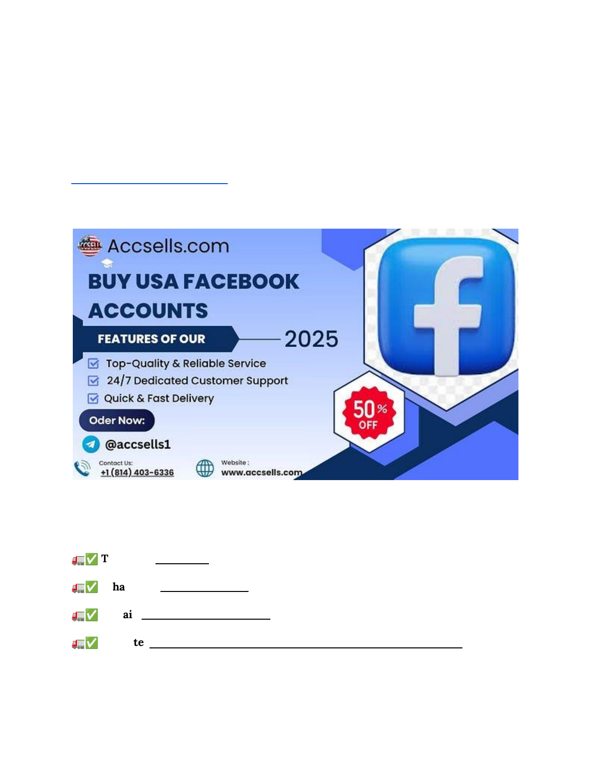 Top 10 Sites to Buy USA Facebook Ads Accounts- Fast and Safely Buying USA Facebook accounts can give marketers quick access to a U.S. audience without starting from zero. This guide explains everything — from understanding risks to best practices — so you can make informed decisions. If You want to more information just contact now 24 Hours Reply/ Contact : – 🚛✅ Telegram: @accsells1 🚛✅ WhatsApp: +1 (814) 403–6336 🚛✅ E-mail: infoaccsells0@gmail.com 🚛✅ WebSite: https://accsells.com/product/buy-usa-facebook-accounts/ 2. Why Buy USA Facebook Accounts? https://accsells.com/product/buy-usa-facebook-accounts/ https://t.me/accsells1 https://api.whatsapp.com/send?phone=18144036336 mailto:infoaccsells0@gmail.com https://accsells.com/product/buy-usa-facebook-accounts/ 2.1. Instant U.S. Audience Access Why wait months to build a following? Purchasing accounts lets you tap into an existing U.S. user base immediately. 2.2. Niche Targeting Made Easy Many aged accounts have established interests. You can pick accounts aligned with your niche for better engagement. 3. Understanding Facebook Account Policies 3.1. Facebook’s Terms of Service Facebook forbids buying or selling accounts. Violations can lead to permanent bans. 3.2. Risks of Policy Violations Account bans, ad restrictions, and legal action are possible if caught. 4. Types of USA Facebook Accounts Available 4.1. Aged vs. New Accounts Aged accounts (1+ year old) often have better trust signals. New accounts are cheaper but riskier. 4.2. Verified vs. Unverified Accounts Verified accounts carry extra credibility but cost more. 4.2.1. Blue Check Verification Blue checks indicate high authenticity and can boost ad reach. 4.2.2. Phone-Verified vs. Email-Verified Phone-verified accounts are generally more secure than email-only ones. 5. Where to Buy USA Facebook Accounts 5.1. Online Marketplaces Sites like specialized forums or gray-market shops list accounts with varying quality. 5.2. Private Sellers Social media pros sometimes sell directly via encrypted channels. 5.3. Social Media Groups Facebook and Telegram groups can offer deals, but vet sellers carefully. 6. How to Choose a Reliable Seller 6.1. Seller Reputation Check reviews, ratings, and past transaction feedback. 6.2. Account Quality Checks Ask for screenshots of the account’s activity, friend list, and login history. 6.3. Payment and Refund Policies Use escrow services or platforms offering chargeback protection. 7. Step-by-Step Purchase Process 7.1. Research Options List multiple sellers to compare pricing and quality. 7.2. Verifying Account Legitimacy Request fresh login tests and check device login history. 7.3. Secure Payment Methods Opt for PayPal Goods & Services or escrow. Avoid direct wire transfers. 7.4. Account Transfer and Login Immediately change passwords, recovery info, and enable two-factor authentication. 8. Best Practices for Managing Purchased Accounts 8.1. Profile Customization Update profile pictures, cover photos, and bio to match your brand. 8.2. Gradual Engagement Strategy Begin with light posting and interacting to mimic organic behavior. 8.3. Avoiding Suspicious Activity Don’t mass-add friends or post too frequently; mimic normal user patterns. 9. Legal and Ethical Considerations 9.1. Compliance with Local Laws Ensure your marketing practices adhere to U.S. regulations on data and privacy. 9.2. Ethical Marketing Guidelines Be transparent in ad disclosures and avoid deceptive practices. 10. Alternative Strategies 10.1. Organic Page Building Invest in quality content, community engagement, and targeted ads. 10.2. Facebook Ads Campaigns Use Facebook’s ad platform to reach U.S. audiences legally and scalably. 11. Conclusion Purchasing USA Facebook accounts can jumpstart your marketing, but it carries risks. Following best practices, vetting sellers, and managing accounts responsibly can help you achieve reliable results while minimizing bans or penalties. 12. FAQs Q1: Is buying USA Facebook accounts legal? Buying accounts violates Facebook’s terms but isn’t illegal under U.S. law unless used for fraud. Q2: How much does a verified USA account cost? Prices range from $30–$200 depending on age, verification, and activity. Q3: Can I recover a banned purchased account? Rarely; Facebook often denies appeals for accounts bought off-platform. Q4: What’s the safest payment method? Escrow services or PayPal Goods & Services offer buyer protection. Q5: Are there risks beyond bans? https://accsells.com/product/buy-usa-facebook-accounts/ https://accsells.com/product/buy-usa-facebook-accounts/ If You want to more information just contact now 24 Hours Reply/ Contact : – 🚛✅ Telegram: @accsells1 🚛✅ WhatsApp: +1 (814) 403–6336 🚛✅ E-mail: infoaccsells0@gmail.com 🚛✅ WebSite:https://accsells.com/product/buy-usa-facebook-accounts/ https://t.me/accsells1 https://api.whatsapp.com/send?phone=18144036336 https://accsells.com/product/buy-usa-facebook-accounts/ Top 10 Sites to Buy USA Facebook Ads Accounts- Fast and Safely If You want to more information just contact now 2. Why Buy USA Facebook Accounts? 3. Understanding Facebook Account Policies 4. Types of USA Facebook Accounts Available 5. Where to Buy USA Facebook Accounts 6. How to Choose a Reliable Seller 7. Step-by-Step Purchase Process 8. Best Practices for Managing Purchased Accounts 9. Legal and Ethical Considerations 11. Conclusion 12. FAQs If You want to more information just contact now