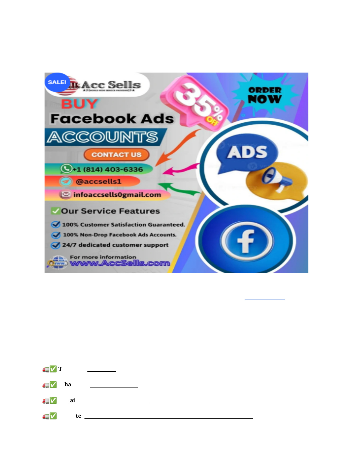 Buy Facebook Ads Accounts: A Step-By-Step Guide That is why it is essential to get noticed online with the help of SEO services formed by our company. One of the most efficient techniques for doing this is through Facebook ads. However, some of you may not be aware that it is possible to Buy Facebook ads account to make your marketing agencies’ job easier. Do you want to know why this may be a turning point for your online business? If You want to more information just contact now 24 Hours Reply/ Contact : – 🚛✅ Telegram: @accsells1 🚛✅ WhatsApp: +1 (814) 403–6336 🚛✅ E-mail: infoaccsells0@gmail.com 🚛✅ WebSite: https://accsells.com/product/buy-facebook-ads-accounts/ https://accsells.com/product/buy-facebook-ads-accounts/ https://t.me/accsells1 https://api.whatsapp.com/send?phone=18144036336 mailto:infoaccsells0@gmail.com https://accsells.com/product/buy-facebook-ads-accounts/ First, when you decide to buy Facebook ads account, you get access to the best advertising tool. This means you can start selling your products or services immediately, without creating a new account, from the ground up. Moreover, the benefits of such accounts are that such accounts have a relatively good performance history in most cases. This would make your ads more effective and gain maximum visibility among the broad masses. When you decide to buy Facebook ads account, you are paying for advertising legacy. To a small business or a startup, time is equivalent to money. Therefore, buying Facebook ads account is a strategic investment because it allows you to avoid spending time earning credibility from a newly bought account. This makes it possible for you to concentrate on the things that can count — expanding your enterprise. It is also important to note that buy Facebook ad account allows you to work with a larger budget. This means you can fund more extensive campaigns and, thus, reach more people. But there are things that you need to consider when you decide to Buy Facebook ads account. As with any advice, ensure that it is from a reliable source so that you don’t experience any problems later. This means that if you wish to increase your online business rapidly, you should buy Facebook advertising account. They can help you save time, guarantee better ad performance indicators, and reach more potentially interested buyers in a shorter period. Knowing and keeping up with every possible edge in today’s fast-paced online society is essential. So, considering everything, it may be beneficial to try to buy Facebook ads account and find out how this can benefit your enterprise. The Importance of Buy Facebook Ads Account for Any Online Business Do you have any problems with your business site, or do you just need strategies to make your business unique and outstanding on the World Wide Web? Thus, Facebook ads are a good tool to achieve this. But here’s a tip: You can buy Facebook ads account here to take your company to the next level. Alright, let me explain what is so important about it. When you buy Facebook ads account, what you get is a ready means through which you can advertise. This means you can go out and start presenting your ad to people instantly. Transaction fees: It is favorable since you do not need to wait to open a new account, which may take considerable time. The other advantage of buying a Facebook ads account is that these accounts tend to have good standing. This can make your ad more effective and consequently increase its viewability to the public. It’s like having an advantage in a race to get customers. https://accsells.com/product/buy-facebook-ads-accounts/ https://accsells.com/product/buy-facebook-ads-accounts/ As for small businesses, time is precious. However, when you buy Facebook ads account, you know you do not have to spend time building up a new account. This lets you focus on making your business grow instead. Buy Facebook Ads Account When you buy Facebook ads account, you spend more on ads. This means you can run more extensive ad campaigns and reach more people who want to buy from you. But be careful when you decide to buy Facebook ads account. Make sure to get it from a reputable source. In this case, you will realize that future issues won’t be present, and you will be fine. If you want your online business to grow big in the shortest time possible, consider buying a Facebook ads account. It can help reduce the time it takes to get the ads and make them work for you by finding customers faster. As everyone knows, the internet is a very dynamic environment, and anything that could help will be well received. Therefore, why not investigate buying a Facebook ads account? It could be what your business needs to grow bigger and faster. How to Buy a Facebook Ads Account? You may wonder how to buy a Facebook ads account. It is easier than you imagine! It may be better to break it down into stages. First of all, a good seller should be involved in the buying process. Buy from individuals or companies that normally have a good reputation among other consumers. This is important because you want to know you’re getting a legitimate account after paying for it. Next, if you are preparing to buy a Facebook ads account, you can contact the seller and ask them about some aspects of the account. How old is it? Has it been used in advertising back then? These are the factors that influence the effectiveness of the account when performing tasks. If you want to acquire a new Facebook ads account, you need to know what kind of account you buy. Two types of accounts depend on how much a seller can spend. Consider how many adverts you will spend on and identify the correct account to register with. Should you ever have to buy a Facebook ads account, you should be prepared to do it safely. Ensure that you use a secure payment method to get some protection. Some provide PayPal or credit cards as payment options, which are more reliable than the ones mentione