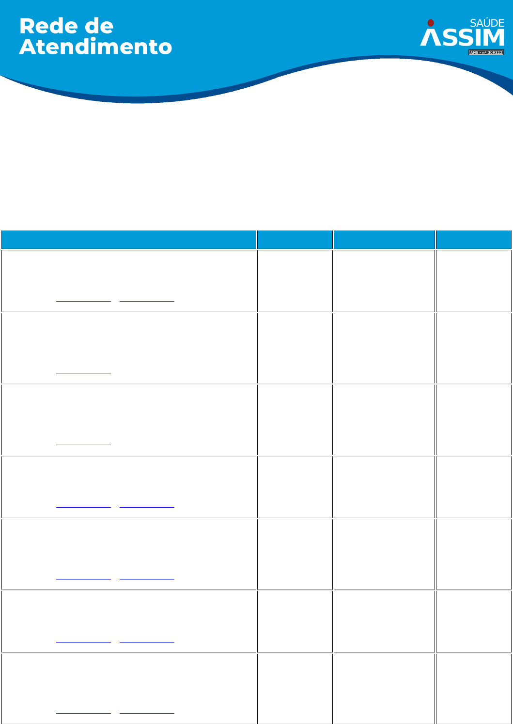 Rede: Fidelizada Tipo: Consultório Cidade: Rio De Janeiro Bairro: Todos Especialidade: Oftalmologia O Plano escolhido foi: A60 QP COPART TOTAL Resultado da Busca - Registros encontrados: 101 Estabelecimento Tipo de Rede Bairro Cidade ASSIM - CENTRO MEDICO TIJUCA ASSIM MEDICAL TIJUCA(CNPJ 33.710.096/0001-30) Rua Araujo Pena, 62 / 68, Tijuca Telefone(s): (21) 2102-5454 / (21) 3978-6500 Fidelizada Tijuca Rio De Janeiro HOSPITAL SAO MATHEUS AMA ASSISTENCIA MEDICA ALTERNATIVA LTDA(CNPJ 00.937.991/0002-14) Rua Silva Cardoso, 689, Bangu Telefone(s): (21) 2156-5480 Fidelizada Bangu Rio De Janeiro AMEP ASSISTENCIA MEDICA ESPECIALIZADA LT AMEP ASSISTENCIA MEDICA ESPECIALIZADA LT(CNPJ 02.849.441/0002-79) Av Nelson Cardoso, 864, Tanque Telefone(s): (21) 3910-3910 Fidelizada Tanque Rio De Janeiro ASSIM MEDICAL LTDA ASSIM MEDICAL LTDA(CNPJ 10.497.000/0004-45) Rua Dom Marcos Barbosa,2/lj I/sl201, Cidade Nova Telefone(s): (21) 2102-5454 / (21) 3803-9243 Fidelizada Cidade Nova Rio De Janeiro ASSIM VILA VALQUEIRE CAV-CENTRO AMBULATORIAL VALQUEIRE LTDA E(CNPJ 06.265.008/0001-66) Av Jambeiro, 72, Vila Valqueire Telefone(s): (21) 2102-5454 / (21) 2453-3434 Fidelizada Vila Valqueire Rio De Janeiro ASSIM ROCHA MIRANDA CLIN MED DR SAMUEL LTDA(CNPJ 74.051.343/0001-11) Rua Dos Rubis, 199, Rocha Miranda Telefone(s): (21) 2102-5454 / (21) 2472-0359 Fidelizada Rocha Miranda Rio De Janeiro CLINICA CIRURGICA SANTA BARBARA CLINICA CIRURGICA SANTA BARBARA LTDA(CNPJ 27.002.211/0001-10) Rua Paulo Barreto, 41/51, Botafogo Telefone(s): (21) 3503-1616 / (21) 2539-2447 Fidelizada Botafogo Rio De Janeiro tel:+552121025454 tel:+552139786500 tel:+552121565480 tel:+552139103910 tel:+552121025454 tel:+552138039243 tel:+552121025454 tel:+552124533434 tel:+552121025454 tel:+552124720359 tel:+552135031616 tel:+552125392447 Estabelecimento Tipo de Rede Bairro Cidade CLINICA ENIO SERRA CLINICA ENIO SERRA LTDA(CNPJ 42.152.439/0001-80) Rua Soares Cabral, 36, Laranjeiras Telefone(s): (21) 2125-6911 / (21) 2125-6912 Fidelizada Laranjeiras Rio De Janeiro CLINICA MEDICA NEMER CHIDID CLINICA MEDICA NEMER CHIDID LTDA(CNPJ 09.157.913/0001-90) Rua Dezenove De Fevereiro, 126, Botafogo Telefone(s): (21) 3503-1616 / (21) 2136-8686 Fidelizada Botafogo Rio De Janeiro ASSIM BARRA CLINICA MULHER E SAUDE S/C LTDA(CNPJ 68.711.167/0001-02) Av Das Americas, 1650-bl 1, Barra Da Tijuca Telefone(s): (21) 2102-5454 / (21) 2179-0450 Fidelizada Barra Da Tijuca Rio De Janeiro CLINICAS REUNIDAS SAO VICTOR CLINICAS REUNIDAS SAO VICTOR S/A(CNPJ 33.514.852/0001-56) Rua Carvalho Alvim, 261, Tijuca Telefone(s): (21) 2142-7150 / (21) 2142-7171 Fidelizada Tijuca Rio De Janeiro HOSPITAL DE CLINICAS ENGENHO DE DENTRO HOSP DE CLINICAS ENGENHO DE DENTRO LTDA(CNPJ 16.666.310/0001-80) Rua Jose Dos Reis, 41 - Parte, Engenho De Dentro Telefone(s): (21) 2159-3000 / (21) 2597-8047 Fidelizada Engenho De Dentro Rio De Janeiro ASSIM BONSUCESSO HOSP DE CLINICAS SANTA CRUZ LTDA(CNPJ 08.370.626/0004-44) Av Itaoca, 119, Bonsucesso Telefone(s): (21) 2102-5454 / (21) 3871-6350 Fidelizada Bonsucesso Rio De Janeiro ASSIM DEL CASTILHO HOSP DE CLINICAS SANTA CRUZ LTDA(CNPJ 08.370.626/0003-63) Av Dom Helder Camara, 5597, Del Castilho Telefone(s): (21) 2102-5454 / (21) 2179-0379 Fidelizada Del Castilho Rio De Janeiro HOSPITAL MEMORIAL SANTA CRUZ HOSPITAL DE CLINICAS DE SANTA CRUZ LTDA(CNPJ 08.370.626/0001-00) Rua Felipe Cardoso, 759, Santa Cruz Telefone(s): (21) 2102-5454 / (21) 2103-9195 Fidelizada Santa Cruz Rio De Janeiro ASSIM CAMPO GRANDE HOSPITAL DE CLINICAS SANTA CRUZ LTDA(CNPJ 08.370.626/0005-25) Avenida Cesario De Melo, 2115, Campo Grande Telefone(s): (21) 2102-5454 / (21) 2414-3450 Fidelizada Campo Grande Rio De Janeiro ASSIM SANTA CRUZ HOSPITAL DE CLINICAS SANTA CRUZ LTDA(CNPJ 08.370.626/0002-82) Rua Visconde De Sepetiba, 13, Santa Cruz Telefone(s): (21) 2102-5454 / (21) 3541-0808 Fidelizada Santa Cruz Rio De Janeiro tel:+552121256911 tel:+552121256912 tel:+552135031616 tel:+552121368686 tel:+552121025454 tel:+552121790450 tel:+552121427150 tel:+552121427171 tel:+552121593000 tel:+552125978047 tel:+552121025454 tel:+552138716350 tel:+552121025454 tel:+552121790379 tel:+552121025454 tel:+552121039195 tel:+552121025454 tel:+552124143450 tel:+552121025454 tel:+552135410808 Estabelecimento Tipo de Rede Bairro Cidade CENTRO HOSPITALAR AMEP JACAREPAGUA HSJ - HOSPITAL SEMIU DE JACAREPAGUA LTDA(CNPJ 14.357.664/0001-17) Est Mal Miguel Salazar M De Morais, 254, Jacarepagua Telefone(s): (21) 3910-3910 Fidelizada Jacarepagua Rio De Janeiro ASSIM - CENTRO MEDICO CAMPO GRANDE ASSIM MEDICAL(CNPJ 33.710.096/0017-06) Rua Albertina, 5, Campo Grande Telefone(s): (21) 2102-5454 / (21) 2413-9240 Fidelizada Campo Grande Rio De Janeiro ASSIM - CENTRO MEDICO COPACABANA ASSIM MEDICAL(CNPJ 33.710.096/0004-83) Rua Siqueira Campos, 121 / Sl 901/904,402,503,601,701 A 704, Copacabana Telefone(s): (21) 2102-5454 / (21) 2257-1795 Fidelizada Copacabana Rio De Janeiro URMI - URGENCIAS MEDICAS INTEGRADAS URMI - URGENCIAS MEDICAS INTEGRADAS LTDA(CNPJ 11.453.183/0001-17) Rua Araguaia, 13, Jacarepagua Telefone(s): (21) 3910-3910 Fidelizada Jacarepagua Rio De Janeiro URMI - URGENCIAS MEDICAS INTEGRADAS URMI - URGENCIAS MEDICAS INTEGRADAS LTDA(CNPJ 11.453.183/0003-89) Rua Andrade Figueira, 167 Parte, Madureira Telefone(s): (21) 3910-3910 / (21) 3877-9000 Fidelizada Madureira Rio De Janeiro CLINICA OFTALMOLOGICA REALENGO LTDA ALINE CAMARGO GUIMARAES DESIDERATI(CRM 52884880) Av. De Santa Cruz,1401/203, Realengo Telefone(s): (21) 3309-4547 Credenciada Realengo Rio De Janeiro CLINICA OFTALMOLOGICA REALENGO LTDA ALINE FIGUEIREDO VIEIRA MORAES(CRM 52884901) Av De Santa Cruz, 1401 / 203, Realengo Telefone(s): (21) 3309-4547 Credenciada Realengo Rio De Janeiro AMERICAS OFTALMOCENTER AMERICAS OFTALMOCENTER SERVICOS OFTALMOL(CNPJ 11.271.114/0002-73) Av Pastor Martin Luther King Jr, 126/bl9/sl1312/tor3, Del Castilho Telefone(s): (21) 2496-1161 Credenciada Del Castilho Rio De Janeiro COIMBRA ASSISTENCIA MEDICA ANA ELISA DE CASTRO COIM