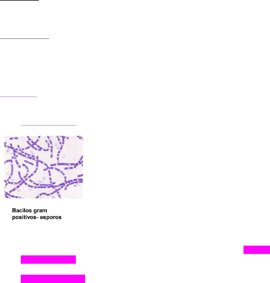 MICROBIOLOGIA NP2 BACILOS GRAM POSITIVOS Formadores de esporos Bacillus spp · Bacillus cereus: intoxicação alimentar · Bacillus anthracis: zoonose Clostridium spp · Clostridium perfringens: infecções teciduais e intoxicação alimentar · Clostridium difficile: colite · Clostridium tetani: tétano · Clostridium botulinum: botulismo. Bacillus spp 60 espécies, maioria saprófitas · Bacillus anthracis · importância histórica: primeira bactéria a que foi associada uma doença, em 1877 por Koch. · Produzem endósporos, ubíquos aeróbicos ou anaeróbios facultativos, Catalase positiva (maioria). Termófilos (75°C) e psicrófilos(5-8°C). Sobrevivem em alterações extremas de pH (pH 2 - 10) · Doenças associadas: Antraz cutâneo: pústulas malignas (mais comum - 95%); Antraz pulmonar: inflamação de linfonodos (mais fatal); Forma gastrintestinal: incomum, ingestão de esporos · Zoonose: ovelhas, cabras, cavalos · Humanos: inoculação subcutânea ou inalação Diagnóstico laboratorial: · Material: secreções de lesões, secreções pulmonares, sangue · Microscopia: BGP com endósporos, crescimento em ágar sangue, imóvel. Tratamento: Penicilinas, ciprofloxacina · Bacillus cereus Características Gerais e morfologia: · Bacilos gram positivos grande, aeróbio ou anaeróbio facultativo com flagelos e esporos centrais e subterminais. · Habitat: Solo, vegetais e alimentos processados Características bioquímicas · Aeróbio, anaeróbio facultativo; · Fermenta vários carboidratos · Catalase positiva; · Todas as cepas são produtoras de hemolisina · Temperatura ótima para crescimento: 28 a 35 °C Características da Doença · A- Síndrome diarréica: Período de incubação varia de 8 a 16 h. · Sintomas: diarréia intensa, dores abdominais, náuseas e vômitos (raro). Duração de 12 a 24 h. · B- Síndrome emética: de 1 a 5 h. · Sintomas: vômitos, náuseas e mal-estar geral · Alimentos: farináceos, principalmente arroz. Síndrome do restaurante chinês Clostridium spp Características Gerais: São bacilos gram positivos que contêm endósporos que geralmente deformam a célula, possibilitando maior resistência ao calor e muitos compostos químicos. · Bastonetes gram positivos. · Anaeróbios. · Móveis. · Habitat natural: Solo ou trato intestinal de animais e seres humanos, onde vivem como saprófitas. Morfologia e identificação: · Cultura: Só crescem em condições anaeróbias: Tubos de cultura ou placas de ágar num recipiente fechado, com remoção do ar. Clostridium botulinum · Neurotoxina (um dos venenos mais potentes conhecido): Liberação durante crescimento e autólise. · Existem 7 variedades antigênicas ( A-G ). · São destruídas pelo calor a 100 ºC, durante 20 minutos. · Doses diminutas: uso terapêutico (botox). (Blefaroespasmo) Patogenia: Ingestão de alimentos contaminados, Germinação e produção de toxina, bloqueia a liberação de acetilcolina, Paralisia flácida. A toxina botulínica bloqueia a liberação de Acetilcolina, inibindo a contração Clostridium tetani Muito comum em solo contaminado com fezes de animais. Neurotoxina: tetanospamina. · Responsável pelo TÉTANO. · Distribuição mundial. · Encontrado no solo e nas fezes de cavalos e outros animais. · Foco típico: farpa de madeira · Produz neurotoxina, a tetanospasmina. · Morte: paralisia mm. Respiratórios · Tratamento: Antitoxina (soro antitetânico) · Sensibilidade a cefalosporinas, metronidazol, penicilinas · Diagnóstico: clínico, bacterioscopia, cultura Patogenia: A toxina tetânica se liga a interneurônios inibitórios, impedindo a liberação de Glicina e o relaxamento muscular Clostridium perfringens: Gangrena gasosa. · Fermentação de carboidratos no tecido, produção de gases que incham o tecido. · Toxinas: Toxina teta exerce efeitos hemolíticos e necrotizantes: gangrena · Enterotoxina promove hipersecreção acentuada no jejuno e íleo, com perda de líquido e eletrólitos. (diarreia) Tratamento: · Remoção do tecido necrosado · Exposição ao oxigênio · Amputação Não formadores de esporo · Listeria spp: Listeriose: septicemia e meningite, 10% população: portadores · Corynebacterium spp : Corynebacterium diphtheriae Listeria spp · Cocobacilo Gram-positivo (0,5-2m por 0,4-05 m) · Intracelular · Anaeróbio facultativo · Oxidase - Catalase + · Não esporulado · Móvel · Esculina + Taxa de mortalidade na listeriose · Meningite - superior a 70%; · Septicemia - 50% · Infecção perinatal/neonatal maior que 80%. · Em infecções durante a gestação a mãe normalmente sobrevive. Tratamento e controle: · Penicilina (ampicilina) só ou em combinação com gentamicina tem mostrado efetividade. · Trimetoprim+sulfametoxazol para alérgicos a penicilina · Pode ser usada a eritromicina ou tetraciclina. Corynebacterium spp Corynebacterium diphtheriae · Habitat: garganta e nasofaringe · Produção de toxina: ação em coração e nervos periféricos · Significado clínico: infecção trato respiratório superior: Formação de pseudomembrana · Diagnóstico: Cultura · Imunização: DTP (não confere imunização definitiva) · Tratamento: Anti toxina, Antibióticos: penicilina ou eritromicina. DIAGNÓSTICO LABORATORIAL DAS INFECÇÕES FÚNGICAS 12 1-Fungos levedureformes: crescem com aspecto cremoso, viscoso 2-Fungos filamentosos ou bolores: crescem com aspecto de veludo ou algodão Micoses superficiais Definição: São afecções produzidas por fungos, limitadas às camadas superficiais queratinizadas ou semiqueratinizadas da pele, aos pêlos e unhas, sem lesar o tecido subcutâneo, ossos, articulações e órgãos internos. Fatores que contribuem para o aparecimento de Micoses superfíciais: · Endógenos (diabetes, AIDS imunodeprimido, doenças sistêmicas) · Exógenos (umidade, má higiene, distrofias). Principais tipos: · Pitiríase Versicolor: descoloração da pele. · Tinea nigra: manchas pigmentadas castanh