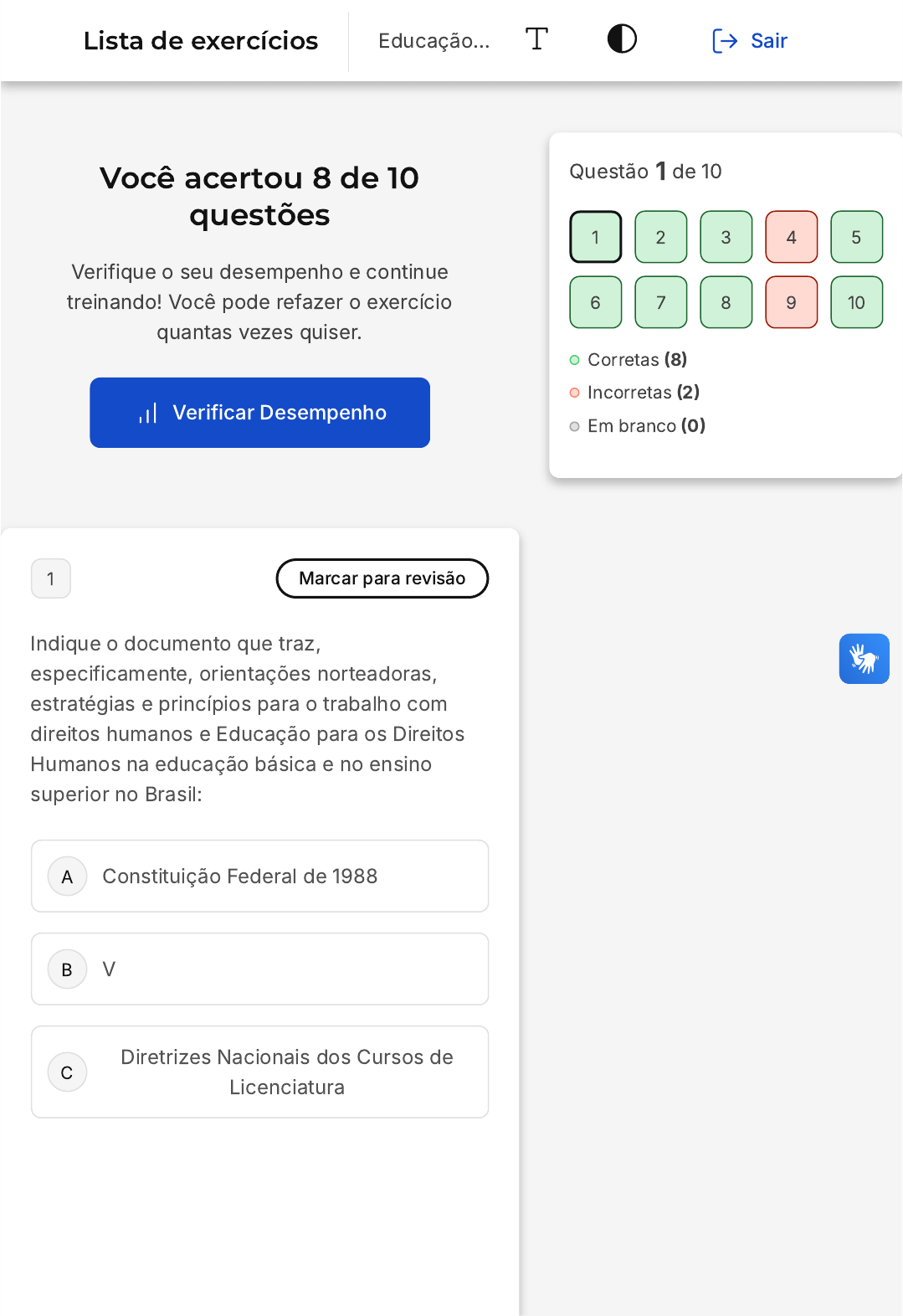 Você acertou 8 de 10 questões Verifique o seu desempenho e continue treinando! Você pode refazer o exercício quantas vezes quiser. Verificar Desempenho A B C 1 Marcar para revisão Indique o documento que traz, especificamente, orientações norteadoras, estratégias e princípios para o trabalho com direitos humanos e Educação para os Direitos Humanos na educação básica e no ensino superior no Brasil: Constituição Federal de 1988 V Diretrizes Nacionais dos Cursos de Licenciatura Questão 1 de 10 Corretas (8) Incorretas (2) Em branco (0) 1 2 3 4 5 6 7 8 9 10 Lista de exercícios Educação… Sair D E Diretrizes Nacionais para a Educação em Direitos Humanos Diretrizes Nacionais do Curso de Pedagogia Resposta correta Parabéns, você selecionou a alternativa correta. Confira o gabarito comentado! Gabarito Comentado A resposta certa é: Diretrizes Nacionais para a Educação em Direitos Humanos 2 Marcar para revisão (IF-PR, Professor-Pedagogia, 2019 - adaptado). A Educação em Direitos Humanos parte de três pontos essenciais. O primeiro é uma educação de natureza permanente, continuada e global. O segundo é uma educação necessariamente voltada para a mudança. O terceiro é uma inculcação de valores, para atingir corações e mentes, e não apenas instrução, meramente transmissora de conhecimentos. Considerando o texto apresentado, assinale a alternativa correta: A B C D E A Educação em Direitos Humanos é essencialmente uma disciplina. A Educação em Direitos Humanos é essencialmente a formação de uma cultura de respeito à dignidade humana. A Educação em Direitos Humanos é essencialmente a formação de uma cultura interdisciplinar. A Educação em Direitos Humanos é essencialmente a formação de uma cultura de respeito a quem me respeita. A Educação em Direitos Humanos é essencialmente a formação assistencial. Resposta correta Parabéns, você selecionou a alternativa correta. Confira o gabarito comentado! Gabarito Comentado A resposta certa é: A Educação em Direitos Humanos é essencialmente a formação de uma cultura de respeito à dignidade humana. 3 Marcar para revisão A B C D E Sobre a história dos Direitos Humanos, é possível afirmar que: A discussão sobre Direitos Humanos vem desde a Antiguidade, quando os gregos se reuniam nos templos religiosos para discutir os direitos dos cidadãos; Pouco conhecemos sobre os antigos Direitos Humanos, pois as primeiras sociedades que discutiram o assunto não deixaram registros escritos sobre isso; Não é possível falar sobre uma história dos Direitos Humanos, pois, até a criação das Nações Unidas, não havia uma preocupação sobre o assunto; O Iluminismo foi um movimento fundamental para iniciar a confecção das primeiras declarações, pois já defendiam conceitos como a liberdade e a igualdade. Ele é uma invenção do pós-Guerra Mundial como resultado das atrocidades nazistas. Resposta correta Parabéns, você selecionou a alternativa correta. Confira o gabarito comentado! Gabarito Comentado A B C A alternativa correta é: O Iluminismo, movimento intelectual e filosófico que ocorreu na Europa durante o século XVIII, foi fundamental para a concepção dos Direitos Humanos como os conhecemos hoje. Os pensadores iluministas defendiam conceitos como liberdade, igualdade e fraternidade, que são a base dos Direitos Humanos. Esses ideais foram posteriormente incorporados nas primeiras declarações de Direitos Humanos, como a Declaração dos Direitos do Homem e do Cidadão, de 1789, na França. 4 Marcar para revisão Sobre a teoria das gerações dos Direitos Humanos, é correto afirmar que: A primeira geração corresponde ao momento em que os Direitos Humanos surgiram como um contraponto aos direitos naturais; A segunda geração reafirmou as ideias da primeira geração e procurou construir a ideia de igualdade entre todos os seres humanos; A terceira geração corresponde aos direitos sobre indivíduos e busca a garantia da propriedade privada e dos investimentos financeiros; D E A quarta geração é a última e procura debater sobre direitos ambientais, que são, atualmente, a maior preocupação do mundo; A primeira geração dos Direitos Humanos defendia o princípio religioso como fundamento da moral humana. Resposta incorreta Opa! A alternativa correta é a letra B. Confira o gabarito comentado! Gabarito Comentado A alternativa correta é a B. A segunda geração dos Direitos Humanos realmente reafirmou as ideias da primeira geração, que se concentrava em direitos civis e políticos, e expandiu o escopo para incluir direitos econômicos, sociais e culturais. Essa expansão foi motivada pela necessidade de promover a igualdade entre todos os seres humanos, independentemente de sua origem, raça, gênero, religião ou condição econômica. Portanto, a segunda geração dos Direitos Humanos é caracterizada pela busca da igualdade e da justiça social. 5 Marcar para revisão Sobre a teoria escrita por Hannah Arendt de que os Direitos Humanos teriam sofrido uma A B C D E ruptura e que precisavam ser reconstruídos, podemos afirmar que: A ruptura aconteceu unicamente por conta das ações fascistas de alguns países europeus e, uma vez que esses regimes fossem derrubados, os Direitos Humanos estariam reconstruídos; Os Direitos Humanos se romperam durante a Segunda Guerra Mundial, e a Guerra Fria decretou que a sociedade não seria capaz de reconstruí-los; A ruptura dos Direitos Humanos aconteceu com as políticas imperialistas e fascistas da Europa, e a sua reconstrução precisa garantir que todos acessem seus direitos sem nenhuma restrição; As políticas dos Estados europeus que expulsaram milhares de cidadãos dos seus territórios foram as responsáveis pela ruptura dos Direitos Humanos, e isso deve ser revertido com as políticas de imigração. A autora judia foi panfletária no exercício de condenação do nazismo na Segunda Guerra Mundial. Resposta correta Para