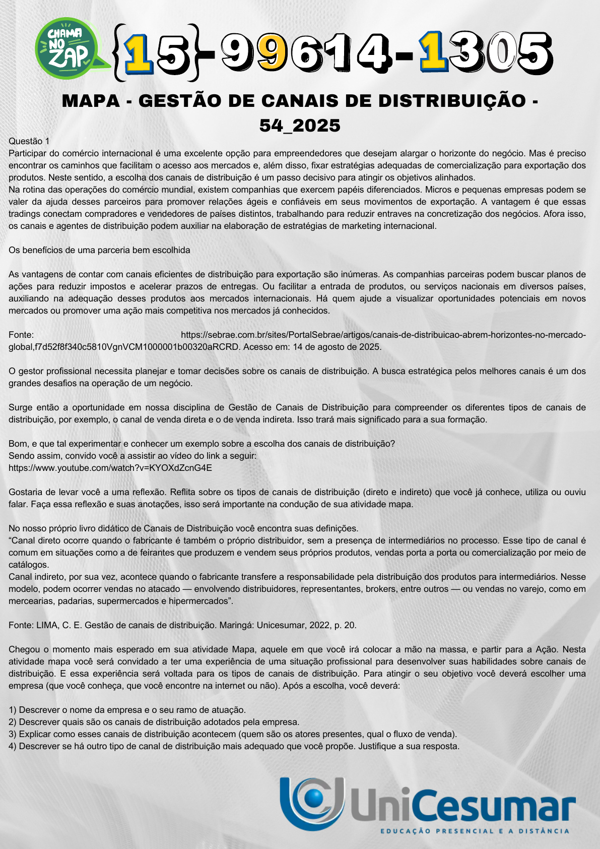 atividade mapa você será convidado a ter uma experiência de uma situação profissional para desenvolver suas habilidades sobre canais de
