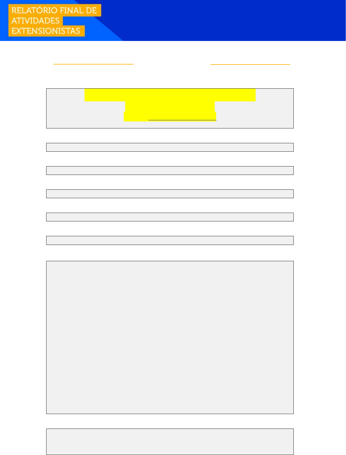 DADOS DO ALUNO Aluno: [Nome completo] Caso tenha interesse entre em contato: WhatsApp: 73 9 9912 5456 E-mail: raildoyy@gmail.com RA: [Número do RA do aluno] POLO / UNIDADE: CURSO: ENFERMAGEM - BACHARELADO COMPONENTE CURRICULAR: PROJETO DE EXTENSÃO III - ENFERMAGEM PROGRAMA DE EXTENSÃO: PROGRAMA DE SUSTENTABILIDADE. FINALIDADE E MOTIVAÇÃO: O programa extensionista voltado as ações de Sustentabilidade do curso de Enfermagem possui a finalidade de apoiar a comunidade por meio da disseminação do conhecimento adquirido no curso, priorizando o cuidado e compreensão do meio ambiente. Tais ações poderão reduzir impactos socioambientais negativos e criar uma cultura regenerativa para gerar impactos positivos que irão refletir no meio ambiente, que são importantes para possibilitar uma continuidade do uso de recursos naturais de forma sustentável. Ao identificar as problemáticas ambientais da comunidade os alunos terão a motivação para efetuar as ações de apoio relacionadas ao curso, pelas quais poderão ser desenvolvidas competências técnicas e soft skills específicas. Os conteúdos programáticos sugeridos para correlacionar as ações são: Saúde pública, estratégia da saúde da família, gestão em saúde, saúde do trabalhador, saúde do adulto, da mulher, da criança, do adolescente e do idoso. Os locais que poderão contemplar esse projeto são: Parcerias com a Prefeitura e atuação em Unidades Básicas de Saúde; Associações de Bairros; Clínicas de Saúde Públicas e Privadas; Hospitais; Centros de Saúde; Spas; Salões de Beleza; Centros Estéticos; Casas de Repouso; Instituições de Longa Permanência para Idosos; Creches; Templos Religiosos; Escolas; ONGs. COMPETÊNCIAS: I - Desenvolver ações, considerando as especificidades regionais e o perfil epidemiológico de saúde relacionados a promoção, prevenção, proteção, tratamento e reabilitação em saúde ao indivíduo, à família, ao grupo e à comunidade; II - Prestar cuidado de Enfermagem em conformidade com a legislação vigente relacionada ao processo de trabalho, aos princípios, às diretrizes e às políticas do SUS; 1 III - Desenvolver o cuidado de Enfermagem pautado nos programas de assistência integral à saúde da criança, do adolescente, do adulto, do idoso, da mulher, do homem e do trabalhador, considerando suas vulnerabilidades. PERFIL DO EGRESSO: O perfil do egresso do curso de Enfermagem idealizado pela IES proporciona a formação de um profissional ético, crítico, reflexivo, ciente de sua responsabilidade social, O programa de Sustentabilidade permitirá o desenvolvimento de habilidades como Planejar, organizar, supervisionar e executar a assistência de Enfermagem ao doente, à família e à comunidade; Promover, prevenir, recuperar e reabilitar o a saúde do indivíduo, primando pelos princípios de segurança. SOFT SKILLS (COMPETÊNCIAS SOCIOEMOCIONAIS): Criatividade e inovação Tomada de Decisão Inteligência Emocional OBJETIVOS DE APRENDIZAGEM: O objetivo da extensão universitária em Programa de Sustentabilidade do curso de Enfermagem, está relacionado a transferir para a sociedade os conhecimentos desenvolvidos no curso mediante projetos e ações de apoio na resolução de diversas problemáticas, e com isso a possibilidade de potencializar a geração de conhecimentos aplicados, utilizados na resolução dos problemas relacionados ao meio ambiente com interação aos conteúdos específicos de radiologia estudados no curso, trazendo mais elementos para o desenvolvimento das habilitados do egresso. CONTEÚDOS: I - Indicadores de saúde; II - Epidemiologia em saúde; III - Sistemas de informação em saúde e comunicação em saúde; IV - Diagnóstico situacional e territorialização; VI - Linhas do cuidado (da criança, do adolescente, da mulher, do homem, do adulto, do i INDICAÇÕES BIBLIOGRÁFICAS: PAVANI, Kamile; HAUBERT, Márcio. Introdução à profissão: enfermagem. Porto Alegre: SAGAH, 2017. NASCIMENTO, Alexandra Bulgarelli do. Conhecimento e métodos do cuidar em enfermagem. Porto Alegre: SAGAH, 2019. SOLHA, Raphaela Karla de Toledo. Saúde Coletiva para iniciantes: políticas e praticas profissionais. 2. ed. São Paulo: Érica, 2014. RELATÓRIO FINAL Aluno e Aluna, após realizar suas atividades de extensão, é necessário que você o formalize, enviando esse Relatório Final para ser avaliado junto ao seu Ambiente Virtual (AVA) e também para você poder comprovar sua atuação. Para o preenchimento, busque as anotações junto ao TEMPLATE PCDA para auxiliar na apresentação das atividades desenvolvidas. Todos os campos são de preenchimento obrigatório! DESCRIÇÃO DA AÇÃO COM RESULTADOS ALCANÇADOS Metas dos Objetivos de Desenvolvimento Sustentável (ODS) aderentes a este projeto: CAMPO OBRIGATÓRIO – busque no seu Template PDCA quais Metas você selecionou como aderentes ao seu projeto, conforme cada Objetivo de Desenvolvimento Sustentável (ODS) da Organização das Nações Unidas (ONU) que você explorou no seu planejamento. Liste as Metas selecionadas (pelo menos uma opção): Local de realização da atividade extensionista: Durante a ação: Caso necessário, houve mudança de estratégia para alcançar o resultado: Resultado da ação: Conclusão: Depoimentos (se houver): RELATE SUA PERCEPÇÃO DAS AÇÕES EXTENSIONISTAS REALIZADAS NO PROGRAMA DESENVOLVIDO CAMPO OBRIGATÓRIO – relate em no mínimo 15 (quinze) linhas sua experiência com as ações extensionistas. O texto deve ser de sua autoria e inédito, evite plágio. Questões norteadoras: (1) Você notou que suas habilidades profissionais foram aprimoradas, com a atuação nas ações extensionistas? (2) Você identificou melhoria/resolução do problema identificado? (3) Você conseguiu articular os conhecimentos adquiridos no curso com as ações extensionistas? Ao escrever seu texto evite deixá-lo em forma de respostas as questões norteadoras, relate sua experiência em 