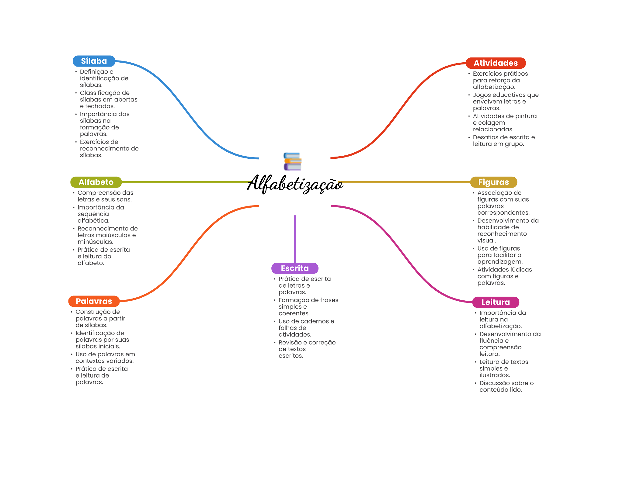 Sílaba Atividades Definição Exercícios práticos de para reforço da de Jogos educativos que em envolvem letras . palavras. Atividades de pintura na . colagem formação de relacionados. palavras. de escrita . de leitura em grupo. reconhecimento de Alfabeto Figuras Associação de letras . seus sons. figuras com da palavras sequência correspondentes. Desenvolvimento da Reconhecimento de habilidade de letras malúsculas Prática de escrita Uso de figuras e leitura do para facilitar a Escrita Atividades lúdicas de escrita com figuras de e Palavras Formação de frases Leitura Construção de da a partir . Uso de leitura na de de de atividades. da palavras por Revisão correção fluência de taxtos Uso de palavras em escritos. contextos variados. Leitura de Prática de escrita simples e leitura de Discussão sobre o conteúdo