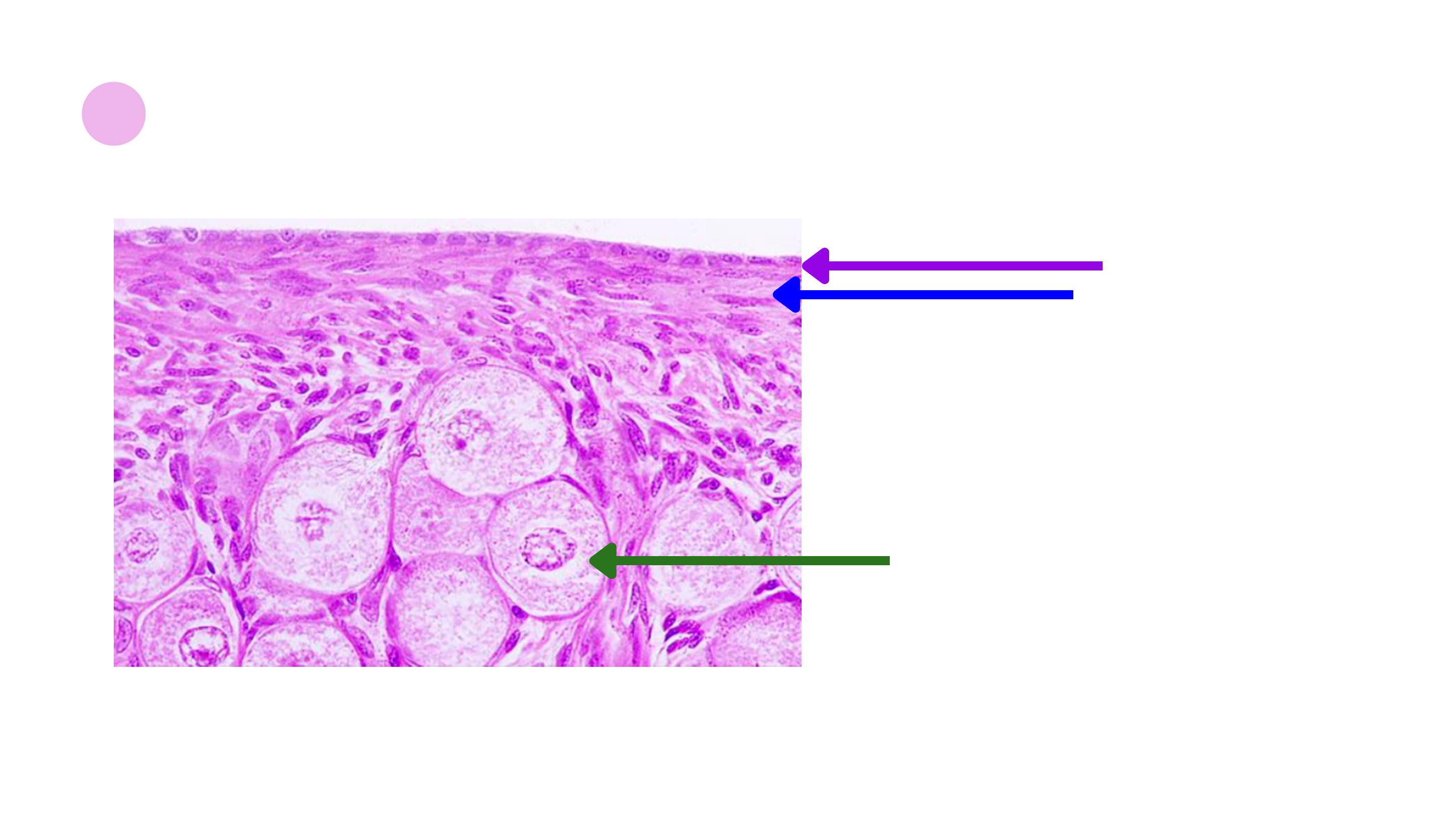 1 Identifique as estruturas apontadas pelas setas: 1 Identifique as estruturas apontadas pelas setas: Epitélio germinativo Túnica albugínea Folículo primordial (ovócito primário + células foliculares) 2 Identifique os tipos de folículos a seguir: 1) 2) 3) 2 Identifique os tipos de folículos a seguir: 1) 2) 3) 1) Folículo primário unilaminar 2) Folículo secundário ou antral 3) Folículo maduro (de Graaf) Folículo secundário (antral): Células foliculares em verde Presença de antro Zona pelúcida * Informações importantes: Folículo Primário unilaminar: Células foliculares em verde Zona pelúcida em vermelho escuro 3 Cite os nomes das camadas que compõem a parede do folículo antral e suas características. 3 Cite os nomes das camadas que compõem a parede do folículo antral e suas características. 1 - Camada granulosa (secretam fatores que induzem as células estromais a se diferenciarem) 2 - Teca interna (composta por células poliédricas secretoras de androgênio) 3 - Teca externa (cápsula de tecido conjuntivo denso não modelado, atuando como cápsula do folículo em desenvolvimento) 4 Identifique as estruturas apontadas pelas setas: 4 Identifique as estruturas apontadas pelas setas: Zona Pelúcida Corona Radiata Antro Folicular Camada Granulosa Teca Folículo maduro (de Graaf) Resumo do ciclo ovariano- fase folicular: O que acontece com o folículo após a ovulação? 5 O que acontece com o folículo após a ovulação? 5 Após a ovulação, o folículo passa a se chamar corpo lúteo. O corpo lúteo é uma estrutura altamente secretora, composta por células granuloso- luteínicas e células teco-luteínicas fase lútea do ciclo ovariano 6 Qual é a funcão das células granuloso-luteínicas e células teco-luteínicas ? 6 Qual é a funcão das células granuloso-luteínicas e células teco-luteínicas ? 7 O corte histológico abaixo corresponde ao útero. Identifique a fase em que se encontra e cite suas características. 7 O corte histológico abaixo corresponde ao útero. Identifique a fase em que se encontra e cite suas características. O útero se encontra em fase secretora (fase progestacional) caracterizada pelo espessamento do endométrio, presença de glândulas altamente enoveladas e de lumens dilatados e artérias espiraladas. Resumo do ciclo uterino: 8 A imagem abaixo corresponde à junção dos epitélios do endocervice e do ectocervice. Cite o nome dessa junção e classifique seus epitélios. 8 A imagem abaixo corresponde à junção dos epitélios do endocervice e do ectocervice. Cite o nome dessa junção e classifique seus epitélios. A região corresponde à junção escamo colunar (JEC), onde há uma transição entre os epitélios colunar simples e pavimentoso estratificado não queratinizado.