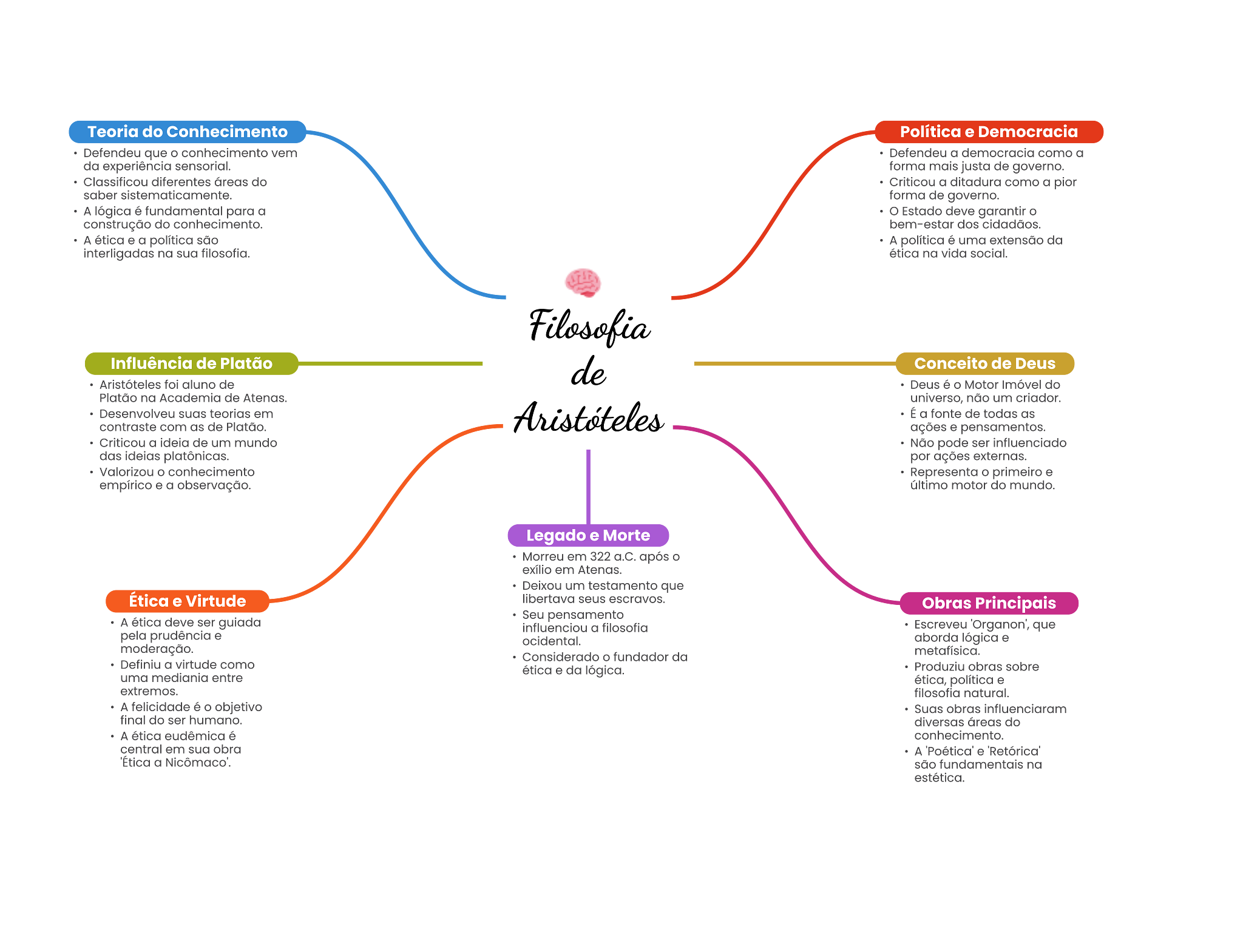 Teoria do Conhecimento Política e Democracia Defendeu que o conhecimento vem Defendeu a democracia como a da experiência sensorial. forma justa de governo. diferentes áreas do Criticou a ditadura como a pior saber forma de governo. A lógica fundamental para a Estado deve garantir construção do conhecimento. bem-estar dos A ética a politica são A politica uma extensão da na sua ética na vida social. Influência de Platão Conceito de Deus foi de é o Motor Imóvel do Platão na Academia de universo, não um teorias em É a fonte de todas as contraste com as de Platão. ações pensamentos. Criticou a de um mundo Não pode ser influenciado platônicas. por ações externas. Valorizou conhecimento Representa o primeiro . a observação. último motor do mundo. Legado e Morte Morreu em 322 após em Debrou um testamento que Ética e Virtude libertava seus Obras Principais A ética deve ser Seu pensamento a Escreveu que pela prudência . aborda lógica . Considerado o fundador da Definiu a virtude como uma mediania entre ética e da lógica. Produziu obras sobre ética, extremos. natural. A felicidade o objetivo obras final do ser humano. do A ética eudêmica conhecimento. central em obra A . a são fundamentale na
