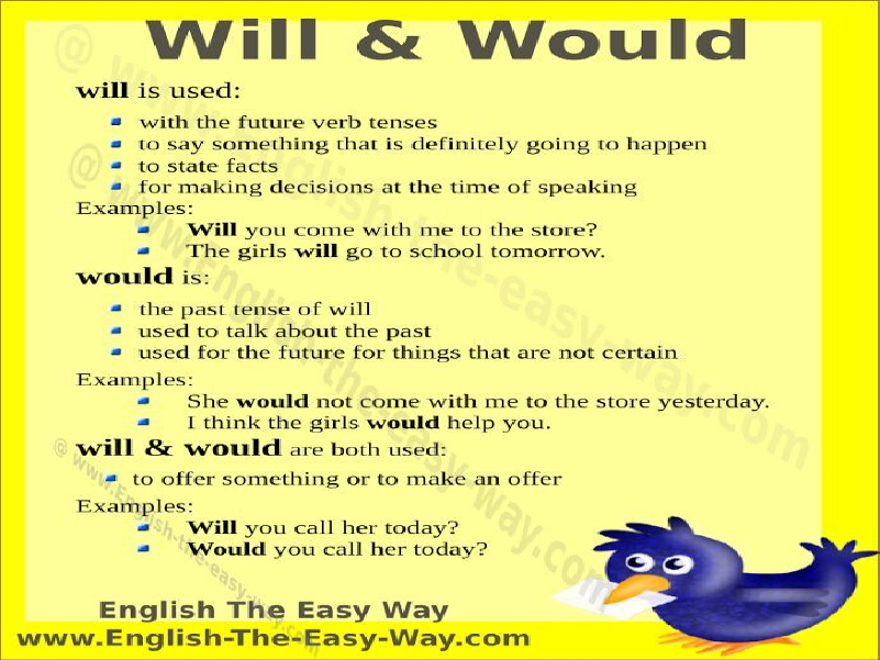 Resumo Reforça o uso de 'Will & Would' com exemplos práticos, mostrando como ambos podem ser usados para oferecer algo ou fazer perguntas educadas.