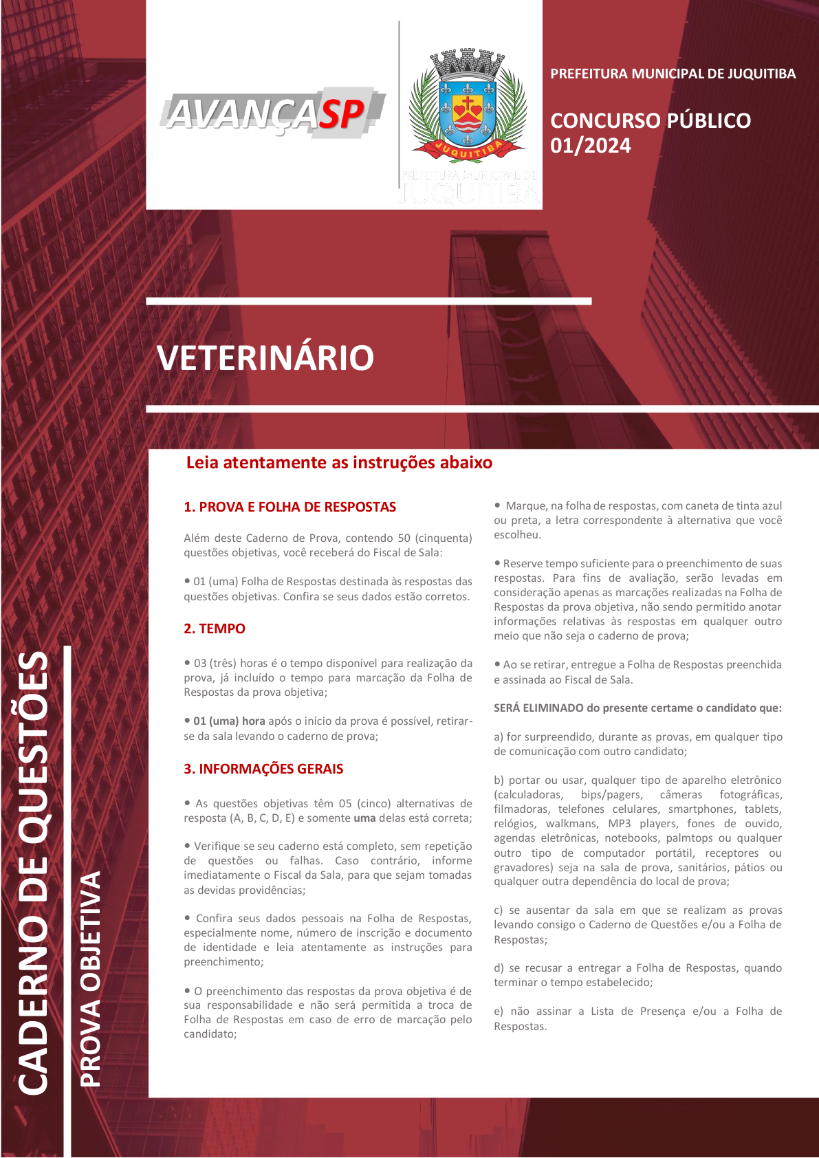 pcimarkpci MjgwNDowMjE0OmMwMDM6MGE3MTowMTZjOjIwMTQ6YTJkNDpmMjY5:U3VuLCAwNSBPY3QgMjAyNSAyMjowMjo1NyAtMDMwMA== www.pciconcursos.com.br VETERINÁRIO Leia atentamente as instruções abaixo C A D ER N O D E Q U ES TÕ ES 1. PROVA E FOLHA DE RESPOSTAS Além deste Caderno de Prova, contendo 50 (cinquenta) questões objetivas, você receberá do Fiscal de Sala: 01 (uma) Folha de Respostas destinada às respostas das questões objetivas. Confira se seus dados estão corretos. 2. TEMPO 03 (três) horas é o tempo disponível para realização da prova, já incluído o tempo para marcação da Folha de Respostas da prova objetiva; 01 (uma) hora após o início da prova é possível, retirar- se da sala levando o caderno de prova; 3. INFORMAÇÕES GERAIS As questões objetivas têm 05 (cinco) alternativas de resposta (A, B, C, D, E) e somente uma delas está correta; Verifique se seu caderno está completo, sem repetição de questões ou falhas. Caso contrário, informe imediatamente o Fiscal da Sala, para que sejam tomadas as devidas providências; Confira seus dados pessoais na Folha de Respostas, especialmente nome, número de inscrição e documento de identidade e leia atentamente as instruções para preenchimento; O preenchimento das respostas da prova objetiva é de sua responsabilidade e não será permitida a troca de Folha de Respostas em caso de erro de marcação pelo candidato; Marque, na folha de respostas, com caneta de tinta azul ou preta, a letra correspondente à alternativa que você escolheu. Reserve tempo suficiente para o preenchimento de suas respostas. Para fins de avaliação, serão levadas em consideração apenas as marcações realizadas na Folha de Respostas da prova objetiva, não sendo permitido anotar informações relativas às respostas em qualquer outro meio que não seja o caderno de prova; Ao se retirar, entregue a Folha de Respostas preenchida e assinada ao Fiscal de Sala. SERÁ ELIMINADO do presente certame o candidato que: a) for surpreendido, durante as provas, em qualquer tipo de comunicação com outro candidato; b) portar ou usar, qualquer tipo de aparelho eletrônico (calculadoras, bips/pagers, câmeras fotográficas, filmadoras, telefones celulares, smartphones, tablets, relógios, walkmans, MP3 players, fones de ouvido, agendas eletrônicas, notebooks, palmtops ou qualquer outro tipo de computador portátil, receptores ou gravadores) seja na sala de prova, sanitários, pátios ou qualquer outra dependência do local de prova; c) se ausentar da sala em que se realizam as provas levando consigo o Caderno de Questões e/ou a Folha de Respostas; d) se recusar a entregar a Folha de Respostas, quando terminar o tempo estabelecido; e) não assinar a Lista de Presença e/ou a Folha de Respostas. P R O V A O B JE TI V A PREFEITURA MUNICIPAL DE JUQUITIBA CONCURSO PÚBLICO 01/2024 pcimarkpci MjgwNDowMjE0OmMwMDM6MGE3MTowMTZjOjIwMTQ6YTJkNDpmMjY5:U3VuLCAwNSBPY3QgMjAyNSAyMjowMjo1NyAtMDMwMA== www.pciconcursos.com.br Prefeitura Municipal de Juquitiba – Concurso Público 01/2024 INSTITUTO AVANÇA SÃO PAULO VETERINÁRIO Página 2 de 12 LÍNGUA PORTUGUESA TEXTO Leia o texto para responder às questões de 1 a 5. Microplásticos são descobertos pela 1ª vez em vestígios arqueológicos Dezenas de partículas de plástico foram encontradas em coletas atuais e em amostras extraídas do solo na década de 1980 em dois sítios arqueológicos em York, Inglaterra Nos últimos anos, uma série de estudos têm evidenciado a presença de microplásticos no oceano, no ar e até mesmo no organismo humano. Agora, pesquisadores descobriram que esses pequenos materiais estão contaminando também vestígios arqueológicos retirados do solo. Uma pesquisa publicada em 1º de março na revista Science of The Total Environment identificou em coletas de solo 66 partículas de 16 tipos de polímeros de microplástico. “O que antes se acreditava serem depósitos arqueológicos puros, prontos para investigação, estão, na realidade, contaminados por plástico”, afirma em comunicado o arqueólogo John Schofield, da Universidade de York, no Reino Unido. Os microplásticos são partículas de plástico com tamanho entre 1 micrômetro (milésimo de milímetro) e 5 milímetros. A sua origem é diversa: podem estar em itens de higiene pessoal, cosméticos, garrafas PET, celulares e roupas. Os pesquisadores analisaram amostras de dois períodos: as mais antigas são datadas dos séculos 1 ou 2 e foram retiradas do solo na década de 1980, em dois sítios arqueológicos de York, a uma profundidade de mais de 7 metros. Já as demais foram coletadas na contemporaneidade em regiões próximas de onde ocorreram as escavações no passado. “Nós pensamos nos microplásticos como um fenômeno moderno, já que só temos ouvido falar deles nos últimos 20 anos”, contextualiza David Jennings, pesquisador da Universidade de York. Ele explica que há duas décadas, no ano de 2004, o professor Richard Thompson revelou que microplásticos estavam em águas marítimas desde 1960, em decorrência da grande produção de plástico após a Segunda Guerra Mundial. “Esse novo estudo mostra que as partículas se infiltraram em depósitos arqueológicos. E, como no caso dos oceanos, isso provavelmente está acontecendo há um período similar, considerando que partículas foram encontradas em amostras de solo retiradas e arquivadas em 1988, de Wellington Row, em York”, sugere Jennings. Os achados inéditos levantam questionamentos sobre o impacto dos microplásticos em materiais estudados por arqueólogos. Acredita-se que essas partículas podem afetar a química do solo e prejudicar a preservação de resquícios importantes. Assim, surge uma dúvida: será que preservar amostras arqueológicas in situ continua sendo a abordagem mais adequada? “Daqui para frente, tentaremos descobrir até que ponto essa contaminação compromete o valor de evidência desses depósitos e qual a sua importância nacio