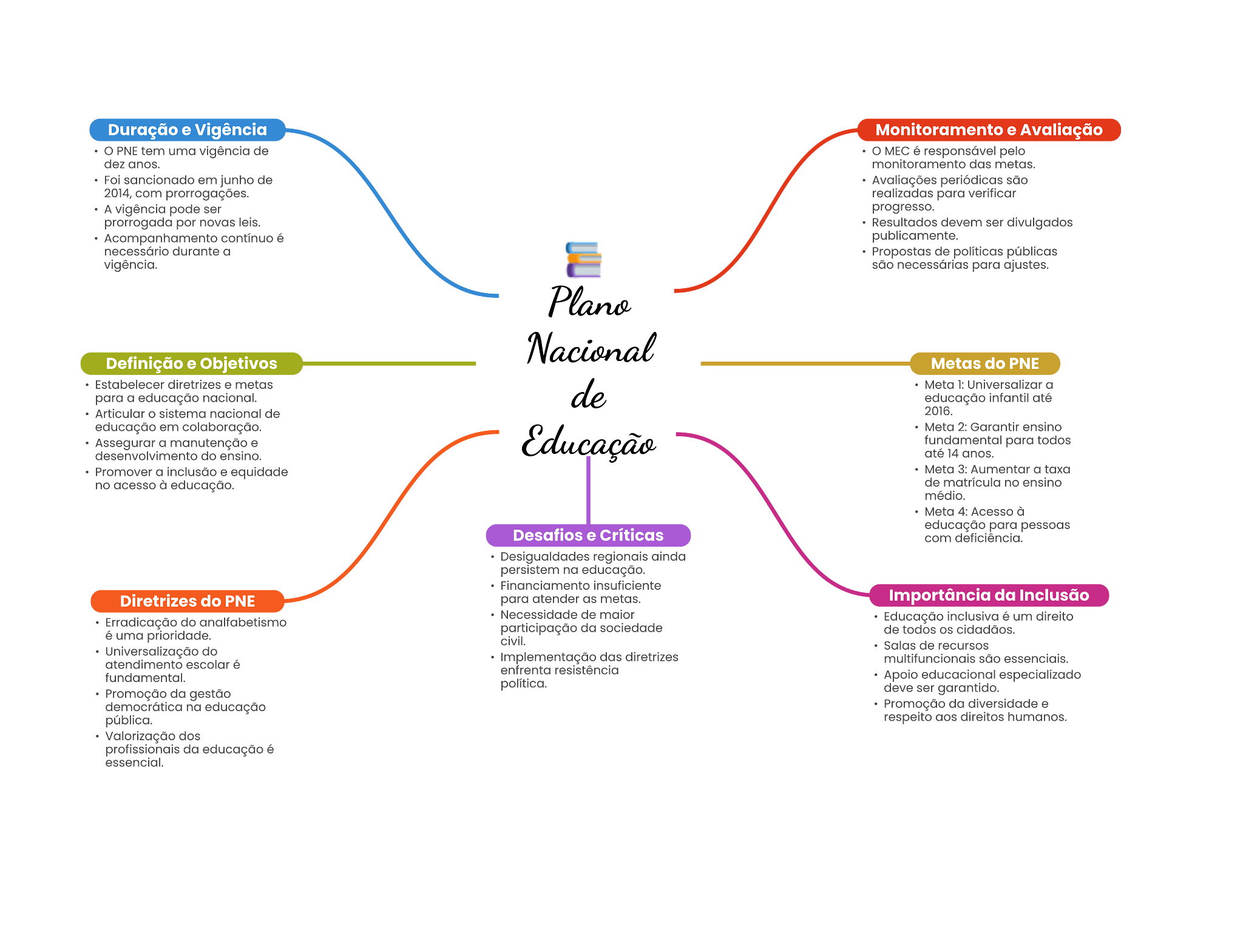 Duração e Vigência Monitoramento e Avaliação PNE uma vigência de MEC é responsável pelo dez monitoramento das metos. Foi sancionado em junho de periódicas 2014, com prorrogações. para verificar A vigência pode ser progresso. prorrogada por novas Resultados devem ser divulgados Acompanhamento durante a Propostas de politicas vigência. para Definição e Objetivos Metas do PNE Estabelecer diretrizes metas Meta t a para a educação nacional. educação infantil até Articular sistema nacional de 2016. educação em colaboração. Meta 2: Garantir Assegurar a manutenção fundamental para todos do ensino. até 14 anos. Promover a equidade Meta Aumentor a no acesso educação. de no ensino médio. Meta 4: Acesso à educação para Desafios e Críticas com deficiência. Desigualdades regionals ainda persistem na educação. Financiamento Diretrizes do PNE para atender as Importância da Inclusão Necessidade de Erradicação do Educação é um direito uma prioridade. participação da sociedade de todos OS cidadãos. Universaltzação do Salas de recursos atendimento escolar das são enfrenta resistência fundamental. Apolo educacional especializado Promoção da gestão garantido. democrática na educação Promoção da diversidade pública. direitos humanos. Valortzação dos profissionale da educação essencial.