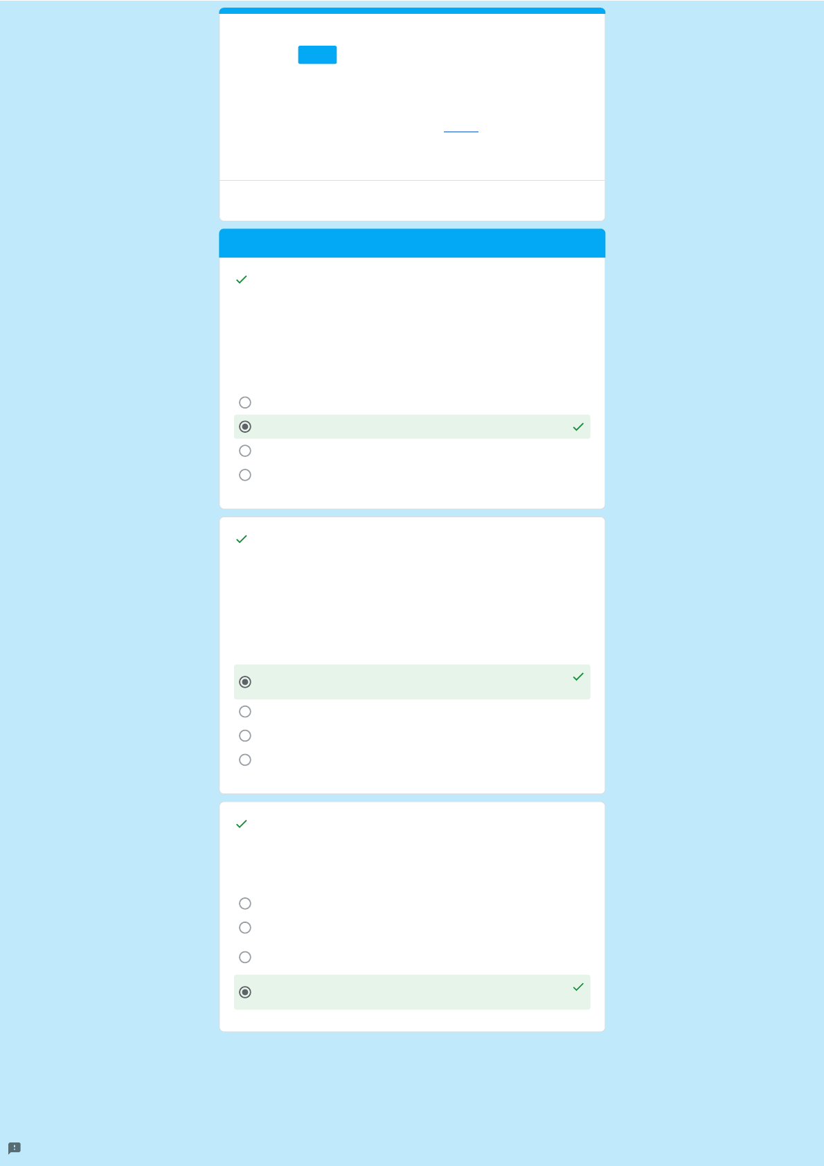 - Algumas questões possuem feedback, infelizmente não em todas