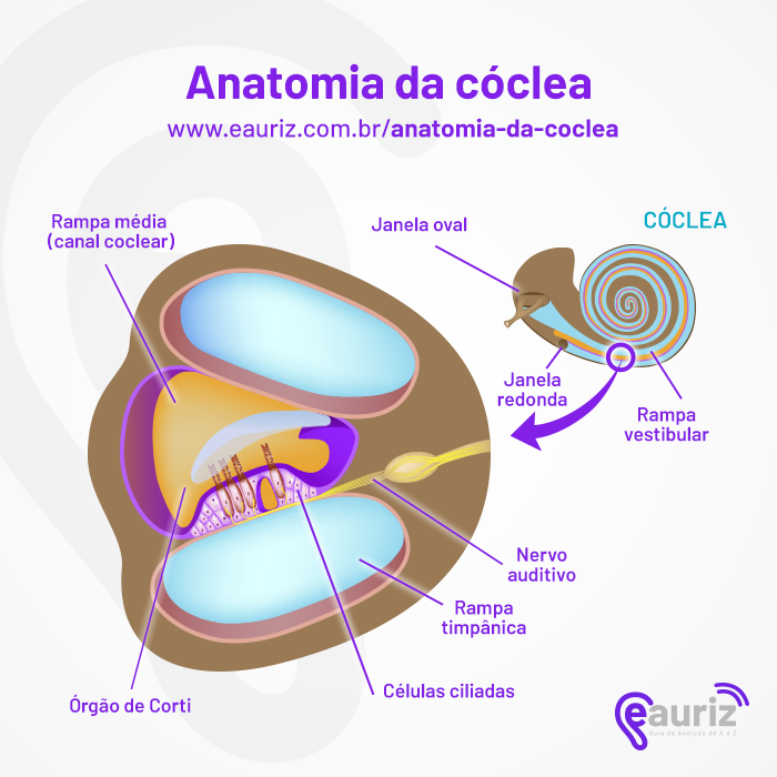 Anatomia da cóclea www.eauriz.com.br/anatomia-da-coclea Rampa média Janela oval CÓCLEA (canal coclear) Janela redonda Rampa vestibular Nervo auditivo Rampa timpânica Células ciliadas Órgão de Corti
