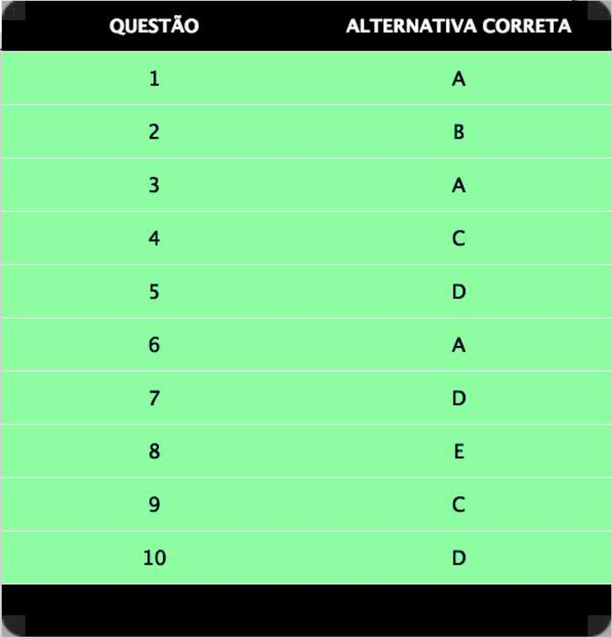 QUESTÃO ALTERNATIVA CORRETA 1 A 2 3 A 4 5 D 6 A 7 D 8 E 9 10 DQuestões de múltipla escolha Disciplina: 804460 METODOLOGIA E PRATICA DO ENSINO DA HISTÓRIA E GEOGRAFIA Questão 1: No contexto educacional, a primeira escola brasileira a incluir Geografia nas disciplinas curriculares obrigatórias foi: A) O Colégio Pedro II, no Rio de Janeiro, em 1837, com a intenção de criar uma elite nacional capaz de ocupar quadros políticos e administrativos. B) O Colégio Brasil, no Rio Grande do Sul, em 1890, com a intenção de que conhecendo as características físicas do local, o sentimento de nacionalismo e patriotismo será despertado nos estudantes. C) Colégio Anchieta, em São Paulo, em 1905, com a intenção de criar uma elite nacional capaz de ocupar quadros políticos e administrativos. D) Colégio Pedro II, no Rio de Janeiro, em 1900, que propõe estudo do Brasil por regiões, abrindo espaço para melhor conhecer território nacional. E) A Universidade de São Paulo, em 1934, que preconiza a importância do estudo das questões sociais. Questão 2: Em relação ao ensino de História nas escolas de educação básica, podemos afirmar que: I.É objetivo do ensino de História a análise das relações entre os diversos grupos sociais. II. raciocínio histórico vai se desenvolvendo aos poucos, partindo do concreto, próximo e específico, rumo ao mais abstrato, remoto e amplo. III. Passado e presente se integram por meio do que permanece e do que se modifica em cada espaço social. IV. livro-texto e outros recursos didáticos ajudam aluno a construir sua própria leitura da história. É correto apenas o que se afirma em:A) I e III. B) Todas as afirmativas são corretas. C) II e III. D) I, II e III. E) IV. Questão 3: geógrafo Milton Santos, na obra A natureza do espaço: técnica e tempo, razão e emoção (2004, 25), cita: [...] é por demais sabido que a principal forma de relação entre homem e a natureza, ou melhor, entre homem e meio, é dada pela técnica. As técnicas são um conjunto de meios instrumentais e sociais, com os quais homem realiza sua vida, produz e, ao mesmo tempo, cria espaço". Dessa forma, são inerentes à Geografia: A) Natureza, sociedade e trabalho. B) Paisagem, poder e sociedade. C) Tempo, espaço e cultura. D) Natureza, cultura e tempo. E) Trabalho, poder e educação. Questão 4: Leia a letra da música Cidadão, de Zé Ramalho: Tá vendo aquele edifício, moço? Ajudei a levantar Foi.um tempo de aflição Eram quatro condução Duas pra ir, duas pra voltar Hoje depois dele pronto Olho pra cima e fico tonto Mas me chega um cidadão E me diz desconfiado, tu tá aí admirado Ou tá querendo roubar? Meu domingo tá perdido Vou pra casa entristecido Dá vontade de beber E pra aumentar meu tédio Eu nem posso olhar pro prédio Que eu ajudei a fazer Tá vendo aquele colégio, moço? Eu também trabalhei lá Lá eu quase me arrebento Pus a massa, fiz cimento Ajudei a rebocar Minha filha inocente Vem pra mim toda contente Pai, vou me matricular Mas me diz um cidadão Criança de pé no chão Aqui não pode estudar Essa dor doeu mais forte Por que que eu deixei Norte? Eu me pus a me dizer Lá a seca castigava Mas o pouco que eu plantava Tinha direito a comerTá vendo aquela igreja, moço? Onde o padre diz amém Pus sino e o badalo Enchi minha mão de calo Lá eu trabalhei também Lá foi que valeu a pena Tem quermesse, tem novena E padre me deixa entrar Foi lá que Cristo me disse Rapaz, deixe de tolice Não se deixe amedrontar Fui eu quem criou a terra Enchi o rio, fiz a serra Não deixei nada faltar Hoje o homem criou asas E na maioria das casas Eu também não posso entrar. Uma das questões abordadas nesta música relaciona-se a "movimentos Assinale a alternativa que melhor corresponde às consequências da migração de camadas pobres em busca de melhores condições de vida. A) A migração é um benefício para os moradores das grandes cidades, pois assim há mão de obra no setor de construção. B) Todos os que migram tornam-se pedreiros. C) A migração pode se relacionar com a exclusão social. D) Filhos de migrantes não têm direito à escola. E) Os migrantes são muito importantes para a urbanização das cidades. Questão 5: Quanto aos objetivos do ensino de História para o 1o ano do Ensino Fundamental, Martins (1996) destaca que os alunos devem ser capazes de: I. Comparar acontecimentos no tempo, tendo como referência anterioridade, posterioridade e simultaneidade. II. Identificar alguns documentos históricos e fontes de informações discernindo algumas de suas funções. III. Conhecer a história de todos os países e relacioná-la com a sua própria história. IV. Identificar diferenças culturais entre o modo de vida de sua localidade e o da comunidade indígena estudada, por exemplo. É correto apenas o que se afirma em: A) Todas as afirmativas estão corretas. B) IV. C) e III. D I, II e IV. E) e III. Questão 6: No ensino de História, trabalhar com datas é fundamental para a localização temporal dos alunos, pois a linha do tempo é um meio para a organização dos estudos em História e para a conceituação de tempo e cultura. Marcar cronologicamente o acontecimento através de sua periodização é importante, mas não garante a compreensão de sua totalidade e complexidade. É preciso dimensionar o processo de transformações em sua vertente cultural. Portanto, o ensino de História deve começar a partir: A) Da representação espacial e cultural do tempo. B) Apenas da apresentação de datas aos alunos. C) Dos heróis e vilões que fazem a história. D) Apenas da apresentação dos espaços aos alunos.E) Da importância dos fatos históricos. Questão 7: Vygotsky tinha como centro de preocupação a necessidade de formar a cidadania e criar responsabilidade social nas crianças desde pequenas. Para ele, o aspecto básico da educação era trabalhar a consciência individual para a participação na sociedade por meio da int