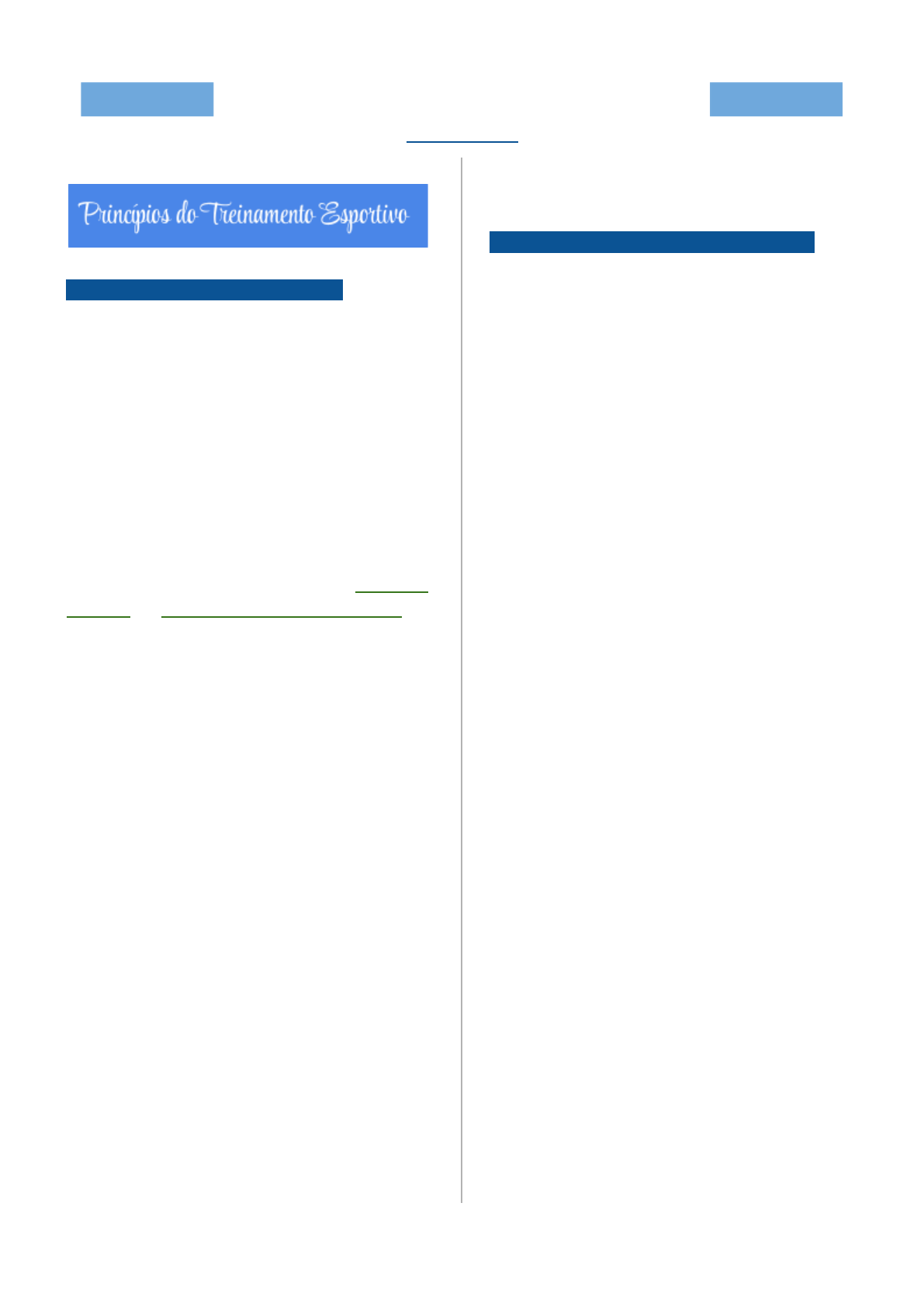 Samara e Sarah | @fisios.tododia Fisi�t�a�ia es���i�a e es��te ada�tad� 8º semestre -01.08.2024- Bases do treinamento esportivo • Demanda suprafisiológica = Demanda > que a fisiológica • Macro e micronutrientes: É a partir deles que temos energia biologicamente utilizável. A redução dessa energia pode afetar a contração muscular, diminuindo o desempenho físico. • Toda lesão musculoesquelética tem mecanismos pelos quais se desenvolvem, que podem ser por contato direto (trauma), overuse ou insuficiência de partes moles. • Toda lesão tem fatores predisponentes; extrínsecos (colhidos na história do paciente: o quanto ele corre, ambiente, onde malha, que equipamentos usa, etc) ou intrínsecos (colhidos na avaliação funcional) • A mesma disfunção pode levar a várias patologias (ex: disfunção lombo pélvica pode levar a tendinopatia do calcâneo, bursite trocantérica, etc) e vice versa (a mesma patologia pode ter diferentes disfunções de origens diferentes); Por esse motivo, uma avaliação detalhada se faz necessária; • Uma deficiência pode ser de etiologia congênita ou adquirida • Paraplegia não é deficiência, é uma sequela de uma deficiência física (exemplo: trauma raquimedular), bem como a cegueira (decorrente de uma retinopatia, por exemplo) Dimensões do treinamento esportivo: • Multiprofissional (cada um no seu canto) → multidisciplinar → interdisciplinar e translacional (em determinada parte do processo de recuperação, cada profissional terá sua maior importância, sem relações verticais e hierarquizadas, mas sim uma relação horizontal) • Em um atleta sem deficiência, a gente espera que numa reabilitação alcancemos a recuperação plena das funções; Já para uma pessoa com deficiência devemos buscar o seu potencial funcional, e não a reabilitação da função, por isso tem-se a ideia de que a pessoa com deficiência não pode ser reabilitada • O que é mais importante saber ao participar de provas esportivas: a Epidemiologia das lesões, para a fisioterapia principalmente entender o gesto esportivo e o que geram as lesões, bem como o que poderemos fazer para resolver - Bandagem funcional, eletroterapia, terapia manual são fundamentais - Saber tudo o que faz (e o porquê) • O modelo biomecânico nos ajuda a entender a gênese das lesões e entender como as forças atuam no corpo • A parametrização (volume, tempo, zona cardíaca atingida, cansaço relatado e também determinado por essas variáveis, etc) é o que define se uma atividade é exercício físico (não necessariamente tem preocupação com demanda *É PROIBIDO compartilhar este conteúdo com outras pessoas sem autorização das autoras! 1 Samara e Sarah | @fisios.tododia Fisi�t�a�ia es���i�a e es��te ada�tad� 8º semestre suprafisiológica, como alguém que tem lesão), atividade física e exercício terapêutico devem ser planejados de acordo com as variáveis e objetivos a serem atingidos • Midríase: dilatação da pupila, sinal neurológico importante que sugere gravidade (comentários aleatórios durante a aula - relato de caso) A importância da Fisioterapia no esporte • Muitas vezes o fisioterapeuta se torna um administrador da lesão, porque o atleta precisa retornar antes que esteja completamente recuperado; Para tanto, os conceitos de fases observados na disciplina de Aparelho Locomotor não ocorrem da mesma forma • Recuperação acelerada - nem sempre vale a pena, normalmente só quando vai competir por uma medalha, quando atleta tem muito suporte, como no caso de atletas de alto rendimento - “Tão rápido quanto possível, tão lento quanto necessário…” • Compreender que a performance máxima é tempo-dependente; • Maximizar rendimento e minimizar risco de lesões; • Prevenir lesões específicas do esporte; Treinamento esportivo • Definição: conjunto de procedimentos e meios utilizados para se conduzir um atleta à sua plenitude física, técnica e psicológica dentro de um planejamento racional, visando a execução de uma performance máxima num período determinado • Modelo biomecânico da prevenção: É um equilíbrio entre capacidade e demanda; nosso papel é entender se estão em harmonia • Dimensões do treinamento esportivo (Tubino): pirâmide Atividade física Qualquer atividade muscular, SEM sistematização ou parametrização, que envolva mais gasto energético do que em repouso Exercício físico/terapêutico Subgrupo da atividade física que envolve planejamento e parametrização, com objetivo de desenvolver, manter ou aprimorar o condicionamento físico. Em outras palavras, melhorar as capacidades para as suas necessidades, sendo algo que devemos sempre buscar, guardadas as necessidade de cada pessoa Importante: - Parâmetros/parametrização: volume, intensidade, FC, Borg, carga, repetições, repouso, etc Condicionamento físico Estado em que as pessoas possuem ou atingem condicionamento em relação às suas capacidades motoras, como capacidade aeróbia e anaeróbia, força e resistência muscular, flexibilidade e composição corporal. Esporte *É PROIBIDO compartilhar este conteúdo com outras pessoas sem autorização das autoras! 2 Samara e Sarah | @fisios.tododia Fisi�t�a�ia es���i�a e es��te ada�tad� 8º semestre Práticas corporais que envolvem competição, institucionalizada, podendo também ter finalidade lúdica, bem como na promoção da saúde e em âmbito educacional. • Omúsculo é a principal estrutura do corpo que atenua e dissipa as forças internas, diminuindo o impacto durante o movimento, e isso ocorre especialmente pela sua ação excêntrica • Salutogênese: a busca das razões que levam alguém a estar saudável Comprometimento da saúde gera: ● Limitação ou perda da função (órgãos e sistemas) ● Restrição dos movimentos/ performance, que gera alterações nas suas capacidades motoras
