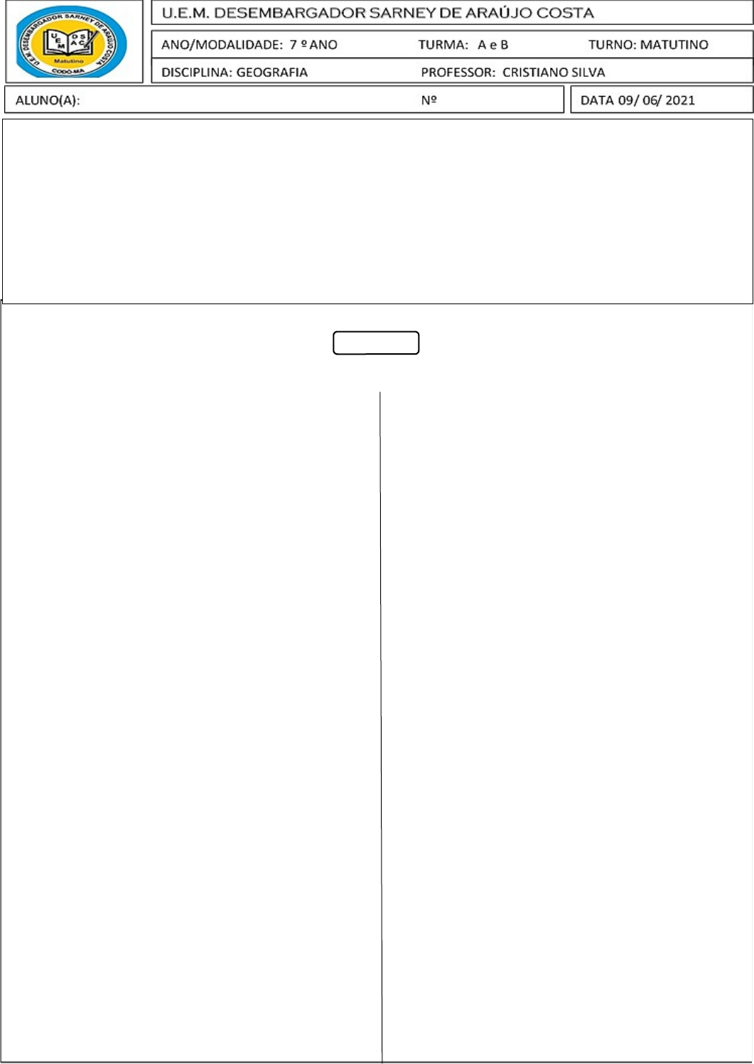 ORIENTAÇÃO: · Unidade 2: A população brasileira. · Capitulo 5: Aspectos demográficos sociais. · Leitura do livro didático páginas 66 a 73. · Após a leitura do texto no livro didático, copie e responda no caderno, a atividade de fixação. · É importante que tenham a compreensão do conteúdo, para o melhor aprendizado do aluno. · Em caso de dúvidas é necessário que entre contato com o professor. OBS: É importante o retorno das atividades, elas contam nota somativa e também confirma a presença. ATIVIDADE 01. 02. O que é densidade demográfica ou população relativa? 03. O que é crescimento natural ou vegetativo? 04. Cite dois fatores que contribuíram para a queda da taxa de natalidade no Brasil? 05. O que significa a sigla IDH? 06. Cite três possíveis causas do estreitamento da base da pirâmide etária brasileira e do alargamento do seu topo? 07. Faça uma análise socioeconômica da população brasileira? 07. A densidade demográfica do Brasil atualmente é de: a) 10 hab./km2. b) 24 hab. Km2. c) 30 hab./km2. d) 40 hab. / km2. 08. Uma das formas usadas para avaliar a riqueza de um país, estado ou município é analisar: a) IBGE. b) SUS. c) PIB. d) INSS. 09. A educação é de fundamental importância para o desenvolvimento de um país. Portanto no Brasil a taxa de analfabetismo ainda é de: a) 8%. b) 10%. c) 15%. d) 20%. 10. Explique sobre a longevidade da população brasileira nas últimas décadas? image1.png image2.png
