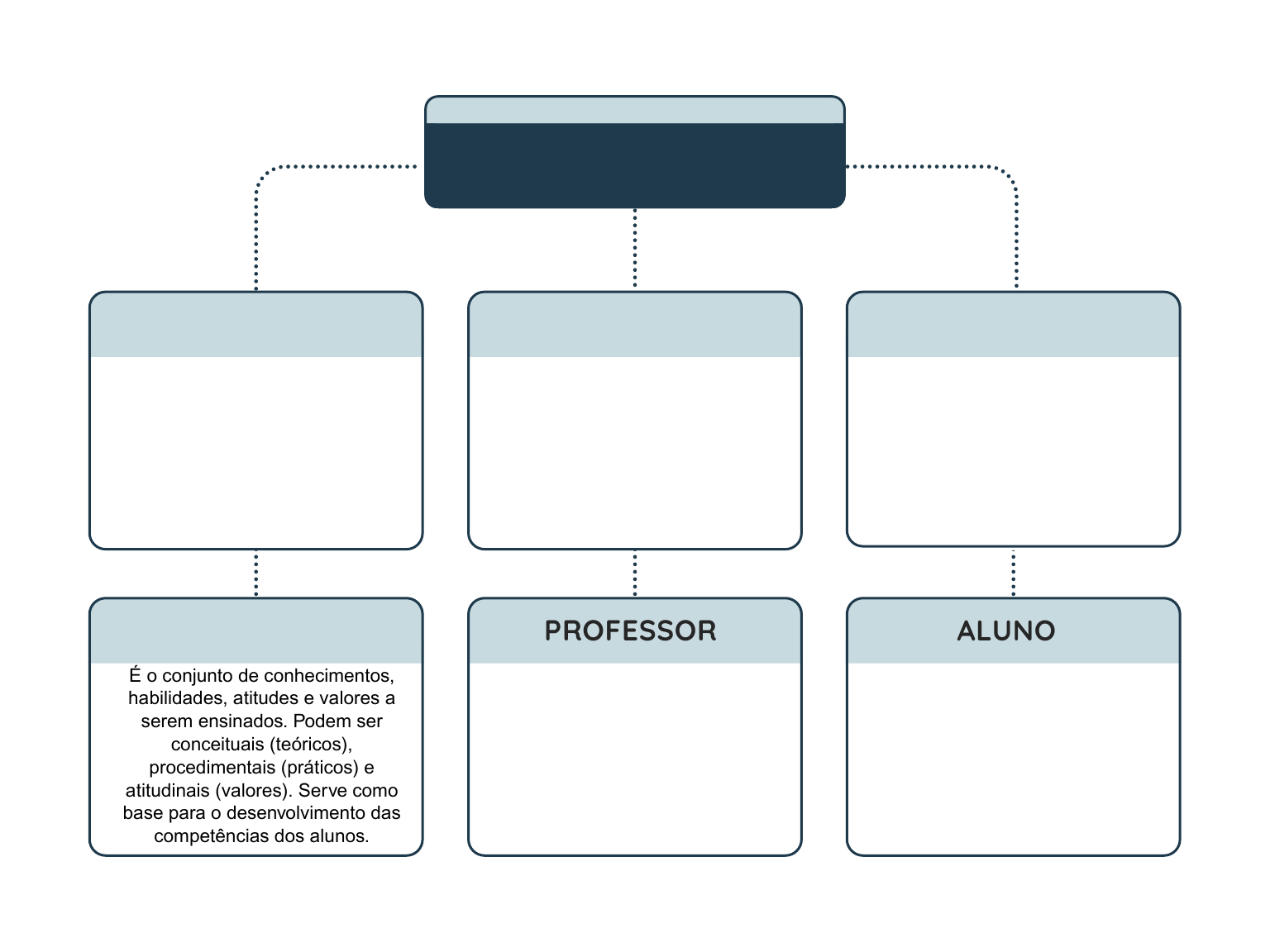 Define-se por metas que se pretende alcançar ao final do processo de ensino. Podem ser do tipo erais (amplos) e específicos (detalhados). Direcionam o planejamento e a avaliação do ensino. OBJETIVOS DE APRENDIZAGEM É o processo contínuo e sistemático de coleta e análise de informações sobre a aprendizagem. Tipos: Diagnóstica (inicial), formativa (durante o processo), somativa (final). Identifica avanços, dificuldades e reorienta as práticas pedagógicas. AVALIAÇÃO É o conjunto de conhecimentos, habilidades, atitudes e valores a serem ensinados. Podem ser conceituais (teóricos), procedimentais (práticos) e atitudinais (valores). Serve como base para o desenvolvimento das competências dos alunos. CONTEÚDO PROFESSOR É o conjunto de estratégias, técnicas e recursos usados para facilitar a aprendizagem. Sobre as abordagens: Tradicional, construtivista, problematizadora, entre outras. Deve ser adequada ao perfil dos alunos e aos objetivos de aprendizagem. METODOLOGIA Sujeito central no processo de aprendizagem. Participa ativamente na construção do conhecimento. O foco moderno está na aprendizagem ativa, com o aluno sendo protagonista. ALUNO AÇÕES EDUCATIVAS EM ENFERMAGEM Agente responsável por mediar o processo de ensino- aprendizagem. Planeja, organiza, aplica e avalia as atividades pedagógicas. Atua como facilitador, estimulando o pensamento crítico e a autonomia dos alunos.