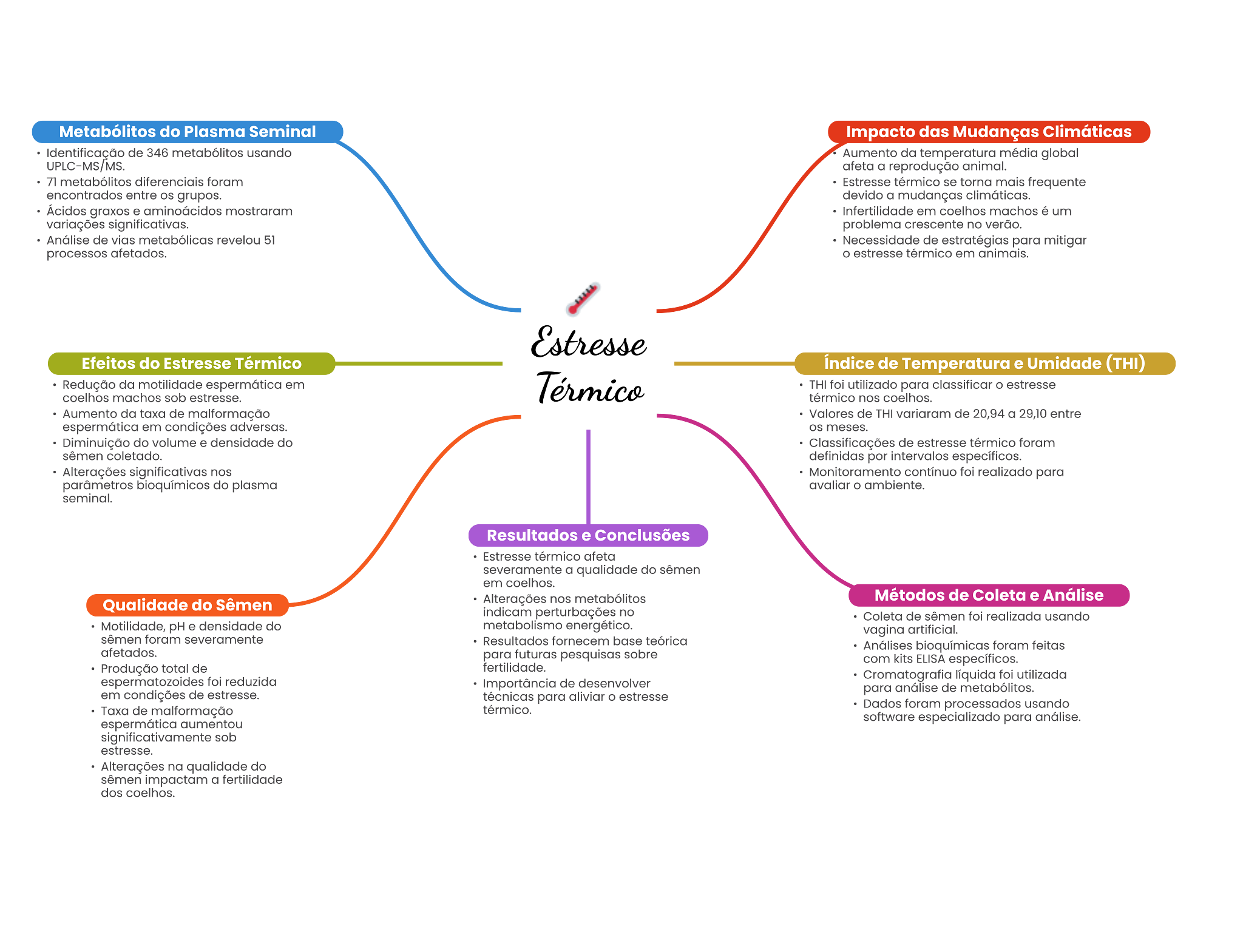 Metabólitos do Plasma Seminal Impacto das Mudanças Climáticas de 346 usando Aumento da temperatura média global UPLC-MB/MS. afeta a reprodução animal. 71 metabólitos foram térmico se torna mais frequente encontrados entre grupos. devido a mudanças Ácidos graxos . mostraram em um significativas. problema no Análise de vias metabólicas revelou 61 Necessidade de para mitigar processos afetados. térmico em animals. Efeitos do Estresse Térmico Índice de Temperatura e Umidade (THI) Redução da motilidade espermática em THI foi utilizado para classificar estresse coelhos machos sob estresse. nos Aumento da taxa de de THI de a 29,10 entre espermática em condições adversas. messe. Diminuição do volume densidade do de estresse térmico foram por específicos. Alterações significativas nos Monitoramento foi para parâmetros do plasma avaliar ambiente. Resultados e Conclusões Estresse térmico afeta severamente a qualidade do em coelhos. Qualidade do Sêmen Alterações metabólitos Métodos de Coleta e Análise Indicam perturbações no de foi uegndo pH . densidade do energético. vagina artificial. severamente Resultados base teórica foram afetados. para futuras pesquisas sobre com kits Produção total de foi reduzida Cromatografia líquida foi utilizada Importância de desenvolver em condições de estreses. para análise de para aliviar o de malformação térmico. Dados foram processados usando software especializado para significativamente sob Alterações na qualidade do a dos coelhos.