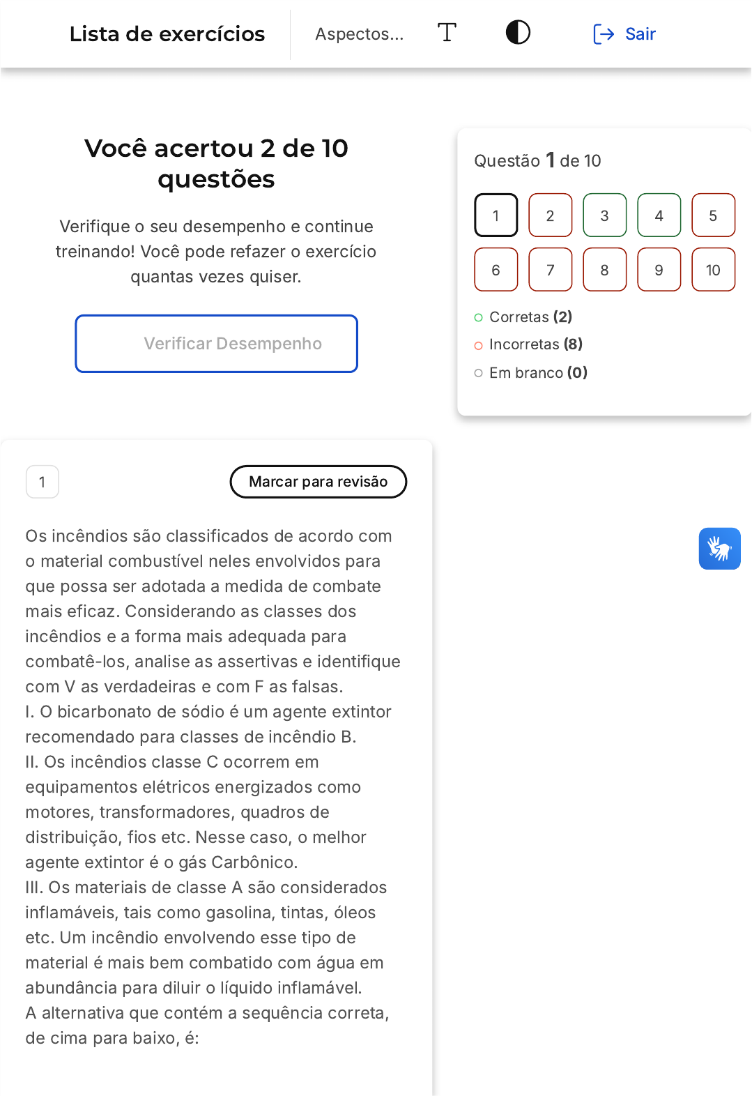 Você acertou 2 de 10 questões Verifique o seu desempenho e continue treinando! Você pode refazer o exercício quantas vezes quiser. Verificar Desempenho 1 Marcar para revisão Os incêndios são classificados de acordo com o material combustível neles envolvidos para que possa ser adotada a medida de combate mais eficaz. Considerando as classes dos incêndios e a forma mais adequada para combatê-los, analise as assertivas e identifique com V as verdadeiras e com F as falsas. I. O bicarbonato de sódio é um agente extintor recomendado para classes de incêndio B. II. Os incêndios classe C ocorrem em equipamentos elétricos energizados como motores, transformadores, quadros de distribuição, fios etc. Nesse caso, o melhor agente extintor é o gás Carbônico. III. Os materiais de classe A são considerados inflamáveis, tais como gasolina, tintas, óleos etc. Um incêndio envolvendo esse tipo de material é mais bem combatido com água em abundância para diluir o líquido inflamável. A alternativa que contém a sequência correta, de cima para baixo, é: Questão 1 de 10 Corretas (2) Incorretas (8) Em branco (0) 1 2 3 4 5 6 7 8 9 10 Lista de exercícios Aspectos… Sair A B C D E F - V - F. F - F - V. F - V - V. V - V - F. V - F - V. Resposta incorreta Opa! A alternativa correta é a letra D. Confira o gabarito comentado! Gabarito Comentado As afirmações I e II estão corretas. O bicarbonato de sódio é, de fato, um agente extintor recomendado para incêndios da classe B, que envolvem líquidos inflamáveis. Da mesma forma, os incêndios da classe C, que ocorrem em equipamentos elétricos energizados, são mais efetivamente combatidos com o uso de gás Carbônico, conforme afirmado na assertiva II. No entanto, a afirmação III está incorreta. Os materiais de classe A são materiais comuns, como madeira, papel, tecidos, entre outros, e não gasolina, tintas, óleos, que são, na verdade, materiais de classe B. Além disso, a água não é o método mais eficaz para combater incêndios envolvendo esses materiais inflamáveis, pois pode espalhar o fogo ao invés de extinguí-lo. Portanto, a sequência A B C correta é V - V - F, correspondendo à alternativa D. 2 Marcar para revisão Tomando como base a NBR 5626 que trata sobre instalação predial de água, analise as seguintes afirmações: I. Toda instalação de água fria deve preservar a potabilidade da água; II. Toda instalação de água fria deve garantir o fornecimento de água de forma contínua, maior que a quantidade adequada e com pressões e velocidades maiores que as satisfatórias para o perfeito funcionamento dos aparelhos sanitários, peças de utilização e demais componentes; III. Toda instalação de água fria deve promover economia de água e de energia; IV. Toda instalação de água fria deve possibilitar manutenção fácil e econômica; Assinale a alternativa correta: Todas as afirmações estão corretas. Todas as afirmações não estão corretas. Apenas as afirmações I e III estão corretas. D E Apenas a afirmação I não está correta. Apenas a afirmação II não está correta. Resposta incorreta Opa! A alternativa correta é a letra E. Confira o gabarito comentado! Gabarito Comentado A alternativa II apresenta uma informação incorreta. Segundo a NBR 5626, as instalações de água fria devem ser projetadas e construídas de modo a garantir o fornecimento de água de forma contínua, porém em quantidade suficiente, e não maior que a adequada. Além disso, as pressões e velocidades devem ser adequadas, e não maiores que as satisfatórias, para o perfeito funcionamento dos aparelhos sanitários, peças de utilização e demais componentes. As instalações também devem preservar rigorosamente a qualidade da água do sistema de abastecimento e proporcionar o máximo conforto aos usuários, incluindo a redução dos níveis de ruído. Portanto, a alternativa correta é a E, que afirma que apenas a afirmação II não está correta. 3 Marcar para revisão O princípio de funcionamento das torres de resfriamento está relacionado ao resfriamento evaporativo. Logo, é correto afirmar que: A B C D E O calor é transferido da água para o ar. O calor só é transferido se a temperatura da água for superior à do bulbo seco. A temperatura deve ser inferior à temperatura do bulbo úmido. A temperatura deve ser superior à do bulbo úmido. A torre esfria a água abaixo da temperatura do bulbo úmido. Resposta correta Parabéns, você selecionou a alternativa correta. Confira o gabarito comentado! Gabarito Comentado A torre de resfriamento é o equipamento responsável por realizar um tipo especial de troca de calor. Nesse processo, os fluidos, que são o ar e a água, estão fisicamente em contato, o que permite que a troca de calor ocorra principalmente por meio da evaporação. Portanto, a alternativa correta é a "A", que afirma que o calor é transferido da água para o ar, o que está de acordo com o princípio de funcionamento das torres de resfriamento. A B 4 Marcar para revisão Uma escada rolante é um método de transporte que consiste em uma escada inclinada cujos degraus movem-se para cima ou para baixo permanecendo numa posição horizontal. De forma que, para a execução e instalação de um projeto de escada rolante, são utilizados vários termos. Considerando então esses termos, avalie as definições abaixo. I. Protetores de entrada de corrimãos: posicionados em cada uma das entradas, são componentes de segurança que dificultam a entrada de corpos estranhos junto com os corrimãos; II. Guarda-corpo (ou balaustrada): é o conjunto estrutural compreendido acima dos degraus, dos dois lados da escada ou da esteira rolante, com a função de proteger os passageiros limitando a largura; III. Fechamento lateral: é a proteção lateral da escada ou esteira rolante que impede a entrada de corpos estranhos; IV. Pentes: componentes de segurança posicionados junto às entradas dos