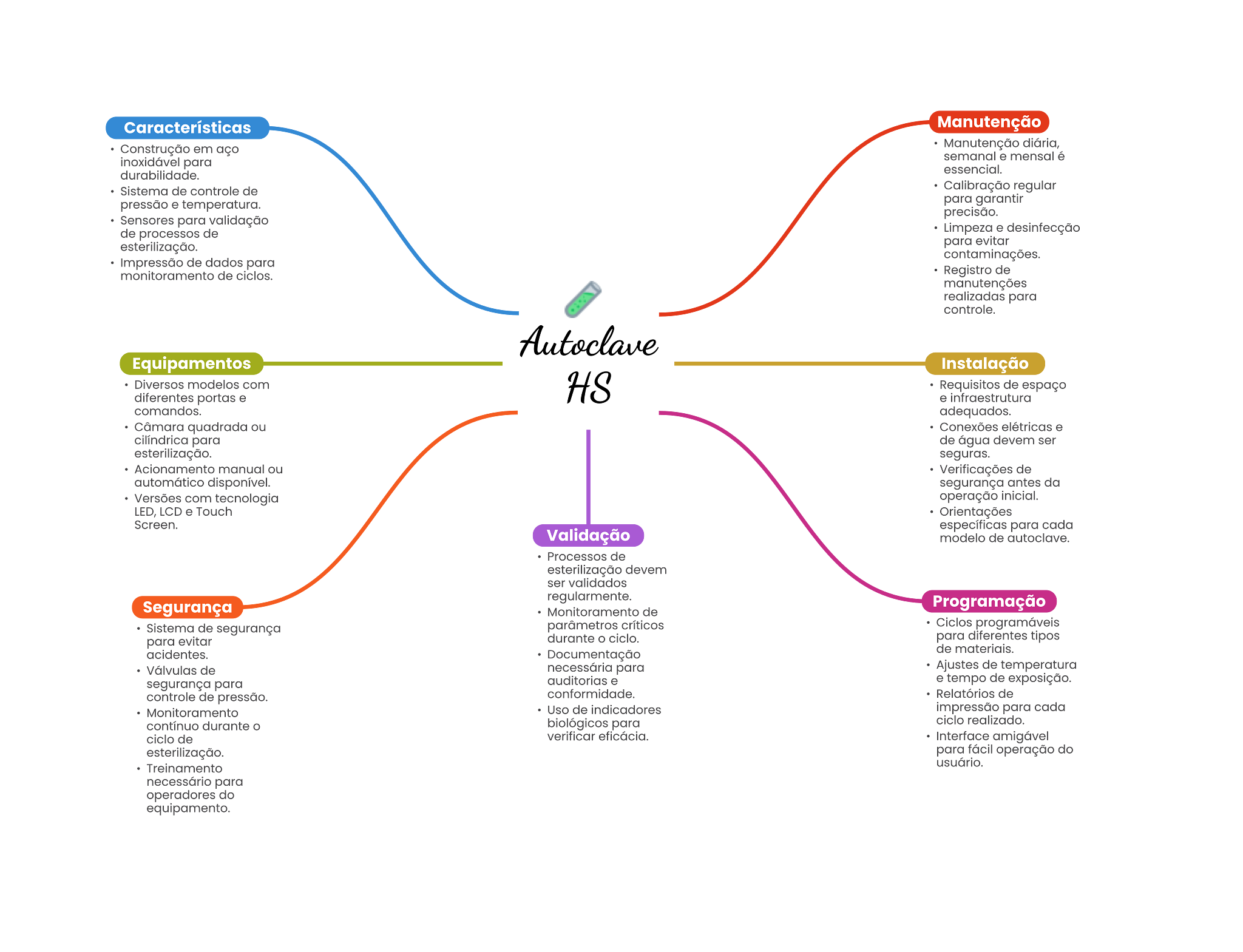 Características Manutenção Construção em aço Manutenção para meneal essencial. Sistema de controle de Callbração regular temperatura. para garantir precisão. para validação de processos de desinfecção para evitar contaminações. de dados para monitoramento de Registro de manutenções para controle. Equipamentos Instalação Diversos modelos com Requisitos de espaço diferentes portas . comandos. adequados. Câmara quadrada ou elétricas para de água devem ser Acionamento manual ou de automático disponível. segurança da Versões com tecnologia operação inicial. LED, LCD e Touch Screen. específicas para cada Validação modelo de autociave. Processos de devem ser validados Segurança Programação Monitoramento de Sistema de segurança parâmetros criticos Ciclos para durante o ciclo. para diferentes tipos acidentes. Documentação de materials. Válvulas de para de temperatura para tempo de exposição. controle de conformidade. Relatórios de Uso de para cada continuo durante biológicos para realizado. ciclo de verificar para fácil operação do Treinamento usuário. necessário para operadores do equipamento.
