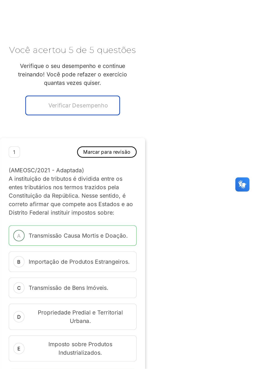 29/08/2025 07:29 https://estacio.saladeavaliacoes.com.br/exercicio/68b1808b7c9b235dfb458b4e/gabarito/ https://estacio.saladeavaliacoes.com.br/exercicio/68b1808b7c9b235dfb458b4e/gabarito/ 1/9 Você acertou 5 de 5 questões Verifique o seu desempenho e continue treinando! Você pode refazer o exercício quantas vezes quiser. Verificar Desempenho A B C D E 1 Marcar para revisão �AMEOSC/2021 � Adaptada) A instituição de tributos é dividida entre os entes tributários nos termos trazidos pela Constituição da República. Nesse sentido, é correto afirmar que compete aos Estados e ao Distrito Federal instituir impostos sobre: Transmissão Causa Mortis e Doação. Importação de Produtos Estrangeiros. Transmissão de Bens Imóveis. Propriedade Predial e Territorial Urbana. Imposto sobre Produtos Industrializados. 29/08/2025 07:29 https://estacio.saladeavaliacoes.com.br/exercicio/68b1808b7c9b235dfb458b4e/gabarito/ https://estacio.saladeavaliacoes.com.br/exercicio/68b1808b7c9b235dfb458b4e/gabarito/ 2/9 Resposta correta Parabéns, você selecionou a alternativa correta. Confira o gabarito comentado! Gabarito Comentado A competência tributária é dividida entre os entes federativos, sendo que a União é responsável por instituir impostos sobre: Imposto de Importação �II�, que tem como fato gerador a entrada de produtos do exterior em território nacional; Imposto de Exportação �IE�, que tem como fato gerador a saída de produtos nacionais do território nacional; Imposto de Renda �IR�, que tem como fato gerador a aferição de renda por pessoa física �IRPF) ou a existência de lucro na Pessoa Jurídica �IRPJ�; Imposto sobre Produtos Industrializados �IPI�, que tem como fato gerador a produção de bens industrializados; Imposto sobre Operações Financeiras �IOF�, que tem como fato gerador operações financeiras específicas; Imposto Territorial Rural �ITR�, que tem como fato gerador a propriedade de imóvel fora do perímetro urbano; Imposto sobre Grandes Fortunas �IGF�, que, embora tenha previsão legal, ainda não foi regulamentado; Contribuições (como CSLL, PIS/PASEP, COFINS, CIDE, etc.), cada uma com seus fatos geradores específicos. Os estados e o Distrito Federal são responsáveis por instituir impostos sobre: Imposto sobre Circulação de Mercadorias e Serviços �ICMS�, que tem como fato gerador a circulação (ou seja, a venda) de produtos em geral dentro do território nacional, da importação de produtos do 29/08/2025 07:29 https://estacio.saladeavaliacoes.com.br/exercicio/68b1808b7c9b235dfb458b4e/gabarito/ https://estacio.saladeavaliacoes.com.br/exercicio/68b1808b7c9b235dfb458b4e/gabarito/ 3/9 exterior e de serviços específicos; Imposto de Transmissão Causa Mortis e Doação �ITCMD�, que tem como fato gerador a transmissão de bens por falecimento ou por doação; Imposto sobre a Propriedade de Veículos Automotores �IPVA�, que tem como fato gerador a propriedade de veículos automotores. Os municípios são responsáveis por instituir impostos sobre: Imposto Predial e Territorial Urbano �IPTU�, que tem como fato gerador a propriedade de imóvel dentro do perímetro urbano; Imposto sobre Transmissão de Bens Imóveis �ITBI�, que tem como fato gerador a compra e venda de bens imóveis. Imposto sobre Serviços �ISS�, que tem como fato gerador a prestação de serviços que não estão enquadrados no Imposto sobre Circulação de Mercadorias e Serviços �ICMS�. Portanto, a alternativa correta é a letra A, pois os estados e o Distrito Federal são responsáveis por instituir impostos sobre transmissão causa mortis e doação. 2 Marcar para revisão �VUNESP/2019� A empresa ABC Ltda., contribuinte do ICMS, por meio de estabelecimento sediado em um estado específico da Federação, vendeu, no ano de 2019, à empresa XYZ Ltda., sediada em outro estado da Federação e não contribuinte do ICMS, mercadorias sujeitas à alíquota no estado de origem e no estado de destino de 18%. A alíquota interestadual para vendas com origem no estado do estabelecimento da empresa ABC Ltda. com destino para o estado 29/08/2025 07:29 https://estacio.saladeavaliacoes.com.br/exercicio/68b1808b7c9b235dfb458b4e/gabarito/ https://estacio.saladeavaliacoes.com.br/exercicio/68b1808b7c9b235dfb458b4e/gabarito/ 4/9 A B C D E do estabelecimento da empresa XYZ Ltda. é de 12%. Considerando que a empresa XYZ Ltda. seja a consumidora final das mercadorias, é correto afirmar que se adotará a alíquota: Interestadual de 12% e caberá ao estado de origem e ao estado de destino respectivamente um terço e dois terços do imposto diferencial correspondente a 6%, que deverá ser recolhido pela empresa XYZ Ltda., destinatária das mercadorias. Interestadual de 12% e caberá ao estado de localização do destinatário o imposto correspondente a 6%, que deverá ser recolhido pela empresa XYZ Ltda., destinatária das mercadorias. Interestadual de 12% e caberá ao estado de localização do destinatário o imposto correspondente a 6%, que deverá ser recolhido pela empresa ABC Ltda., remetente das mercadorias. Interestadual de 12% e caberá ao estado de origem o imposto correspondente a 6%, que deverá ser recolhido pela empresa ABC Ltda., remetente das mercadorias. Interna de 18% e caberá ao estado de localização do destinatário a integralidade do imposto, que deverá ser recolhido pela empresa ABC Ltda., remetente das mercadorias. 29/08/2025 07:29 https://estacio.saladeavaliacoes.com.br/exercicio/68b1808b7c9b235dfb458b4e/gabarito/ https://estacio.saladeavaliacoes.com.br/exercicio/68b1808b7c9b235dfb458b4e/gabarito/ 5/9 Resposta correta Parabéns, você selecionou a alternativa correta. Confira o gabarito comentado! Gabarito Comentado O Imposto sobre a Circulação de Mercadorias e Serviços �ICMS) é um tributo estadual que incide sobre a circulação de mercadorias e alguns serviços específicos. Este imposto é regulamentado pela