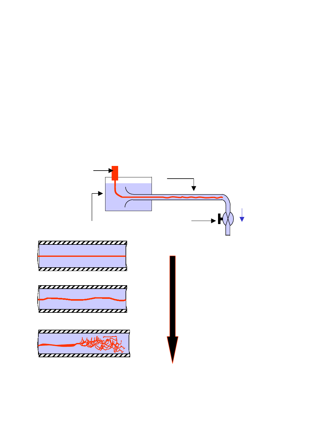 4. Escoamento de um Fluido Real O escoamento de um fluido real é mais complexo que o de um fluido ideal. A viscosidade dos fluidos reais é responsável pelas forças de atrito entre as partículas fluidas, bem como entre estas e os contornos sólidos. Para que o escoamento ocorra, um trabalho deve ser realizado contra as forças de atrito e, durante este processo, parte da energia mecânica se transforma em calor. 4.1 A experiência de Reynolds Devido ao efeito da viscosidade, o escoamento de fluidos reais pode ocorrer de dois modos distintos. As características destes dois regimes foram inicialmente observadas por Reynolds (1883) em um dispositivo semelhante ao esquematizado abaixo: Filamento estreito e paralelo ao eixo do tubo ( Regime laminar) Filamento torna-se ondulado ( Regime crítico) Ondulação aumenta rompendo-se o filamento que se difunde na água (Regime turbulento) A brindo o registro (aum ento da velocidade) Tanque de água com paredes de vidro Tinta Tubo de vidro Registro FLU XO Reynolds generalizou os resultados do seu experimento com a introdução do termo adimensional Re . Exemplo 4.1.1: Calcular o número de Reynolds no interior de uma tubulação de 50mm de diâmetro interno que conduz água a uma temperatura de 200C (ν = 1,003x 10-6 m2/s) com velocidade média de 0,9m/s. 4,865 44 /sm 003 001 000.0 m 1000 50s/m9,0DVR 2e = ⋅ =ν ⋅= υ ⋅= LTV R e Onde: =ρ µ= ViscosidadeCinemática (m2/s) =υ Viscosidade Dinâmica (kg /m s) Massa Específica (kg/m3) Velocidade Média de Fluxo (m/s) =V == A Q Vazão (m3/s) Área de fluxo (m2) ) ( Reynolds de Número R e = LT= Dimensão Linear Típica (m) equivalente a quatro vezes o raio hidráulico do conduto (4Rh ), para o caso dos condutos circulares : LT = 4Rh = D , onde D = diâmetro interno (m) O tipo de fluxo não se prende exclusivamente ao valor da velocidade, mas ao valor do Número de Reynolds. Para encanamentos comerciais se o escoamento se verificar com Re superior a 4000, o regime é Turbulento. O escoamento em regime Laminar ocorre, e é estável, para valores do número de Reynolds inferiores a 2000. Entre este valor e 4000, encontra-se uma zona crítica, na qual não se pode determinar com segurança as condições de escoamento. Obs:valores de ν da água, em diferentes temperaturas, são mostrados na tabela 4.1 Tabela 4.1- PROPRIEDADES FÍSICAS DA ÁGUA DOCE, À PRESSÃO ATMOSFÉRICA (g = 9,80665 m/s2) NOS CÁLCULOS HABITUAIS DE HIDRÁULICA, NO SISTEMA INTERNACIONAL DE UNIDADES, QUANDO A TEMPERATURA NÃO É ESPECIFICADA, UTILIZA-SE : ρ = 1000 kg/m3 γ = 9806 N/m3 ν = 1,003 x 10-6 m2/s PRESSÃO DE VAPOR TEMPE- RATURA PESO ESPECÍFICO γ MASSA ESPECÍFICA ρ VISCOSIDADE DINÂMICA µ VISCOSIDADE CINEMÁTICA ν TENSÃO SUPERFICIAL σ PV PV/γ MÓDULO DE ELASTICIDADE CÚBICA ε OC kN/m3 kg/m3 N.s /m2 m2/s N/m kN/m2 mca kN/m2 0 5 9,805 9,807 999,8 1000,0 1,781x10-3 1,518x10-3 1,785x10-6 1,519x10-6 0,0756 0,0749 0,61 0,87 0,06 0,09 2,02x10 6 2,06x10 6 10 15 9,804 9,798 999,7 999,1 1,307x10-3 1,139x10-3 1,306x10-6 1,139x10-6 0,0742 0,0735 1,23 1,70 0,12 0,17 2,10x10 6 2,15x10 6 20 25 9,789 9,777 998,2 997,0 1,002x10-3 0,890x10-3 1,003x10-6 0,893x10-6 0,0728 0,0720 2,34 3,17 0,25 0,33 2,18x10 6 2,22x10 6 30 40 9,764 9,730 995,7 992,2 0,798x10-3 0,653x10-3 0,800x10-6 0,658x10-6 0,0712 0,0696 4,24 7,38 0,44 0,76 2,25x10 6 2,28x10 6 50 60 9,689 9,642 988,0 983,2 0,547x10-3 0,466x10-3 0,553x10-6 0,474 x10-6 0,0679 0,0662 12,33 19,92 1,26 2,03 2,29x10 6 2,28x10 6 70 80 9,589 9,530 977,8 971,8 0,404x10-3 0,354x10-3 0,413x10-6 0,364x10-6 0,0644 0,0626 31,16 47,34 3,20 4,96 2,25x10 6 2,20x10 6 90 100 9,466 9,399 965,3 958,4 0,315x10-3 0,282x10-3 0,326x10-6 0,294x10-6 0,0608 0,0589 70,10 101,33 7,18 10,3 3 2,14x10 6 2,07x10 6 Exemplo 4.1.2: Utilize os valores da tabela 4.1 para calcular o valor do número de Reynolds no interior de uma tubulação, de 100mm de diâmetro interno, que conduz água a com velocidade média de 1,5m/s, quando a temperatura passa, sucessivamente, de 10oC para 20oC e para 40oC. Respostas: 1,1x105 ; 1,5x105 ; 2,3x105 Exemplo 4.1.3: Calcular a maior vazão (em m3/h) de água, a uma temperatura de 200C, na qual ν = 1,003x 10-6 m2/s, no interior de uma tubulação de 175mm de diâmetro interno, para que se obtenha fluxo laminar, isto é, para que um número de Reynolds no interior da tubulação seja igual a 2000. Resposta:0,993m3/h 4.2 Equações fundamentais do escoamento de fluidos incompressíveis em tubos Conforme visto anteriormente, a equação de Bernoulli para o escoamento de fluidos reais incompressíveis é representada por: As primeiras experiências (por volta de 1850) sobre o escoamento da água em tubos longos retos e cilíndricos, indicam que a perda de carga varia (aproximadamente) diretamente com a carga cinética (V2/2g ) e com o comprimento do tubo (L), e inversamente com o diâmetro do tubo (D). Usando um coeficiente de proporcionalidade (f), denominado de fator de atrito, Darcy, Weisback e outros propuseram a seguinte equação para cálculo da perda de carga hf : Observações experimentais indicavam que o fator de atrito depende não só do (i) material do tubo mas, também do (ii) diâmetro do tubo, da (iii) velocidade do fluxo e (iv) da viscosidade cinemática do fluido. Onde, hf1-2 representa a perda de carga ( E1 – E2 = dissipação da energia mecânica da água) entre os pontos 1 e 2. g2 V D Lfhf 2 ⋅⋅= g V ⋅2 2 2 γ 1P Linha de energia Plano de carga efetivo Direção do Fluxo: Maior energia Menor Energia γ 2P g2 V 21 ⋅ 1Z Linha piezométrica 2Z 21 2 22 2 2 11 1 hfg2 VPZ g2 VPZ −+⋅+γ+=⋅+γ+ 21hf − 4.3.1 As experiências de Nikuradse Para avaliar o efeito da rugosidade relativa (k/D) das paredes dos tubos sobre o fator de atrito (f), Nikuradse, em 1933, decidiu colar grãos de areia de tamanho uniforme na parede de tubos lisos de vidro. Desta forma, Nikuradse pode determinar o fator de atrito, sob condições controladas e bem determinadas de k/D. Os r