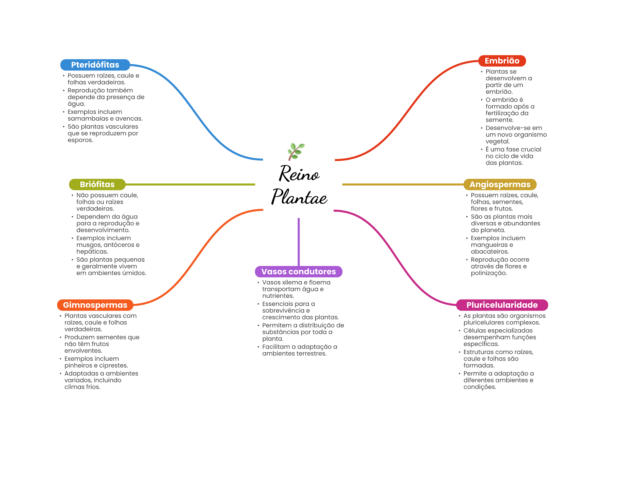 Embrião Pteridófitas Plantas se Possuem rafzee, caule desenvolvern a partir de um Reprodução também embrido. depende da presença de embrião água. formado após a Exemplos da samambalas avencas. sements. São em que DO reproduzem por um novo organismo esporos. vegetal. É uma fase crucial no de vida Briófitas Angiospermas Não poesuem caule, Possuem caule, ou sementes, flores frutos. Dependem da água São as plantas mais para a reprodução do planeta. Exemplos musgos, mangueiros abacateiros. São plantas Reprodução ocorre vivem de flores em ambientes úmidos. Vasos condutores floerna transportam água nutrientes. Gimnospermas para a Pluricelularidade sobrevivência Plantas vasculares com crescimento das plantas. As plantas são organismos folhas Permitem a de complexos. por toda a que planta. desempenham funções não frutos Facilitam a adaptação a envolventes. ambientes Estruturas como . caule folhos são pinheiros . ciprestes. formadas. Adaptadas a ambientes Permite a adaptação a variados, incluindo diferentes ambientes climas condições.