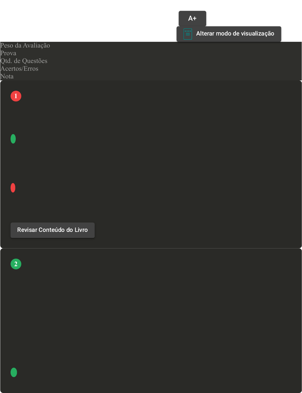 Prova Impressa GABARITO | Avaliação Final (Objetiva) - Individual (Cod.:1522288) Peso da Avaliação 4,00 Prova 107989137 Qtd. de Questões 10 Acertos/Erros 4/6 Nota 4,00 O esôfago é um tubo muscular de aproximadamente 25 cm de comprimento que se encontra posteriormente à traqueia. Sua principal função é transportar os alimentos até o estômago, através de movimento ou contrações na sua musculatura. Com relação às camadas que fazem parte das paredes do esôfago, assinale a alternativa INCORRETA: A A tela submucosa contém tecido conjuntivo frouxo, vasos sanguíneos e glândulas salivares, que são responsáveis pela secreção de substâncias digestivas, auxiliando a quebra dos alimentos até o estômago. B A túnica mucosa do esôfago consiste em epitélio estratificado pavimentoso não queratinizado, lâmina própria (tecido conjuntivo frouxo) e lâmina muscular da mucosa (músculo liso). C Na camada muscular da porção proximal do esôfago encontramos células musculares esqueléticas, na porção média células musculares esqueléticas e lisas e na porção distal apenas células musculares lisas. D A camada superficial do esôfago é conhecida como túnica adventícia, em vez de túnica serosa como no estômago e nos intestinos. O ato de engolir deve ser devidamente coordenado para evitar que os alimentos e líquidos entrem na traqueia, causando engasgamento e a obstrução da traqueia. A resultante falta de fluxo de ar para os pulmões pode ser fatal, se o material não for deslocado por uma tossida vigorosa ou através de manobras de pressão, realizadas na altura do diafragma. Com relação ao processo de deglutição, assinale a alternativa CORRETA: A Na fase oral, em que o bolo alimentar é passado para a parte oral da faringe, ocorre através de movimentos involuntários, uma vez que não temos controle sobre este processo. B A deglutição é facilitada pela secreção de gastrina, que auxilia a digestão dos alimentos durante a passagem pela boca, faringe e no esôfago. C Durante a fase esofágica, fase voluntária da deglutição, o alimento se move ao longo do esôfago até o estômago através de movimentos circulares. D Durante a fase faríngea, a parte nasal da faringe é fechada, a laringe sobe, a epiglote veda a laringe e o bolo alimentar é passado para o esôfago. VOLTAR A+ Alterar modo de visualização 1 Revisar Conteúdo do Livro 2 A glândula hipófise, também conhecida como glândula pituitária, é composta por duas porções: adeno-hipófise e neuro-hipófise. A neuro-hipófise armazena e libera dois hormônios. Quais são esses hormônios? A Prolactina e ocitocina. B Hormônio antidiurético e ocitocina. C Hormônio antidiurético e folículo estimulante. D Hormônio do crescimento e prolactina. A função do epitélio glandular é a secreção, que é realizada pelas células glandulares que frequentemente se encontram em grupos inseridos no epitélio de cobertura e de revestimento. Uma glândula pode consistir em uma única célula ou em um grupo de células que secretem substâncias em ductos (tubos), em uma superfície ou no sangue, quando não há ductos. Sobre os tipos de glândulas que compõem o corpo humano, assinale a alternativa CORRETA: A As glândulas mistas, como a hipófise e a tireoide, possuem tanto tecidos que possuem a função exócrina, lançando seus produtos em ductos, como a função endócrina, lançando os hormônios na corrente sanguínea. B As glândulas endócrinas são formadas por células produtoras e secretoras de moléculas químicas, denominadas de hormônios, que entram no líquido intersticial e, então, se difundem na corrente sanguínea. C As glândulas endócrinas podem ser divididas em autócrinas e merócrinas, dependendo do tipo de hormônio secretado. São exemplos as glândulas salivares e suprarrenais. D As glândulas exócrinas são formadas por células especializadas que liberam seus hormônios diretamente na corrente sanguínea, sem passar pelo lúmen, dessa forma, conseguem chegar às células-alvo com maior facilidade. O sistema nervoso e o endócrino representam os principais mecanismos de comunicação e coordenação do corpo. O nervoso se comunica por impulsos nervosos enquanto que no endócrino a comunicação se dá através de substâncias denominadas hormônios. Com relação aos hormônios, associe os itens, utilizando o código a seguir: I- Calcitonina. II- Paratormônio. 3 Revisar Conteúdo do Livro 4 Revisar Conteúdo do Livro 5 III- Insulina. IV- Epinefrina. ( ) Secretado pelas adrenais, é também chamado de adrenalina. Participam da resposta ao estresse, elevando a sudorese, a frequência cardíaca e a pressão arterial. ( ) Secretado pelas células beta das ilhotas de Langerhans do pâncreas. Diminui os níveis de glicose no sangue. ( ) Secretado pelas paratireoides. É responsável por aumentar a concentração de cálcio no sangue através da reabsorção óssea, além de estimular a absorção do cálcio, proveniente do alimento, pelos rins e intestinos. ( ) Secretado pela tireoide. Favorece a formação do osso, diminuindo os níveis de cálcio circulante. Assinale a alternativa que apresenta a sequência CORRETA: A III - IV - I - II. B I - IV - II - III. C II - III - IV - I. D IV - III - II - I. Na puberdade, começam as mudanças no corpo feminino, ocasionadas pela ação do hormônio estrogênio. Essas mudanças resultarão nas características sexuais secundárias, como desenvolvimento das mamas, aparecimento de pêlos e o aumento das genitálias. Sobre os órgãos do sistema reprodutor, associe os itens, utilizando o código a seguir: I- Vagina. II- Ovários. III- Tubas uterinas. IV- Útero. ( ) Correspondem às gônadas femininas, são as estruturas que armazenam os óvulos, estão localizados no abdômen, uma de cada lado do útero. ( ) É considerado o órgão de copulação feminino, possibilita a expulsão do sangue menstrual e também a saída do bebê durant