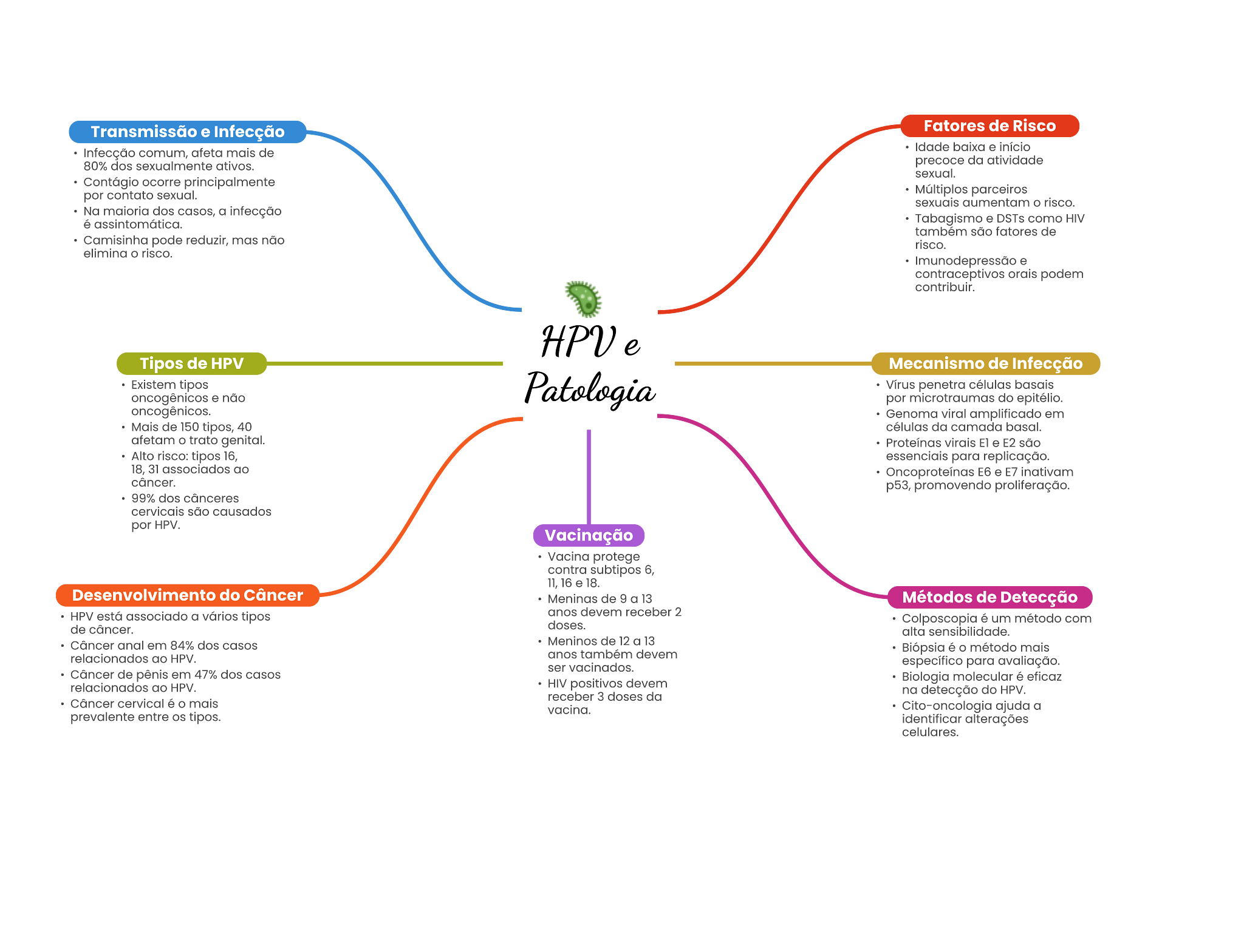 Transmissão e Infecção Fatores de Risco comum, afeta mais de . 80% dos ativos. precoce da atividade Contágio ocorre por contato parceiros risco. dos a infecção é assintomática. Tabagismo como HIV também são fatores de Camisinha pode reduzir, mas não risco. elimina risoo. . Tipos de HPV Mecanismo de Infecção tipos oncogênicos não por microtraumas do oncogênicos. Genoma viral em Male de 150 tipos, 40 da camada afetam trato genital. El E2 Alto tipos 16, essenciale para replicação. 18, 31 associados ao E7 p53, promovendo 99% dos cânceres são causados por HPV. Vacinação Vacina protege contra subtipos 6, 16 do Câncer de 9 a 13 Métodos de Detecção HPV está associado a vários tipos anos receber 2 de câncer. dosse. Colposcopia um método com alta Câncer anal em 84% dos Meninos de 12 13 relacionados HPV. anos também devem é método ser vacinados. específico para avaliação. Câncer de pênis em 47% dos HIV positivos devem molecular é relacionados HPV. Câncer cervical é mais receber 3 da na detecção do HPV. vacina. Cito-oncologia ajuda a entre tipos. identificar
