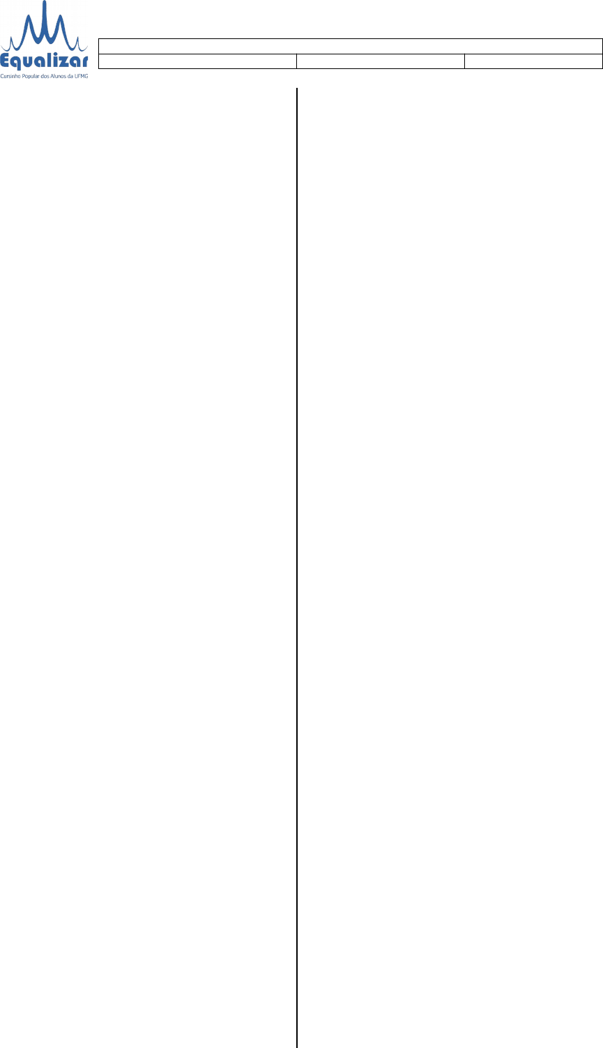 Lista 1 – Cálculos para Química Professora: Ana Luiza Miranda Pré-ENEM Equalizar Data: 21/02/2022 Questão 1. Reescreva os seguintes números em potência de base 10. a) 0,1 b) 1 000 c) 0,000000001 d) 10000000000 e) 0,0000001 Questão 2. Reescreva os seguintes números em sua forma decimal. a) 1,2.107 b) 7,3.10-4 c) 5.103 d) 7,80.10-10 e) 6,49.10-8 Questão 3. Escreva os seguintes números em notação científica. a) 0,0000012 b) 430000 c) 60 d) 0,0003 e) 299792458 Questão 4. Um dos números mais relevantes para a Química é o número de Avogadro. Este número representa a quantidade de unidades de átomos (ou qualquer outro objeto) equivalem a 1 mol. Este número equivale a 602200000000000000000000 átomos. Reescreva-o como uma potência de base 10. Questão 5. Resolva as seguintes operações, dando a resposta em notação científica. a) 1,6.103 × 1,9.102 b) 2.10-4 × 5.10-7 c) 3,3.10-4 × 1,2.105 d) 7,1.1011 × 1,3.10-13 e) 4,7.10-2 × 5,7.10-6 Questão 6. Escreva em notação científica: a) 0,9 × 10⁴ b) 34 × 10² c) 700 × 10⁻³ d) 0,0023 × 10⁻⁴ e) 0,00043 × 10⁵ Questão 7. A Terra possui massa de 5980000000000000000000000 kg, já o planeta Urano possui massa de 86810000000000000000000000 kg. Qual dos dois planetas possui maior massa? E em quantas vezes um planeta é maior que o outro? Questão 8. A velocidade da luz, é de cerca de 300000 km por segundo. Dê as respostas em notação científica. a) Que distância percorre num minuto? b) E numa hora? c) E num dia? d) E num ano? e) E em 10 anos? Questão 9. Maria é estudante do ensino médio e tem aulas de Química de 50 minutos cada. Conversando com seus colegas de outra escola, ela propôs um desafio a eles: descobrir quantas aulas ela tem por semana. Ela informou aos seus colegas que teve 6.103 minutos de aula em 2021. Quantas aulas Maria teve por semana? Questão 10. Se o volume estimado da Lua é de 21,9 × 109 km3 e o da Terra é aproximadamente 1,08 × 1012 km3, quantas vezes a Lua é menor do que a Terra? image1.png