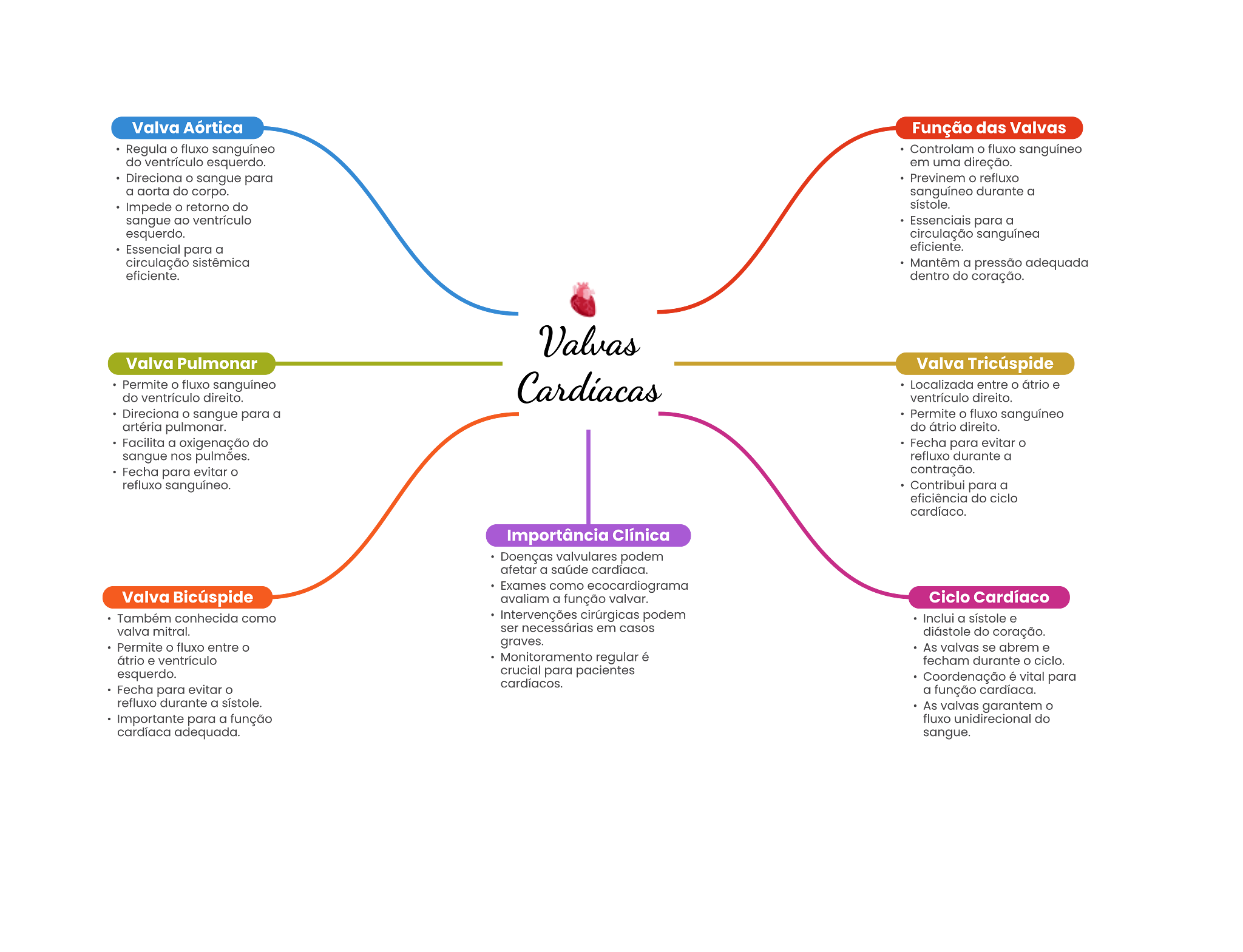 Valva Aórtica Função das Valvas Regula fluxo Controlam fluxo do esquerdo. em uma direção. sangue para Previnem refluxo a aorta do corpo. durante a Impede retorno do sangue ventrículo para a esquerdo. circulação Essencial para a circulação sistêmica a adequada dentro do Valva Pulmonar Valva Tricúspide Permite fluxo Localizada entre o átrio do ventrículo ventrículo direito. Direciona o sangue para a Permite o fluxo artéria pulmonar. do átrio direito. Facilita a oxigenação do Fecha para evitar o sangue nos refluxo durante a Fecha para contração. refluxo Contribul para a eficiência do cardiaco. Importância Clínica valvulares podem a como Valva Bicúspide a função valvar. Ciclo Cardíaco conhecida como cirúrgicas podem a valva mitral. ser em do coração. Permite o fluxo entre graves. As valvas abrem e átrio ventrículo Monitoramento regular é fecham durante esquerdo. crucial para cardiacos. Coordenação vital para Fecha para evitar a função refluxo durante a sístole. As valvas garantem o para a função fluxo do cardiaca adequada. sangue.