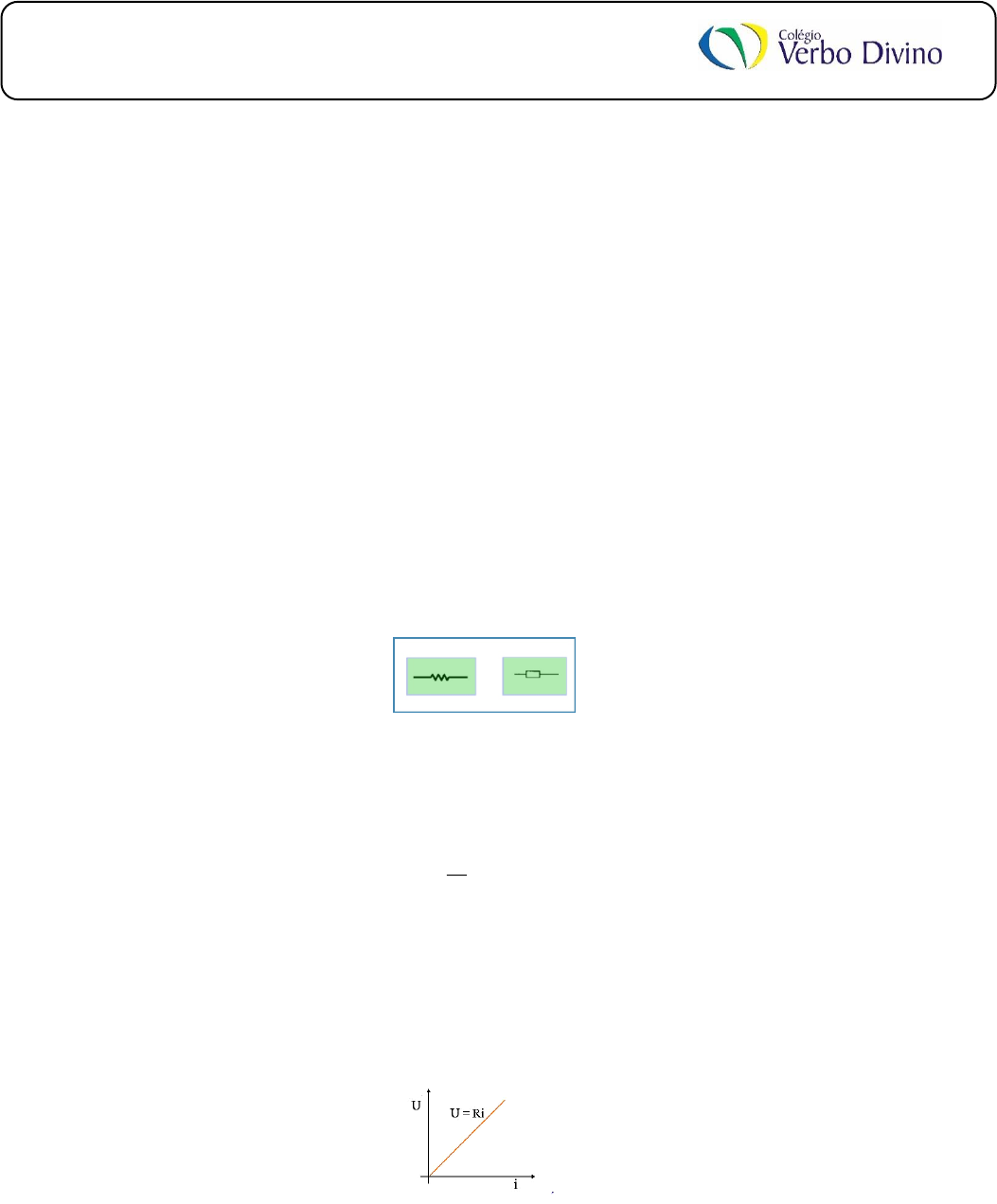 MATERIAL DE ESTUDO FÍSICA 1 I 2º ANO EM I Prof. Alex Bôsco Conteúdo relativo à Frente A - unidade 1- Capítulo 2 – Livro 1ª – 1º Trimestre RESISTOR É um aparelho que ocorre o efeito Joule, que consiste na transformação da energia elétrica exclusivamente em energia térmica. Exemplos: chuveiro elétrico, ferro de passar roupas e lâmpadas incandescentes. O efeito Joule ocorre quando a corrente elétrica atravessa o resistor, pois as cargas elétricas móveis que constituem a corrente elétrica, colidem com os íons do condutor, havendo uma transferência de energia que é transformada em energia térmica. Essas colisões mostram que existe uma oposição oferecida pelo resistor a passagem de corrente, ou seja, o resistor oferecerá uma certa resistência elétrica. RESISTÊNCIA ELÉTRICA - R É a medida da dificuldade que as cargas encontram ao atravessar um determinado condutor. Unidade ohm (Ω). PRIMEIRA LEI DE Ohm Num resistor, mantido a uma temperatura constante, a intensidade da corrente elétrica é diretamente proporcional à ddp que a originou. iRU . i U R Resistores Ôhmicos Um resistor é considerado ôhmico quando, mantida a sua temperatura constante, ao sofrerem uma variação de tensão, apresentam resistência elétrica constante. Exercícios: 1- (FGV–SP) A ddp entre os extremos de um resistor de 5 Ω é igual a 10 V. A corrente elétrica no resistor tem intensidade de: a) 1 A b) 2 A c) 3 A d) 4 A e) 5 A 2- (UCSAL-BA) Num resistor de 22 ohms, flui uma corrente elétrica de 0,50 A. a diferença de potencial nas extremidades do resistor é, em volts, igual a: a) 0,023 b) 5,5 c) 11 d) 22 e) 44 3- (PUCMG) Uma tensão de 12 volts aplicada a uma resistência de 3,0 Ω produzirá uma corrente de: a) 36 A b) 24 A c) 4,0 A d) 0,25 A e) 2,0 A 4- Através de uma secção reta de um fio condutor passam 0,4 C de carga em 0,1 s. Se a resistência do condutor vale 20 Ω, qual a diferença de potencial a que ele está submetido? a) 8,0.102 V b) 4,0 V c) 60 V d) 80 V e) 5,0.10-2 V 5- Um chuveiro tem resistência de 10 Ω. Qual é a corrente, quando ligado em 220 V? 6- (FMTM-MG) Um resistor, quando submetido a uma tensão de 10 V, é percorrido por uma corrente elétrica de 0,5 A. O mesmo resistor, quando submetido a uma tensão de 50 V, é percorrido por uma corrente elétrica de 2,0 A. a) Qual o valor da resistência desse resistor em cada caso? b) Trata-se de um resistor ôhmico? Justifique. 2ª LEI DE OHM - Fatores que influenciam na resistência elétrica. Onde: ρ= resistividade, depende do material do condutor e de sua temperatura. ℓ= largura do condutor A= área da secção transversal. Como a unidade de resistência elétrica é o ohm (Ω), então a unidade adotada pelo SI para a resistividade é . 1- Um fio condutor de eletricidade, cuja resistividade elétrica vale 10-8 Ω.m, tem 40 cm de comprimento e 5 mm2 de área de secção transversal. A resistência elétrica desse fio vale: a) 8.10-5 Ω b) 8.10-4 Ω c) 8.10-3 Ω d) 8.10-2 Ω e) 8.10-1 Ω 2- Um resistor ci l índrico feito de zinco (z inco=6.10 -8 .m), apresenta um comprimento de 2 mm e área transversal de 6 cm 2. Calcule a resistência elétrica deste resistor. 3- Um f io de estanho (es tanho=1,2.10 -7 .m), apresentando 3 cm2 de área transversal em sua forma de cil indro, com resistência de 250 , é considerado um resistor ôhmico. Qual o seu comprimento?