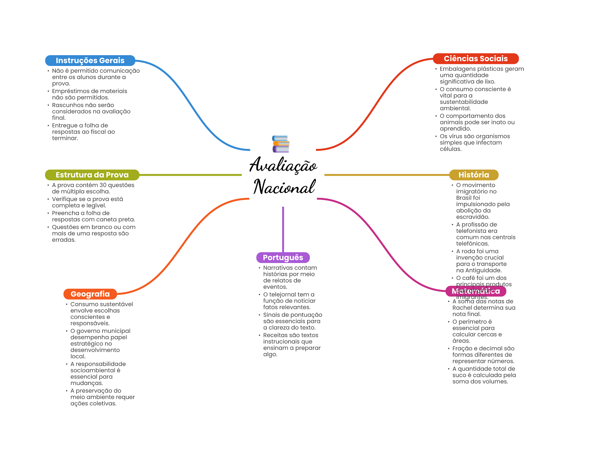 Instruções Gerais Ciências Sociais Não é permitido comunicação Embalagene geram entre alunos durante a uma quantidade prova. significativa de Empréstimos de consumo consciente não são permitidos. vital para a Rascunhos não serão ambiental. considerados na avaliação final. o comportamento dos Entregue a folha de pode ser inato ou respostas fiscal aprendido. terminor. Os virus são organismos simples que células. Estrutura da Prova História A prova contém 30 questões movimento de escolha. no Verifique a prova completa pela Preencha a de abolição da respostas corn escravidão. Questões em branco ou com A de mais de uma resposta telefonista era erradas. comum nas A roda foi uma Português Invenção crucial contam para transporte por meio na de relatos de o café foi um dos eventos. produtos Geografia telejornal a Consumo sustentóvel função de noticiar A notas de fatos relevantes. Rachel determina de pontuação nota final. responsávels. são para o é a do texto. governo municipal essencial para desempenha papel são textos calcular cercas e estratégico no que desenvolvimento ensinam a preparar Fração decimal são local. algo. formas diferentes de A responsabilidade números. 6 A quantidade total de essencial para suco é calculada pela soma dos volumes. A preservação do melo ambiente requer ações