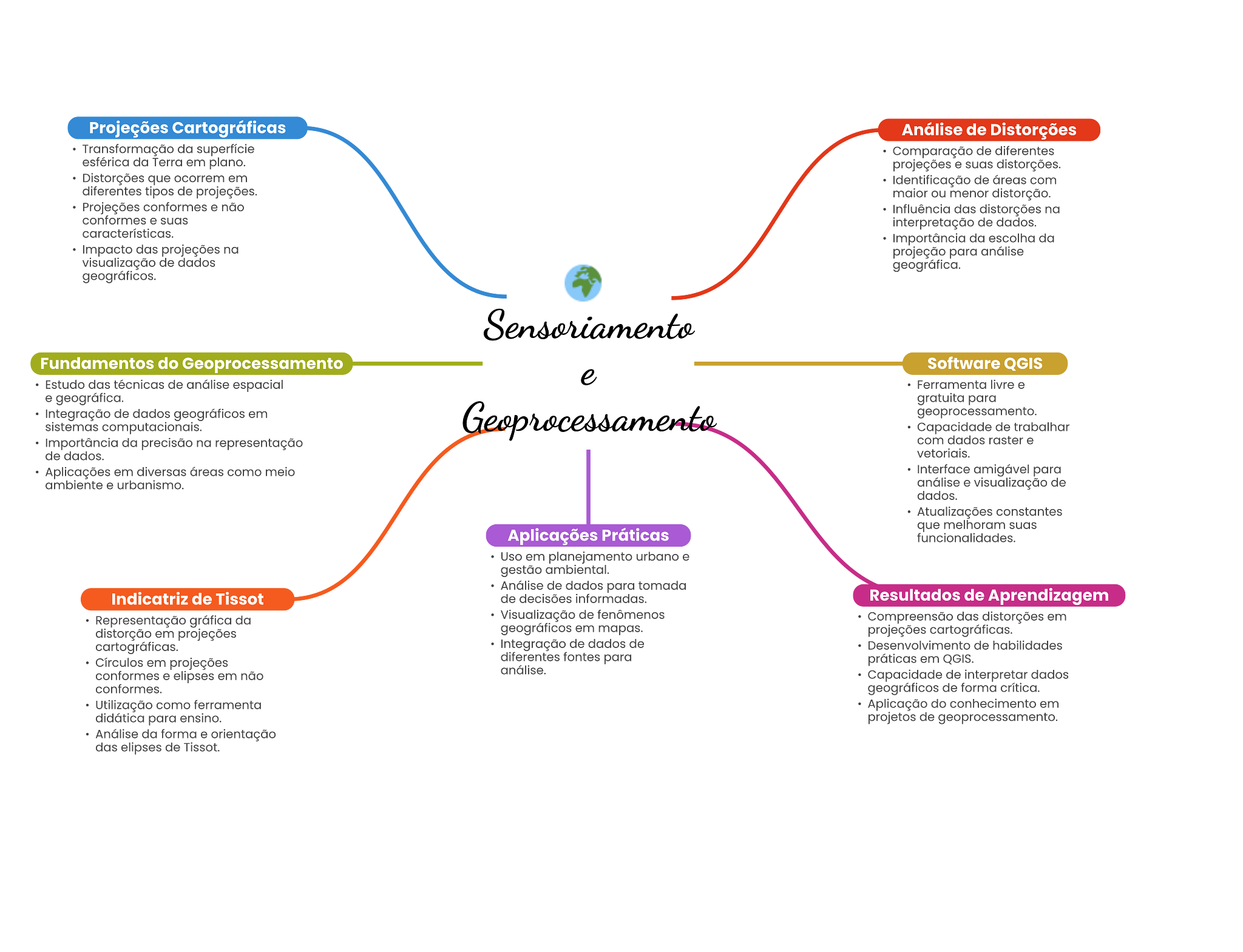 Projeções Cartográficas Análise de Distorções Transformação da superficie Comparação de diferentes esférica da Terra em plano. projeções distorções. Distorções que ocorrem em de com diferentes tipos de projeções. ou menor distorção. Projeções conformes não na conformes de dados. da escolha da dos projeções na projeção para visualtzação de dados geográfica. Fundamentos do Geoprocessamento Software QGIS Estudo das técnicas de espacial Ferramenta . geográfica. para de dados geográficos em Capacidade de Importância da na representação com dados . de dados. em Greas como amigável para ambiente . urbanismo. . de Atuallzações constantes que Aplicações Práticas funcionalidades. Uso em urbano gestão ambiental. de dados para Indicatriz de Tissot de decisões informadas. Resultados de Aprendizagem Representação gráfica da Visualização de em distorção em projeções geográficos em mapas. projeções de de de Círculos em projeções diferentes fontes para práticas em QGIS. conformes em não Capacidade de dados geográficos de forma Utilização como ferramenta Aplicação do conhecimento em para ensino. projetos de geoprocessamento. da forma orientação das de