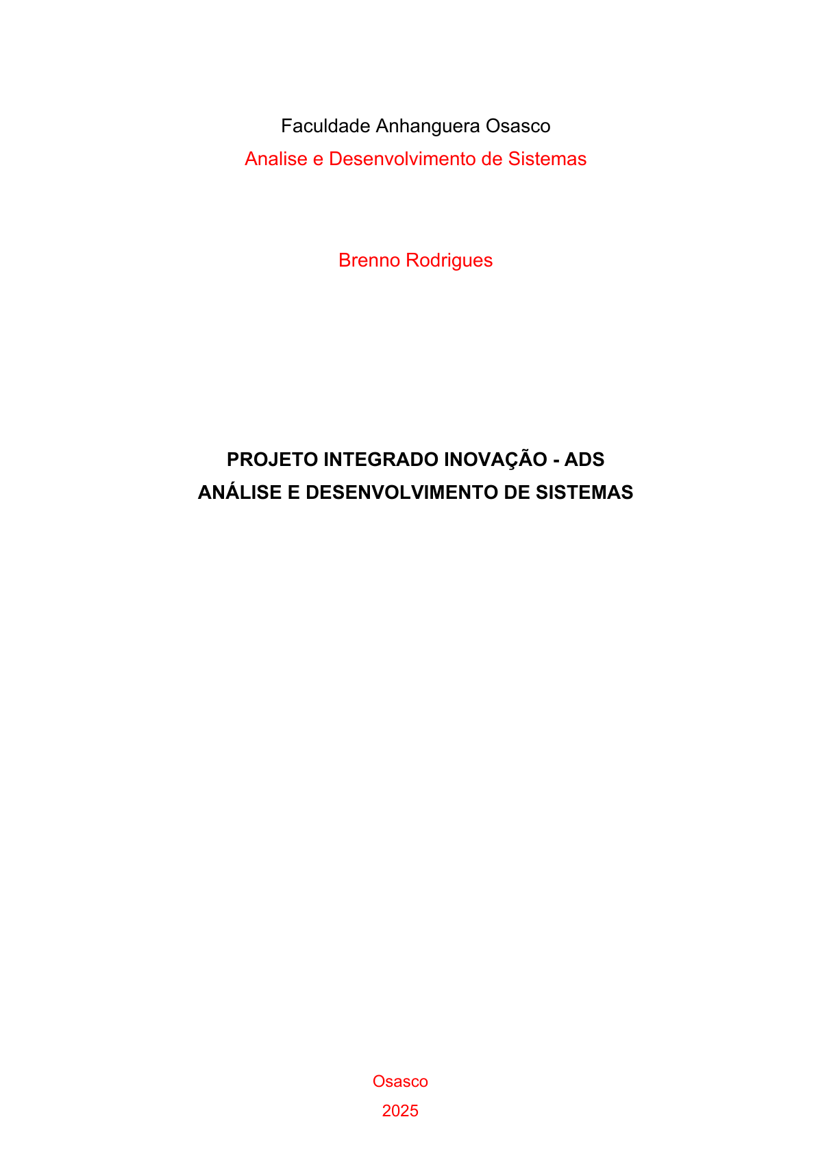 PROJETO INTEGRADO INOVAÇÃO - ADS