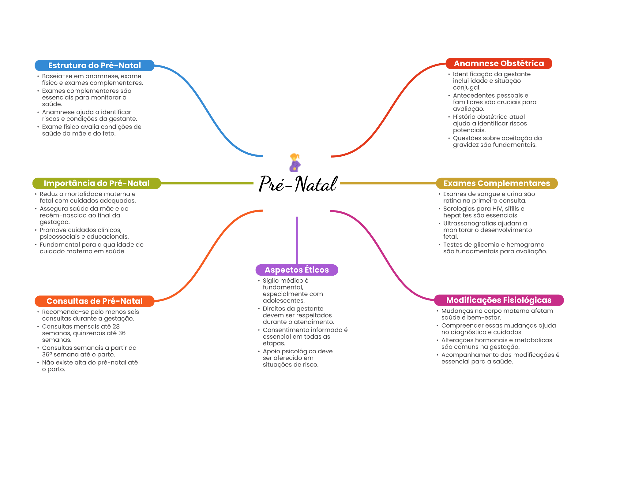 Estrutura do Pré-Natal Anamnese Obstétrica em exame Identificação da gestante exames complementares. idade Exames complementares são conjugal. para monitorar a e familiares são para ajuda a Identificar riscos . condições da História atual Exame físico condições de ajuda a riscos da do feto. potencials. Questões sobre aceitação da gravidez fundamentals. Importância do Pré-Natal Exames Complementares Reduz a mortalidade e Exames de sangue urina são fetal com adequados. rotina na primeira consulta. Assegura da mãe do Sorologias para HIV, final da hepatites gestação. ajudam a Promove cuidados monitorar desenvolvimento fetal. Fundamental para a qualidade do de glicernia hemograma cuidado em são fundamentale para avaliação. Aspectos Éticos médico fundamental, com Consultas de Pré-Natal Modificações Fisiológicas Recomenda-se pelo menos Direitos da Mudanças no corpo afetam durante a gestação. ser respeitados Consultas até 28 essas mudanças ajuda Consentimento até 36 no diagnóstico cuidados. em todas as semance. Alterações hormonals Consultas a partir da são na gestação. 36° semana até parto. deve ser oferecido em Acompanhamento das modificações Não existe alta do pré-natal de risco. essencial para saúde. parto.