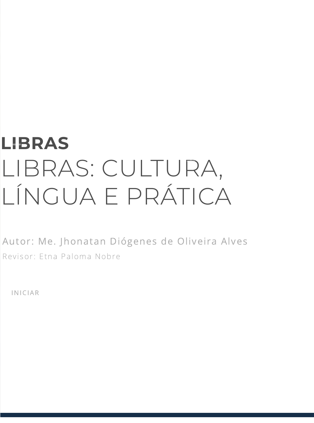 LIBRASLIBRAS LIBRAS: CULTURA,LIBRAS: CULTURA, LÍNGUA E PRÁTICALÍNGUA E PRÁTICA Autor: Me. Jhonatan Diógenes de Oliveira Alves Rev isor : Etna Pa loma Nobre IN IC IAR Introdução Caro(a) estudante, seja bem-vindo(a) a esta nossa unidade. Aqui, estudaremos a respeito da cultura surda a partir de seus artefatos e sinais que a representam, bem como daremos ênfase à língua de sinais a partir do aprendizado do alfabeto, de alguns sinais de cumprimento e relacionados à família e outras questões do cotidiano. Ao abordarmos este conteúdo, damos mais um passo na construção de um saber teórico, mas que leva a uma prática. Em outras palavras, nosso intuito será o de promover a língua de sinais, língua pertencente à comunidade surda, como instrumento de reconhecimento de sua cultura e identidade, bem como artefato próprio para se comunicar em situações corriqueiras, de modo a promover a acessibilidade e inclusão a partir do nosso conhecimento. Desde já, desejamos a você um excelente estudo! introdução A palavra “artefato” comumente nos remete a uma ideia de objeto antigo, raro, que foi encontrado em meio a uma investigação aprofundada. Muito próximo dessa interpretação, porém não limitada a ela, os artefatos culturais da comunidade surda se de�nem a partir da organização da vida da pessoa surda como um todo. Ou seja, as áreas de desenvolvimento pelas quais ela passa, as relações primárias que desenvolve ao longo de sua formação etc. são de�nidas como parte de sua cultura, isso porque são elas que constituem a sua identidade (CABRAL, 2016). Devemos considerar que as implicações externas na formação de uma identidade devem ser levadas em consideração em todos os contextos, em todos os âmbitos da vida de uma pessoa. Isso se aplica a qualquer um de nós: todos temos e somos aquilo que nosso ambiente permitiu, não de maneira determinante, mas as in�uências locais nos capacitam e nos dão uma identidade própria. Por exemplo, o fato de reconhecermos alguém pelo sotaque de sua fala, do estilo de roupa que usa, dos hábitos que demonstra ter etc. Artefatos CulturaisArtefatos Culturais da Comunidadeda Comunidade SurdaSurda No caso da pessoa surda, tais implicações culturais se tornam bem mais in�uentes em sua identidade, uma vez que ela se encontra, desde o seu nascimento, em uma sociedade “estrangeira”. Conduzidas pelos valores e pela lógica do mundo dos ouvintes, a pessoa surda e sua família, ao terem o diagnóstico da surdez, podem incorrer em um processo de negação do fato (CABRAL, 2016). Em um primeiro momento, além da família, é o surdo quem geralmente sofre mais com essa constatação da surdez, pois, ao se deparar com o mundo externo ao seu círculo familiar, ele se perceberá diferente dos demais e, em alguns casos, mais comuns em pequenas cidades, poderá ser a única pessoa com de�ciência em seu bairro. Mesmo que a descoberta da surdez possa ocorrer nos primeiros anos de vida, ainda assim há situações nas quais a negação permanece presente. O que se veri�ca, na prática, é que, conforme a condução do diagnóstico, bem como a visão médica a respeito do que é ser surdo, a aceitação da família tende a ser diferente. Isso reforça a importância do atendimento humanizado e que não reconheça a surdez como sinônimo de incapacidade pro�ssional, afetiva e social. De modo geral, no Brasil, o discurso médico sobre a surdez reforça os aspectos negativos da de�ciência. Esta perspectiva negativa em relação ao desenvolvimento do surdo negligencia a possibilidade de seu desenvolvimento bilíngue e reforça a visão dos pais de que seus �lhos terão muitos problemas de desenvolvimento acadêmico e social (MONTEIRO; SILVA; RATNER, 2016, p. 2). Perceba como fatores como o familiar, o social e o linguístico interferem diretamente não apenas na compreensão da pessoa surda sobre sua cultura, mas também sobre ela mesma. Seja a surdez congênita (que está presente desde o nascimento) ou a adquirida (por doença, velhice, acidentes etc.), todas exigem do indivíduo um período de adaptação no qual sua identidade deve ser paulatinamente aceita por ele. Esse processo de aceitação pode até ser lento, porém, se torna muito mais complexo quando a experiência do sujeito é cercada por paradigmas preconceituosos, discursos não fundamentados na realidade do ser surdo ou, então, ignorada pelas pessoas, como se ela não existisse e, portanto, não devesse ser levada em consideração. É como se a sua condição física e biológica não fosse reconhecida por seus pares, que a todo instante buscam a “normalização” de seu estado. A construção da identidade surda nem sempre nasce da aceitação dessa realidade diferenciada dos ouvintes. Ela pode nascer da contradição de querer se aproximar da realidade dos ouvintes, que são a maioria da população. [...] essa di�culdade que alguns surdos têm em assumir sua identidade política e cultural como membros da cultura surda tem fundamento nos parâmetros sociais de acordo com os quais o ouvinte de fala oral é a maioria e o surdo de fala sinalizada é uma minoria linguística (CABRAL, 2016, p. 24-25). Essa busca pela normalização se torna rotina na vida da pessoa surda, inicialmente por sua família e grupo de pessoas próximas, até chegar nela mesma, que encontra di�culdades em se aceitar. Não poderia ser diferente, pois, em uma sociedade com estruturas e comportamentos padronizantes, quem não se encaixa nos ditames impostos tende a se isolar ou a se adequar àquilo que é imposto. Podemos entender essa di�culdade estrutural por parte de nossa sociedade de reconhecer o sujeito em sua individualidade como uma expressão do preconceito estrutural e, muitas vezes, por falta de informação. Em relação às pessoas com de�ciência (PcD), tal preconceito é camu�ado diariamente pelas ideias do politicamente correto, porém, se revelam na pa