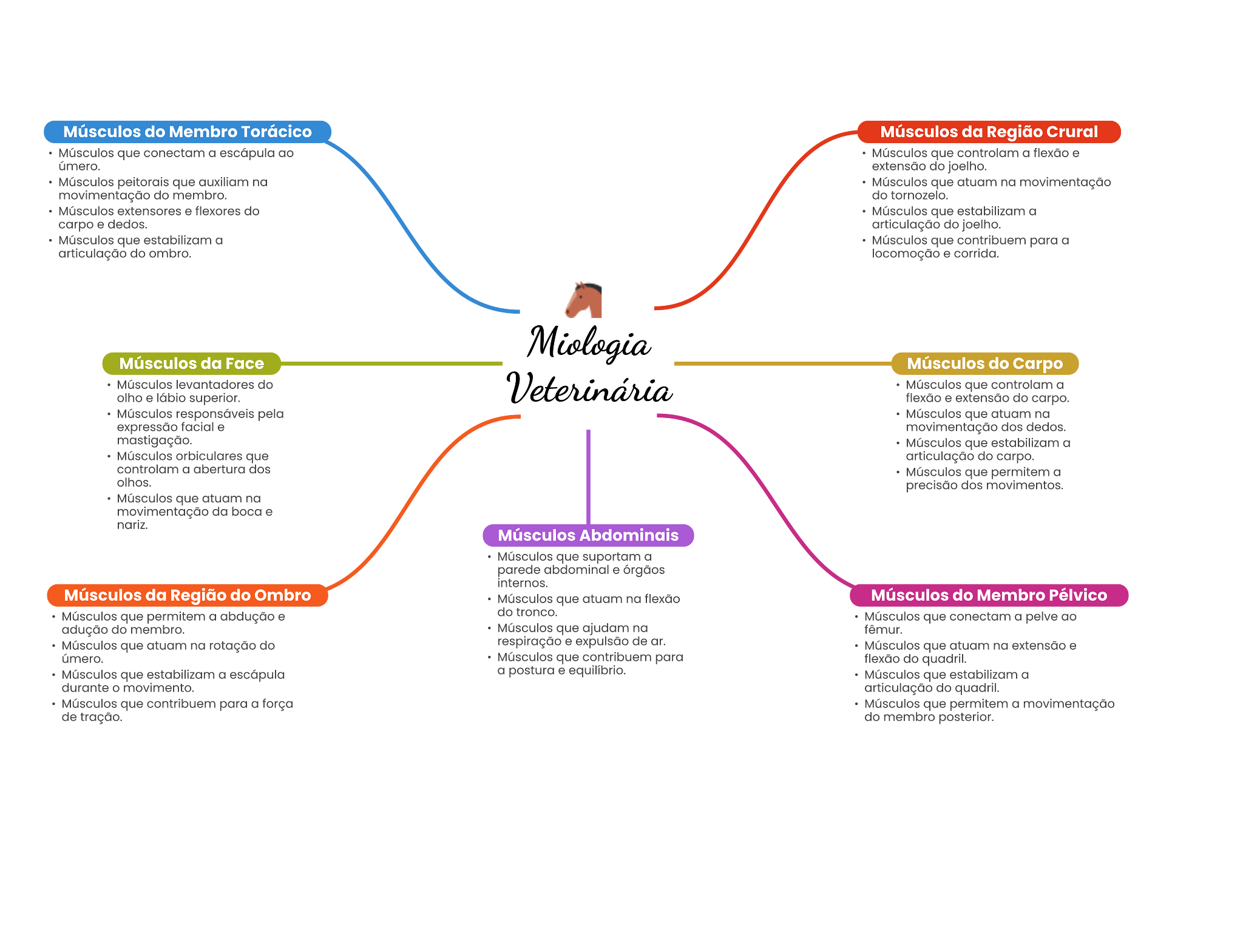 Músculos do Membro Torácico Músculos da Região Crural Músculos que a Músculos que controlam a flexão úmero. extensão do Músculos que na Músculos que atuam na movimentação movimentação do membro. do Músculos extensores flexores do Músculos que estabilizam a carpo dedos. articulação do joelho. Músculos que a Músculos que contribuem para a articulação do ombro. . Músculos da Face Músculos do Carpo Músculos levantadores do Músculos que controlam a olho lábio superior. do carpo. Músculos pela Músculos que atuam na expressão facial movimentação dos mastigação. Músculos que estabilizam a Músculos que articulação do controlarn a abertura dos Músculos que permitem a dos movimentos. Músculos que atuam na movimentação da boca e nariz. Músculos Abdominais Músculos que a abdominal órgãos internos. Músculos da Região do Ombro Músculos que atuam na Músculos do Membro Pélvico Músculos que permitem a abdução do tronco. que a pelve ao adução do membro. Músculos que ajudam na fêmur. Músculos que atuam na rotação do respiração de Músculos que atuam na . úmero. Músculos que contribuem para do quadril. Músculos que a a postura equilibrio. Músculos que a durante movimento. articulação do quadril. Músculos que contribuem para a força que permitem a movimentação de tração. do membro posterior.