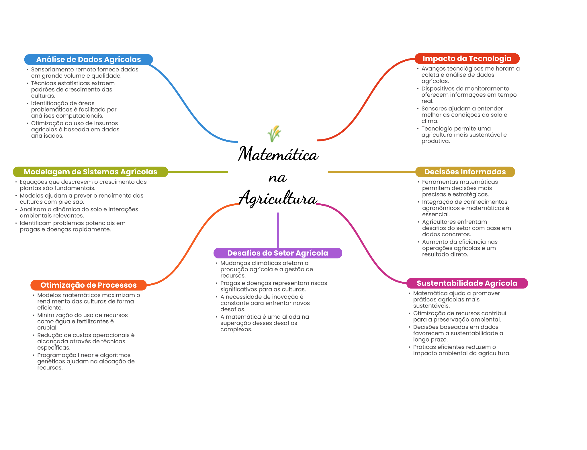 Análise de Dados Agrícolas Impacto da Tecnologia Sensoriamento remoto fornace dados Avanços tecnológicos melhoram a em volume qualidade. coleta de dados Técnicas agrícolas. padrões de crescimento das Dispositivos de monitoramento culturas. informações em tempo de real. problemáticas facilitada por Sensores ajudam a entender melhor as condições do solo . Otimização do uso de Insurnos clima. agricolas baseada em dados Tecnologia permite uma agricultura mais sustentável produtiva. Modelagem de Sistemas Agrícolas Decisões Informadas Equações que descrevem crescimento das Ferramentos plantas são permitem mais Modelos ajudam a prever rendimento precisas estratégicas. culturas com precisão. integração de conhecimentos a do solo e interações agronômicos é relevantes. essencial. potencials em Agricultores enfrentam pragas doenças rapidamenta. do estor em dados concretos. Aumento da eficiência operações agrícolas é um Desafios do Setor Agrícola resultado direto. afetam a produção e a gestão de recursos. Otimização de Processos Pragas doenças representam riscos Sustentabilidade Agrícola significativos para culturas. maximizam A necessidade de inovação é ajuda a promover rendimento culturas de forma constante para novos agricolas mais Minimização do uso de recursos A uma allada na de contribui como água fertilizantes superação para a preservação ambiental. crucial. Decisões baseadas em dados Redução de custos operacionale a sustentabilidade a alcançada de longo prazo. reduzem Programação linear . algoritmos ambiental da agricultura. ajudam na alocação de recursos.