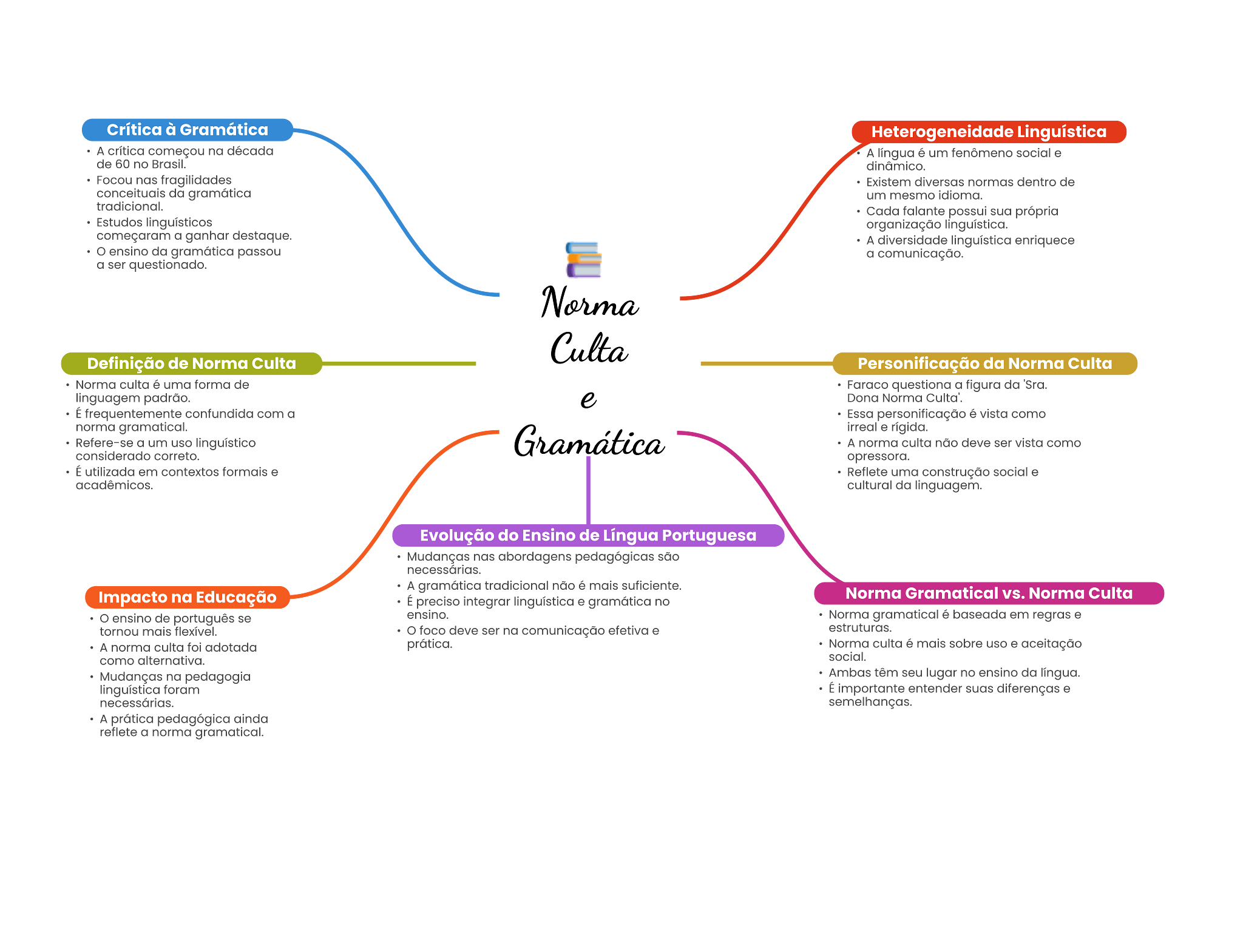 Crítica à Gramática Heterogeneidade Linguística A critica começou na década A lingua é um social . de 60 no dinâmico. Focou normas dentro de da gramática um Cada própria Estudos organização começaram a ganhar destaque. A diversidade enriquece da gramática passou a comunicação. a questionado. Definição de Norma Culta Personificação da Norma Culta Norma cuita uma forma de Faraco questiona a figura da linguagem padrão. Dona Norma É frequentemente confundida com a Essa personificação é vista como norma gramatical. Irreal Refere-se a um uso linguístico A norma culta não deve ser vista como correto. opressora. É utilizada em contaxtos . Reflete uma construção social acadêmicos. cultural da Evolução do Ensino de Língua Portuguesa Mudanças nos abordagens são A gramática tradicional não suficiente. Impacto na Educação É preciso gramática no Norma Gramatical vs. Norma Culta ensino de se ensino. Norma gramatical baseada em regras mais foco deve ser comunicação efetiva . estruturas. A norma culta foi adotada Norma culta é mais sobre uso aceitação como alternativa. social. na pedagogia Ambas lugar no ensino da lingua. É importante entender diferenças A pedagógica ainda a norma gramatical.